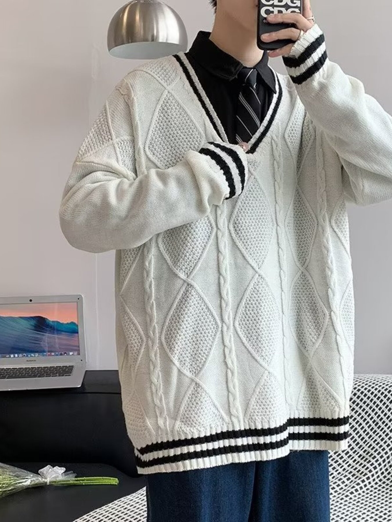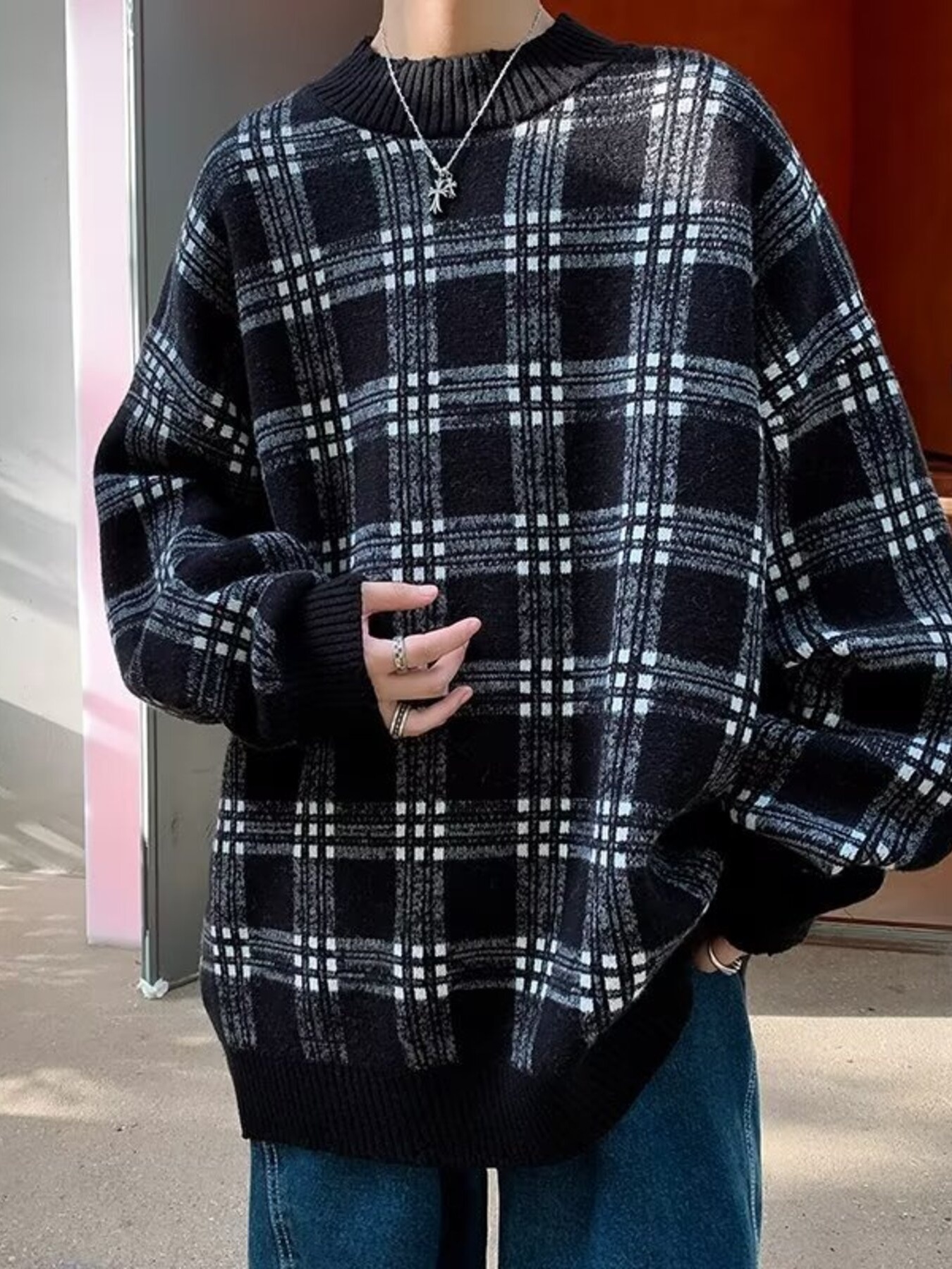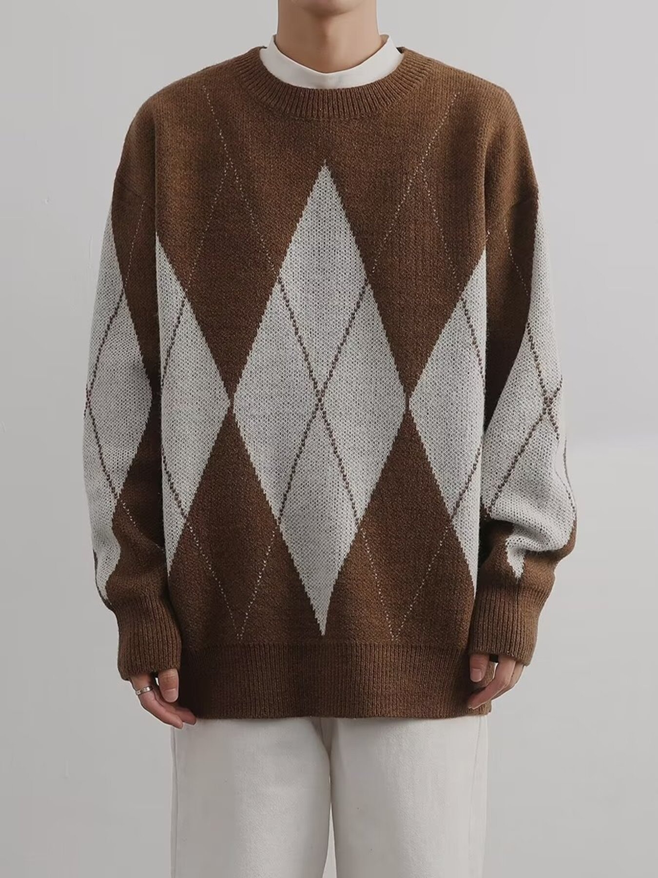 Men's Argyle Pattern Oversized Sweater