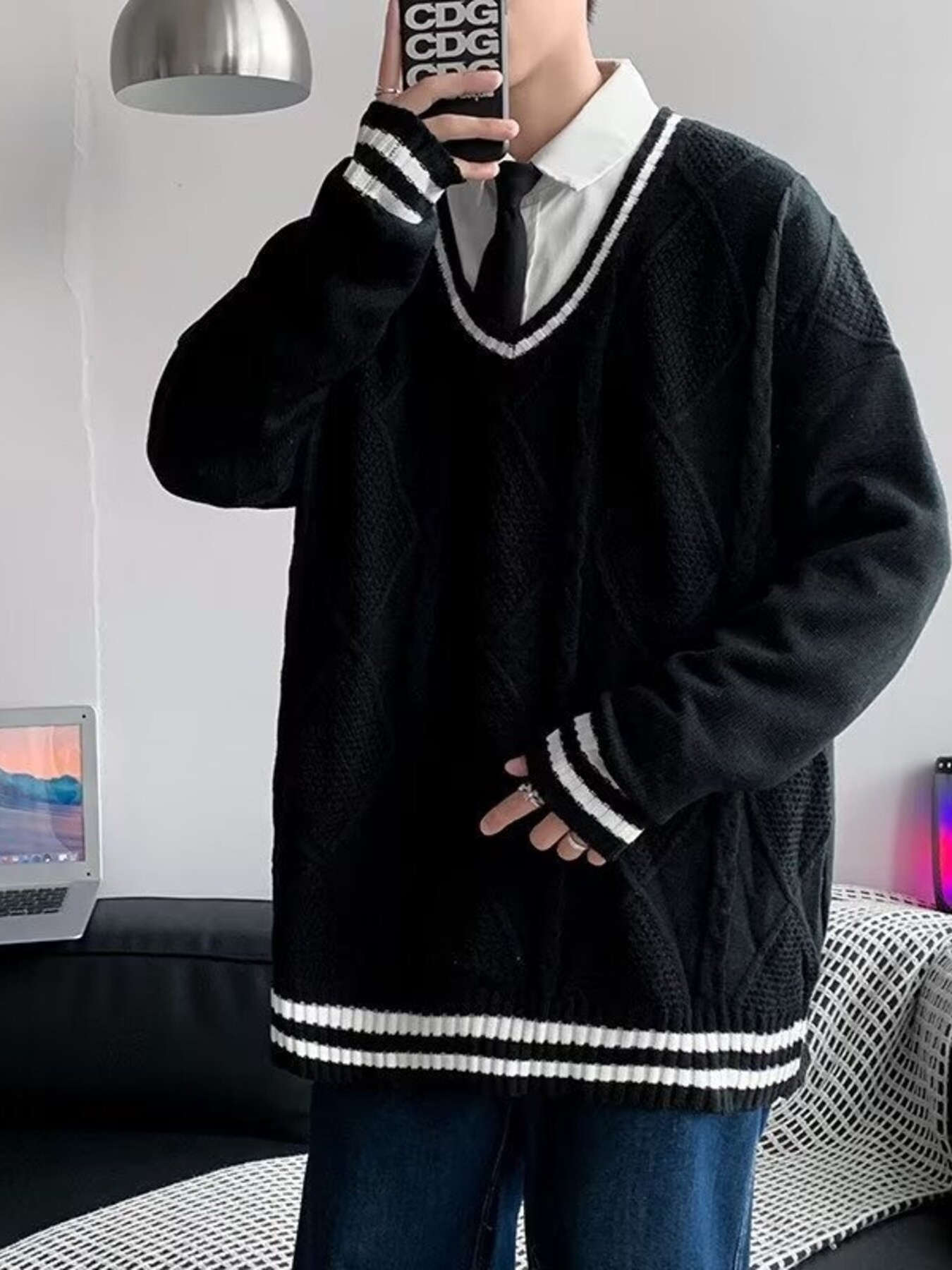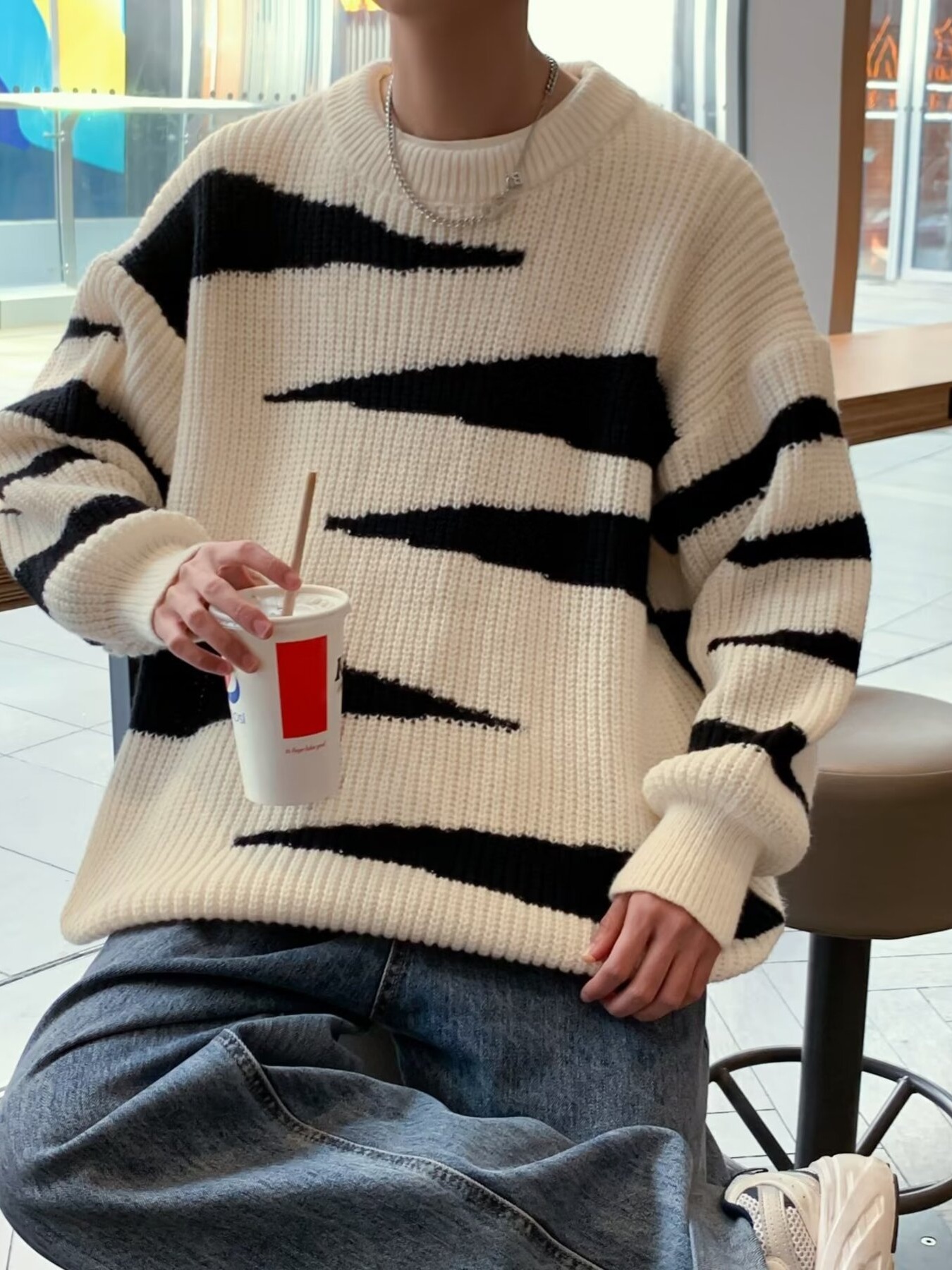 Men's Contrast Striped Long Sleeve Sweater