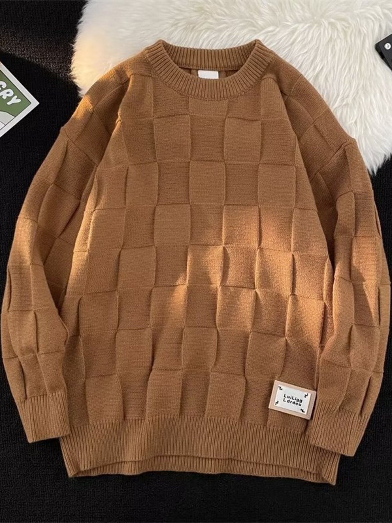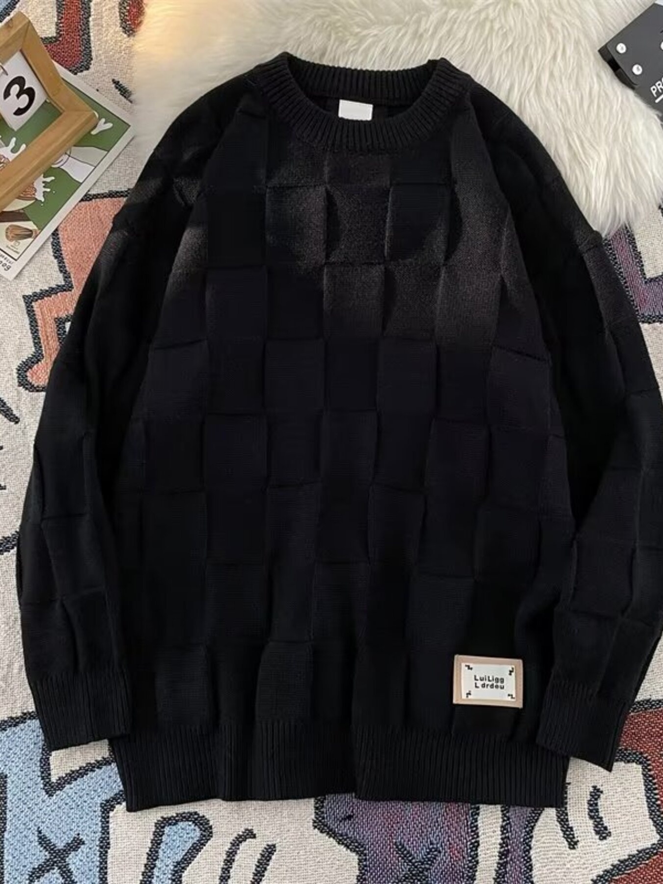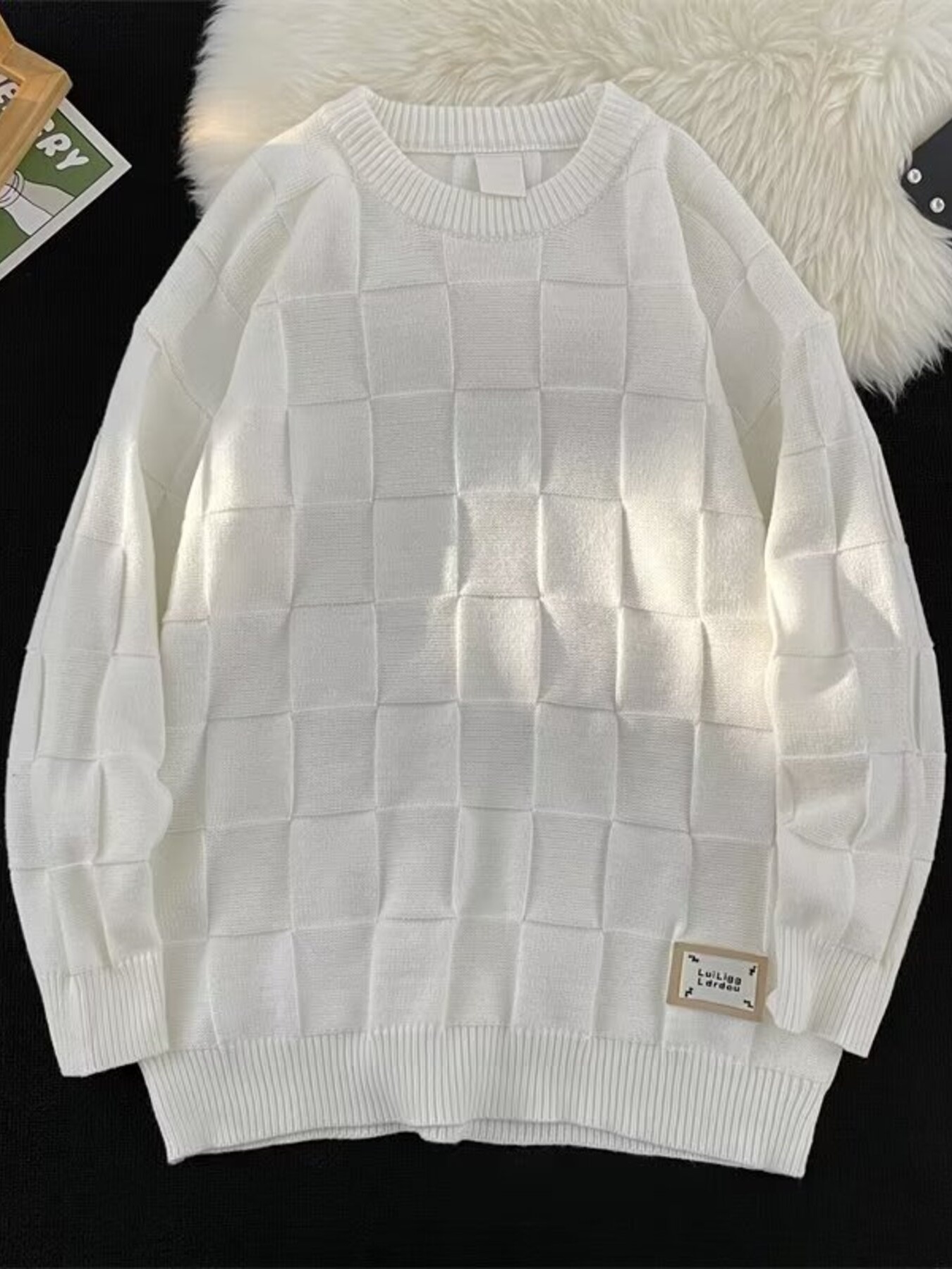 Textured Grid Pattern L;ong Sleeve Sweater