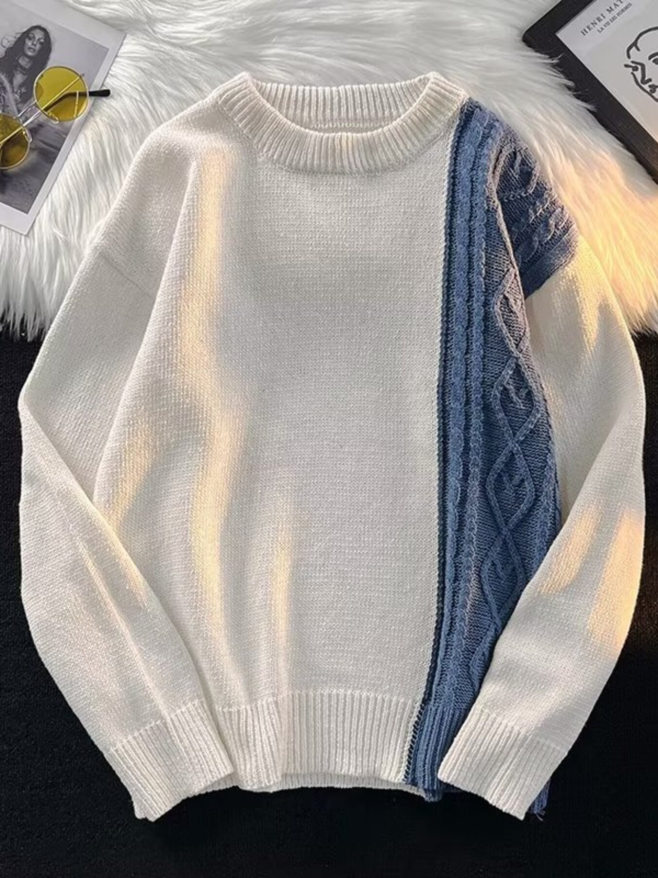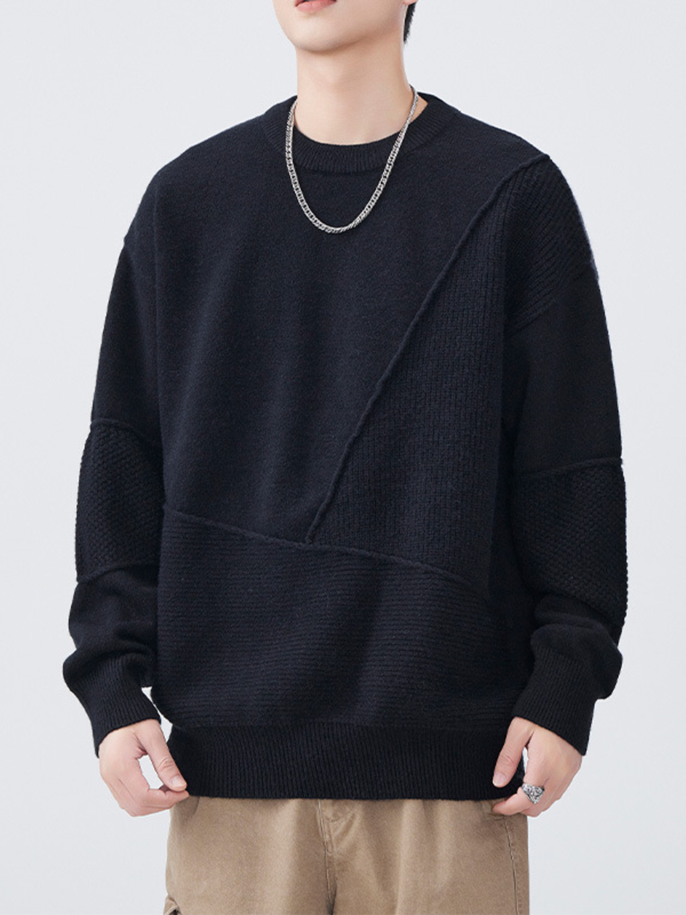 Men's Contrast Round Neck Long Sleeve Sweater