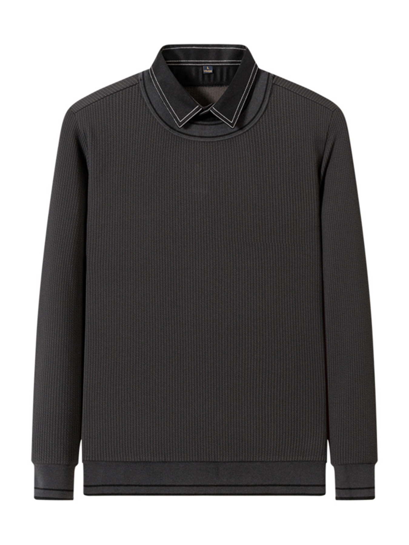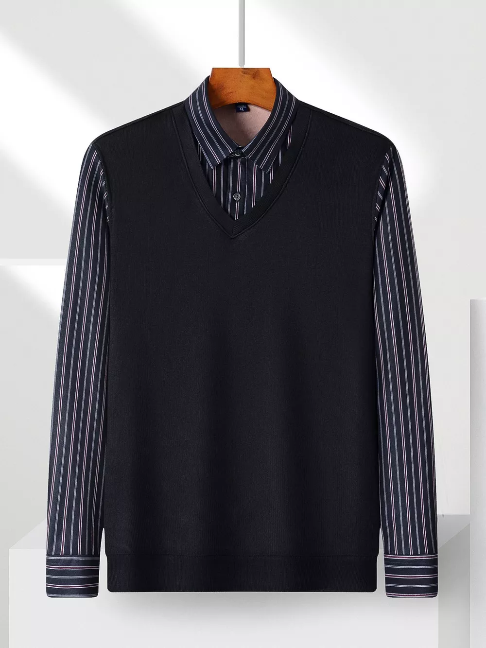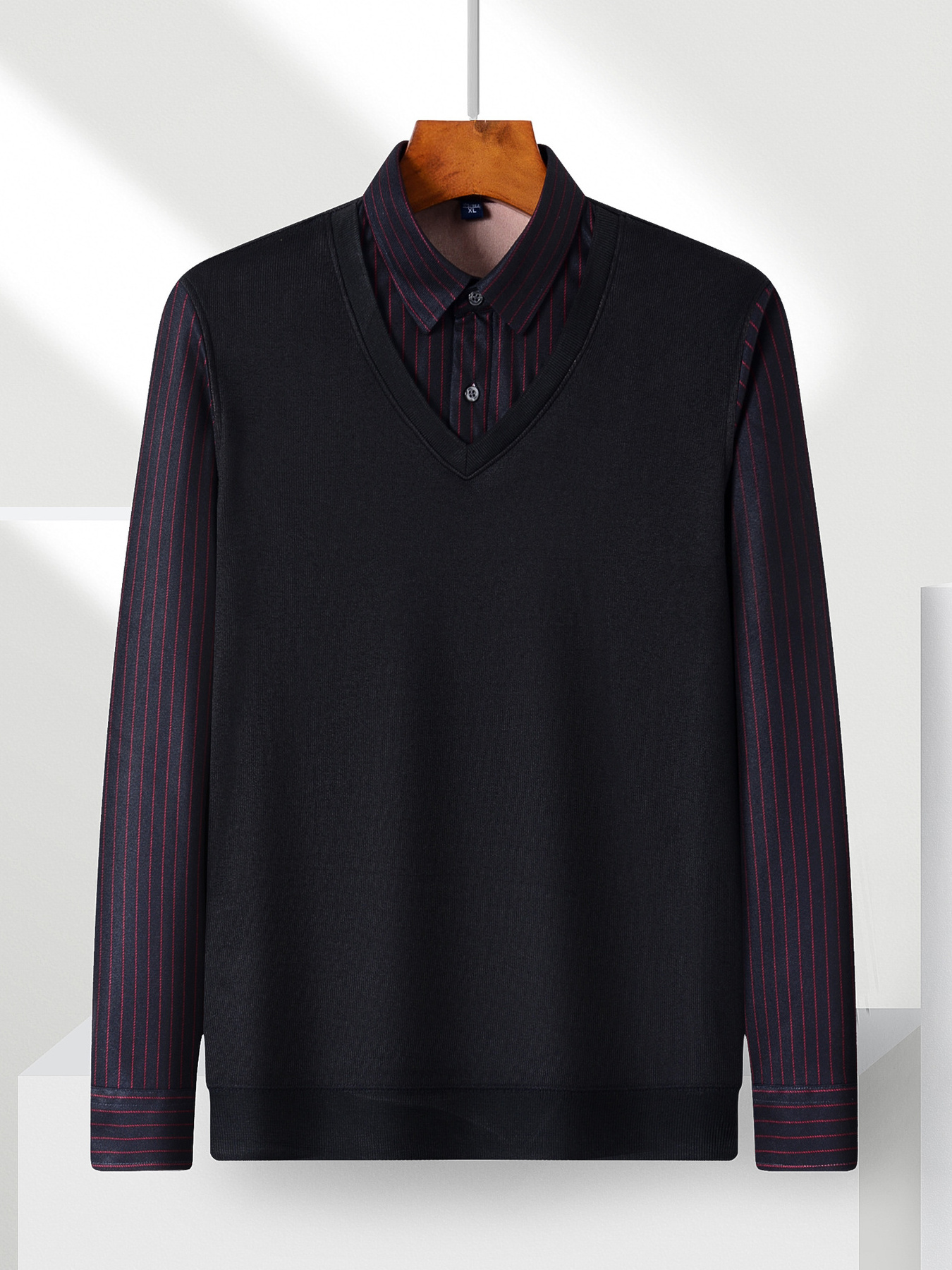 Men's Plus Size Striped Long Sleeve Fake Two-Piece Knit Top