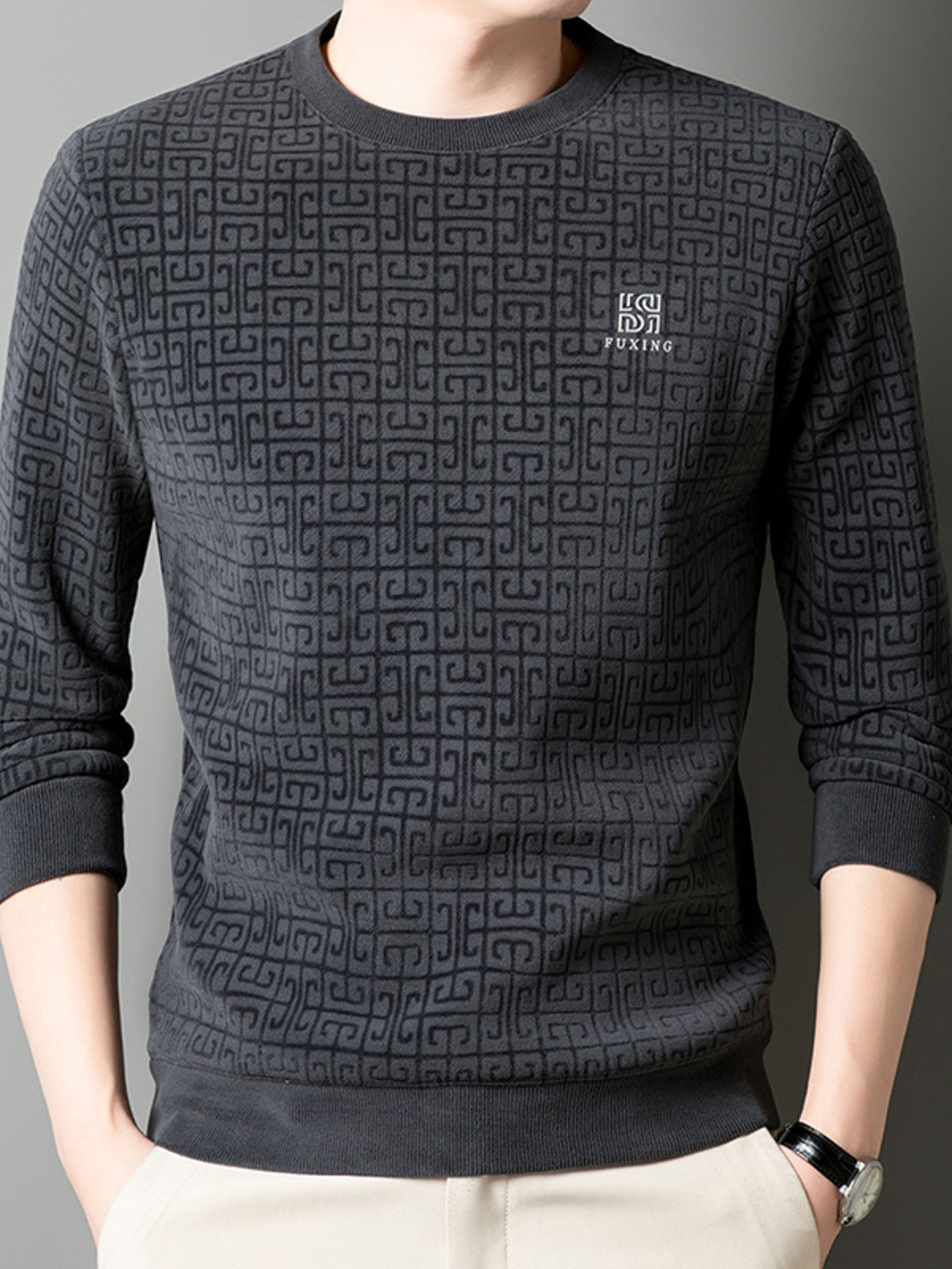 Men's Plus Size Round Neck Long Sleeve Knit Top