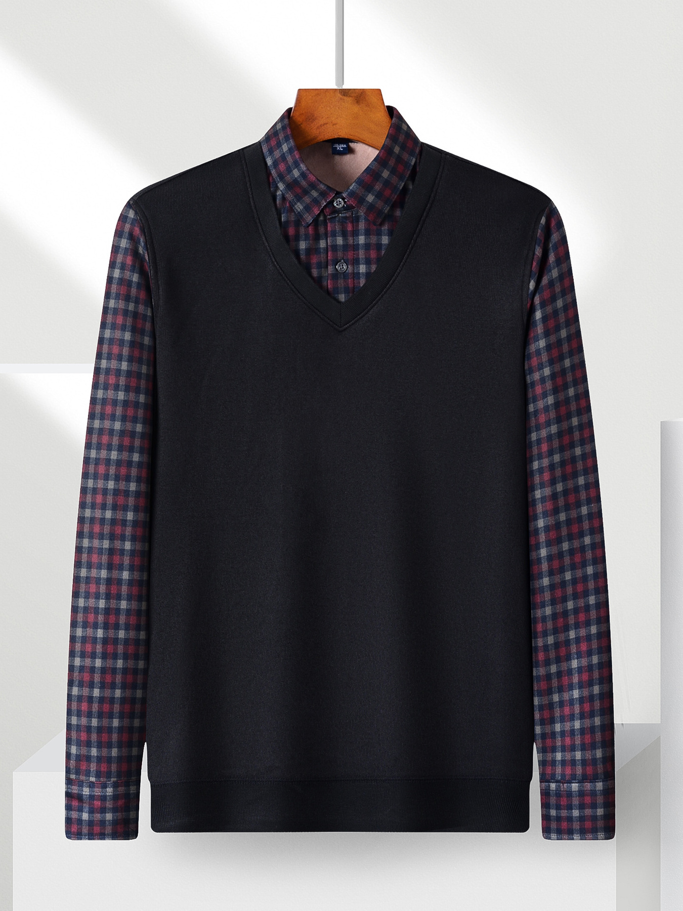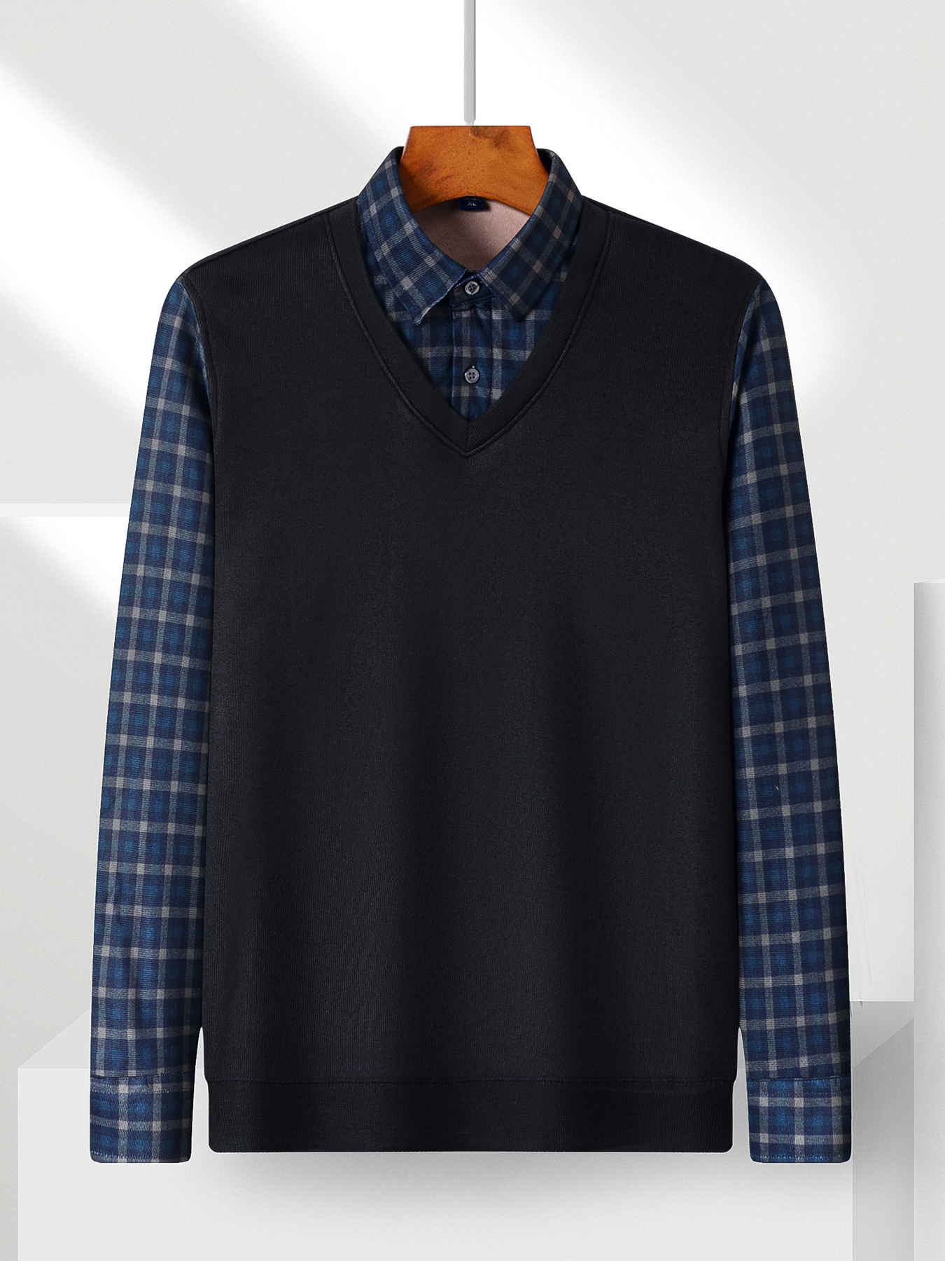 Men's Plus Size Layered Look Plaid Collar Sweater