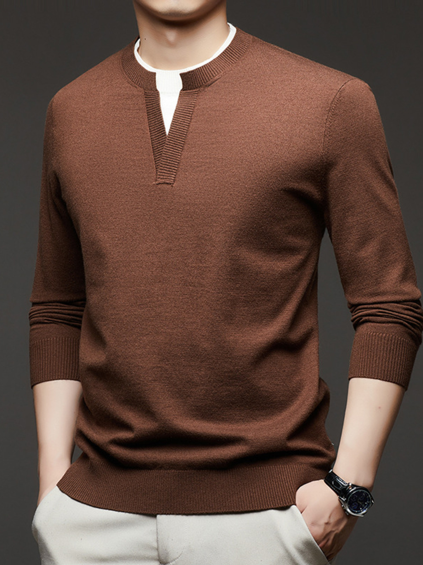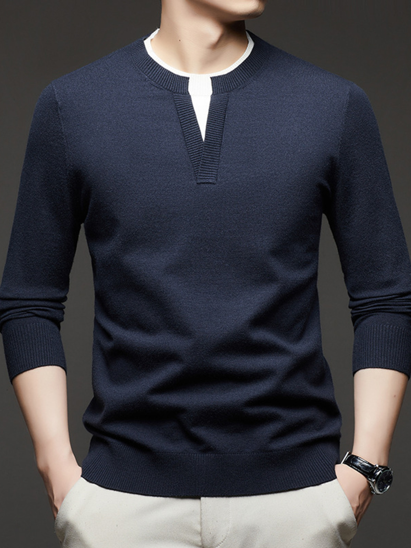 Men's Plus Size Two-Tone Long Sleeve Knit Top