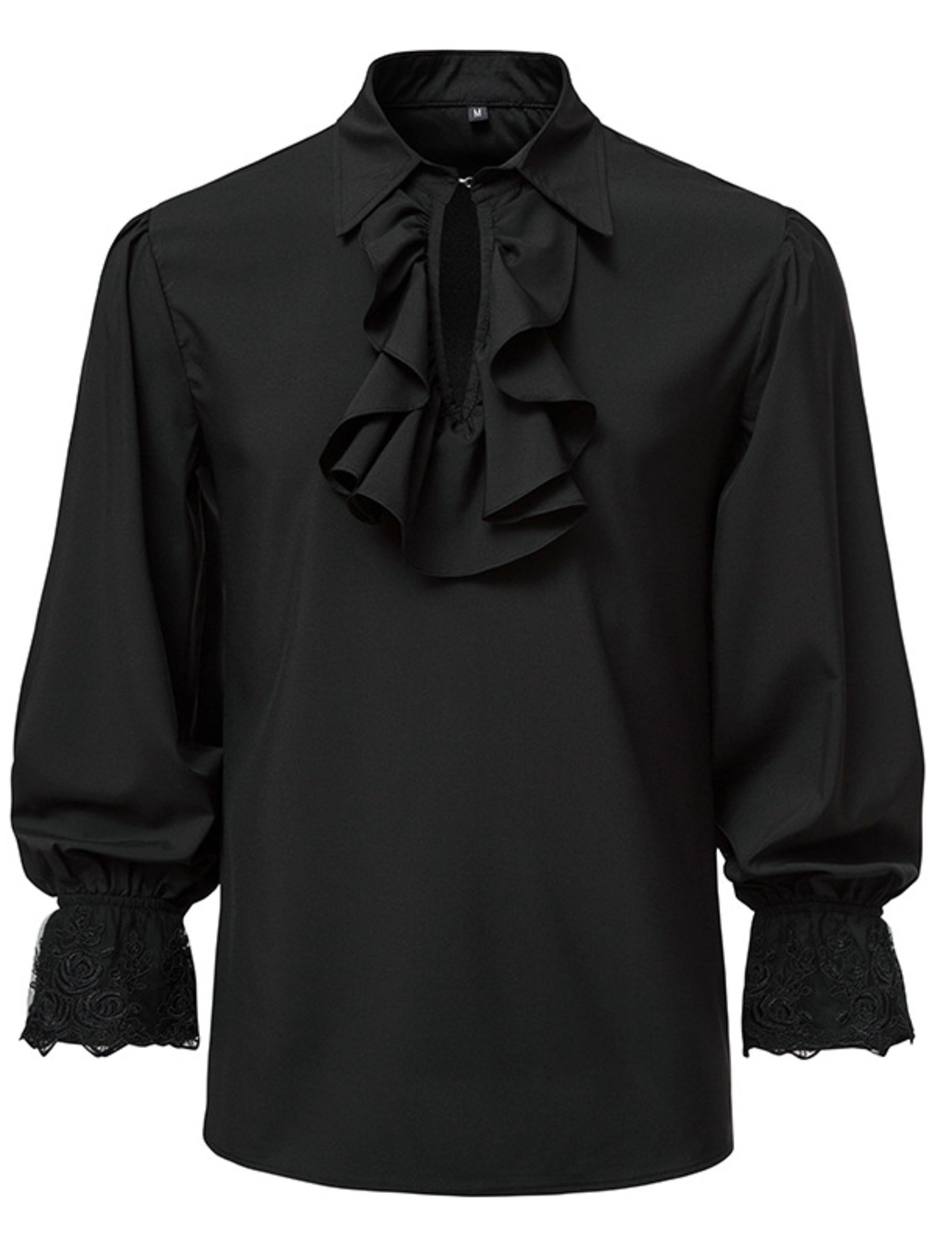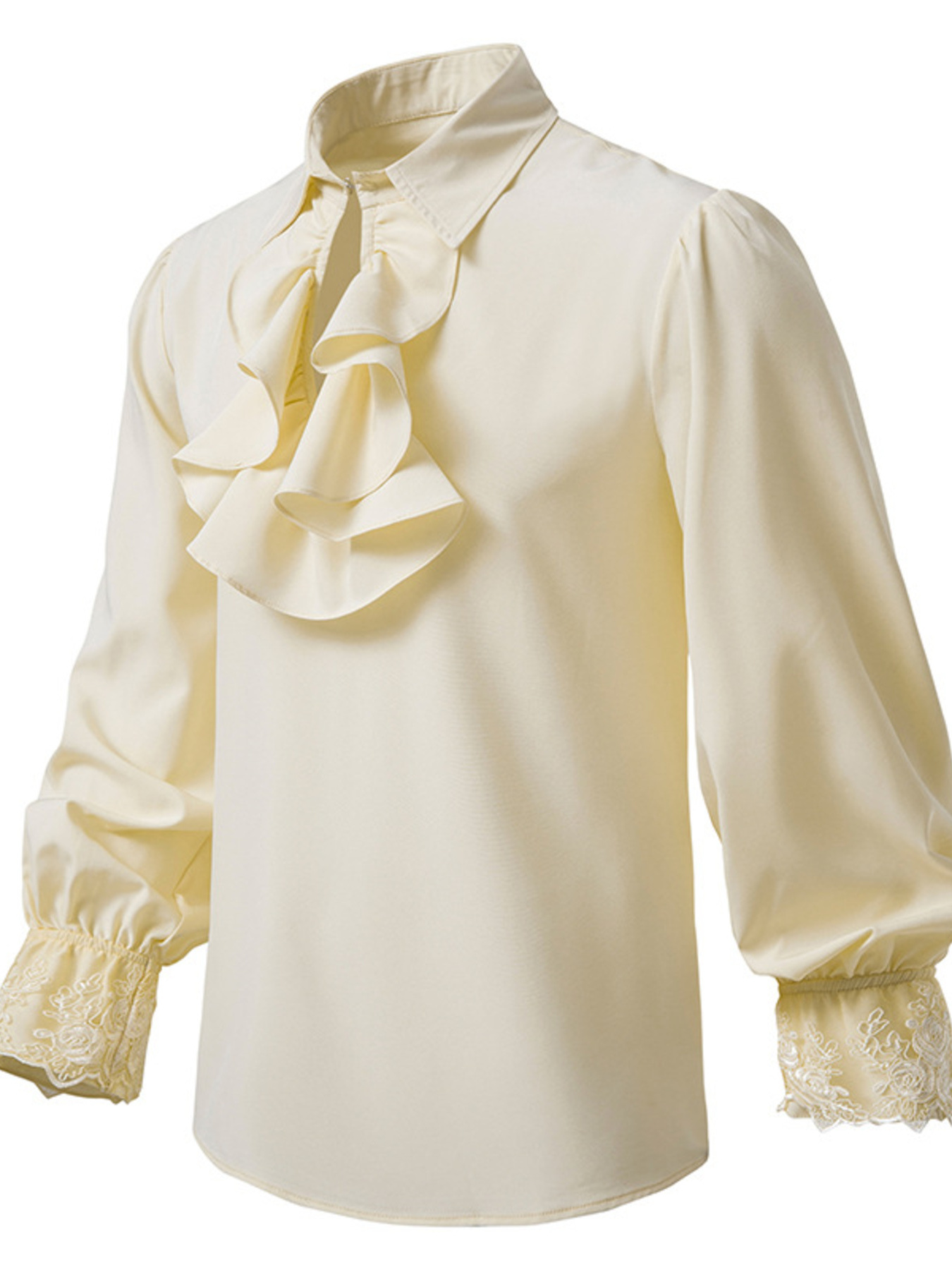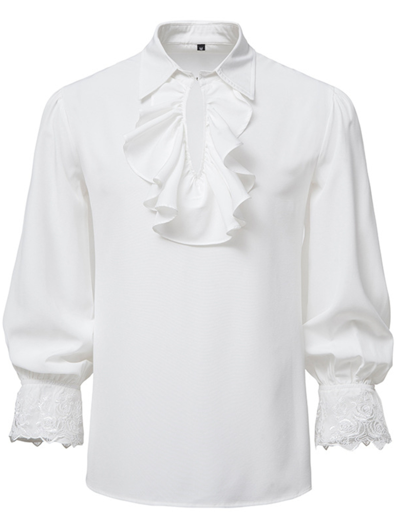 Men's Ruffled Lace Detail Long Sleeve Blouse