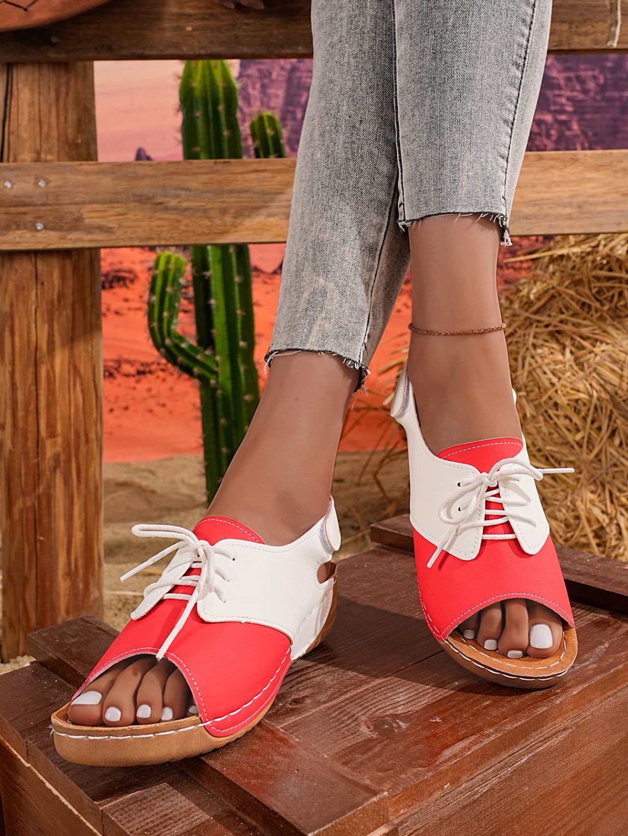 Open Toe Lace Up Sandals