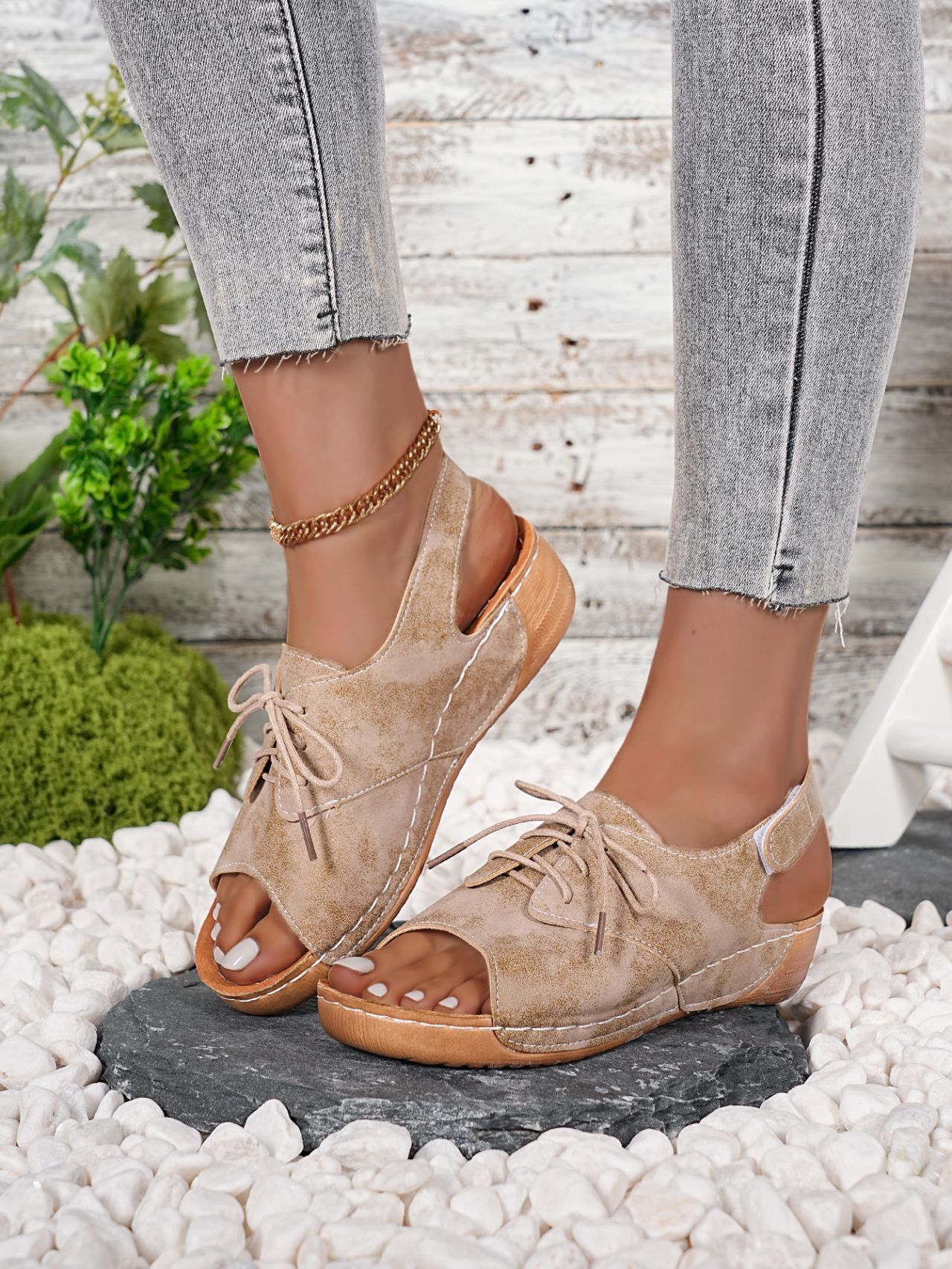 Lace Up Wedge Sandals
