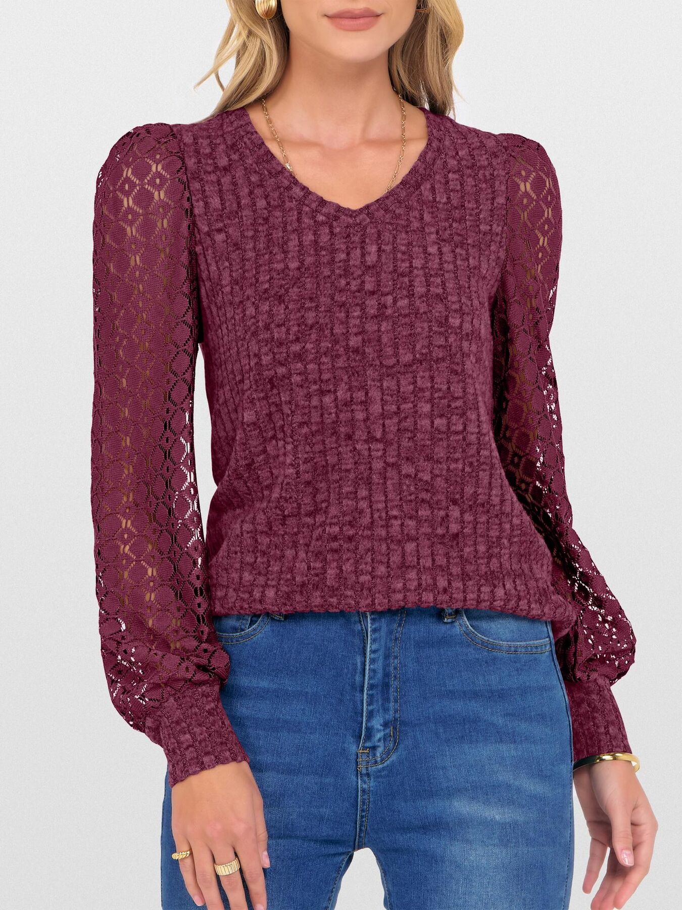 Lace Detail Long Sleeve Blouse