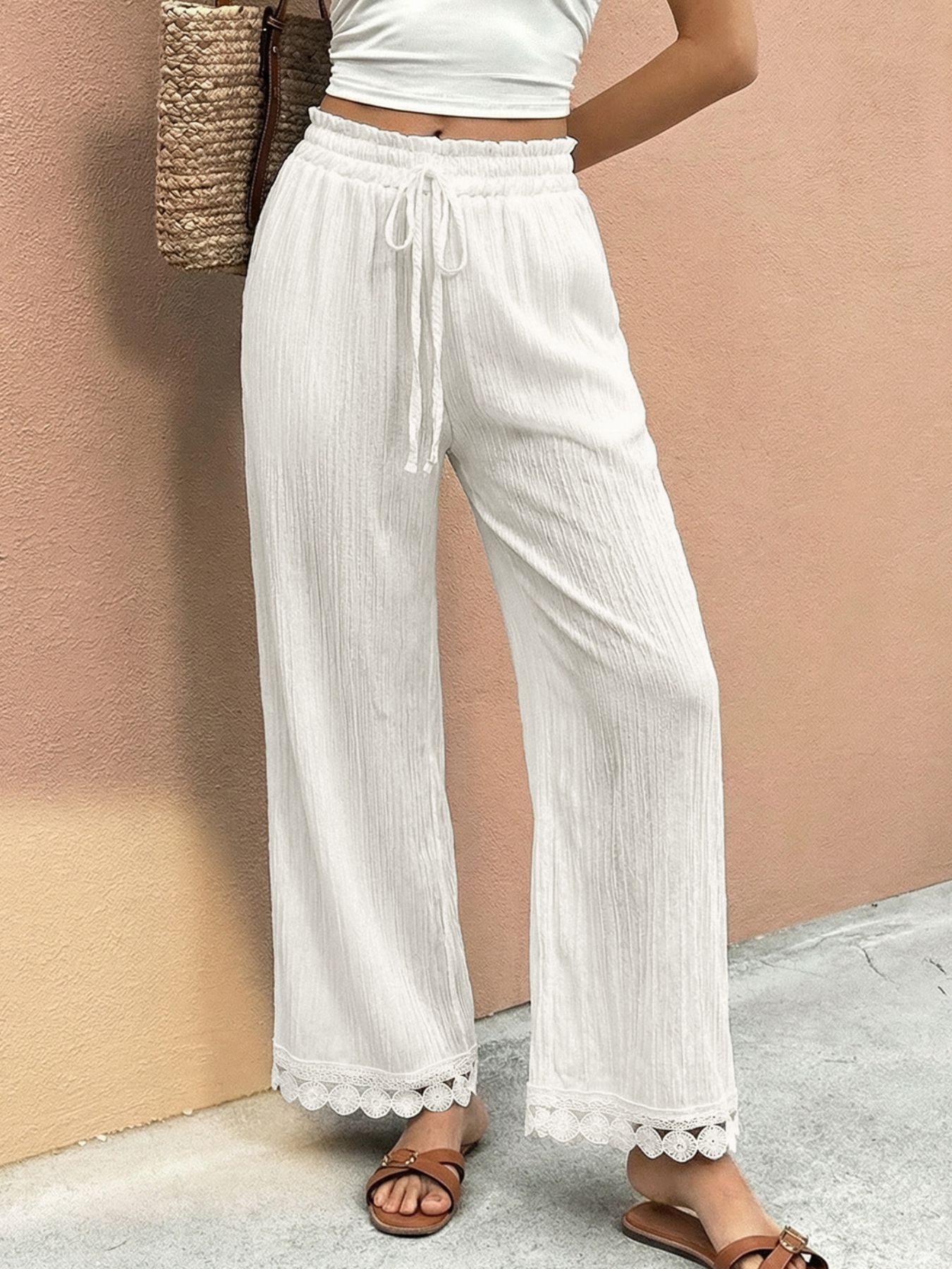Lace Detail V-Neck Short Sleeve Textured T-Shirt