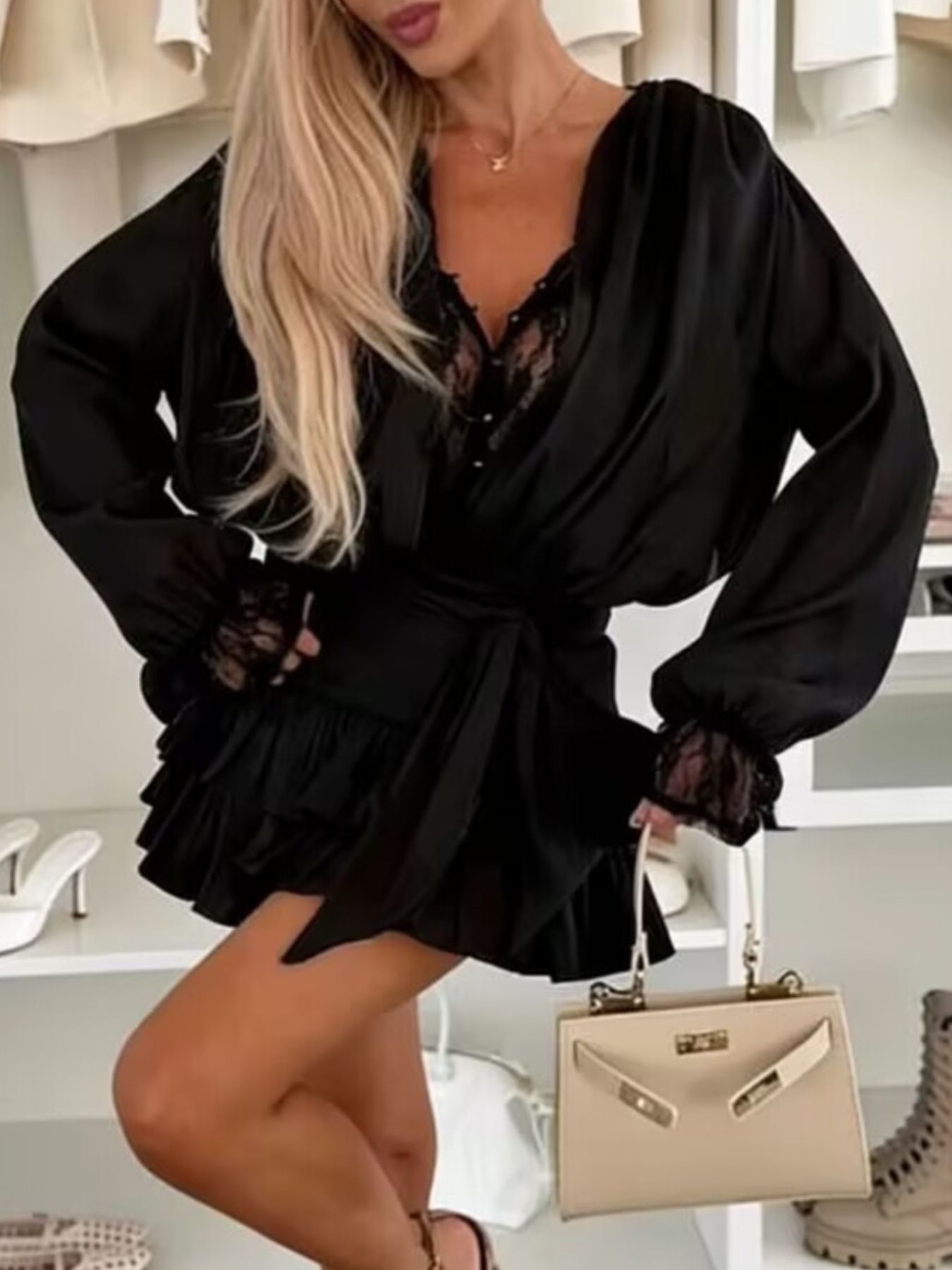 Lace Hollow-Out Long Sleeve Jumpsuit