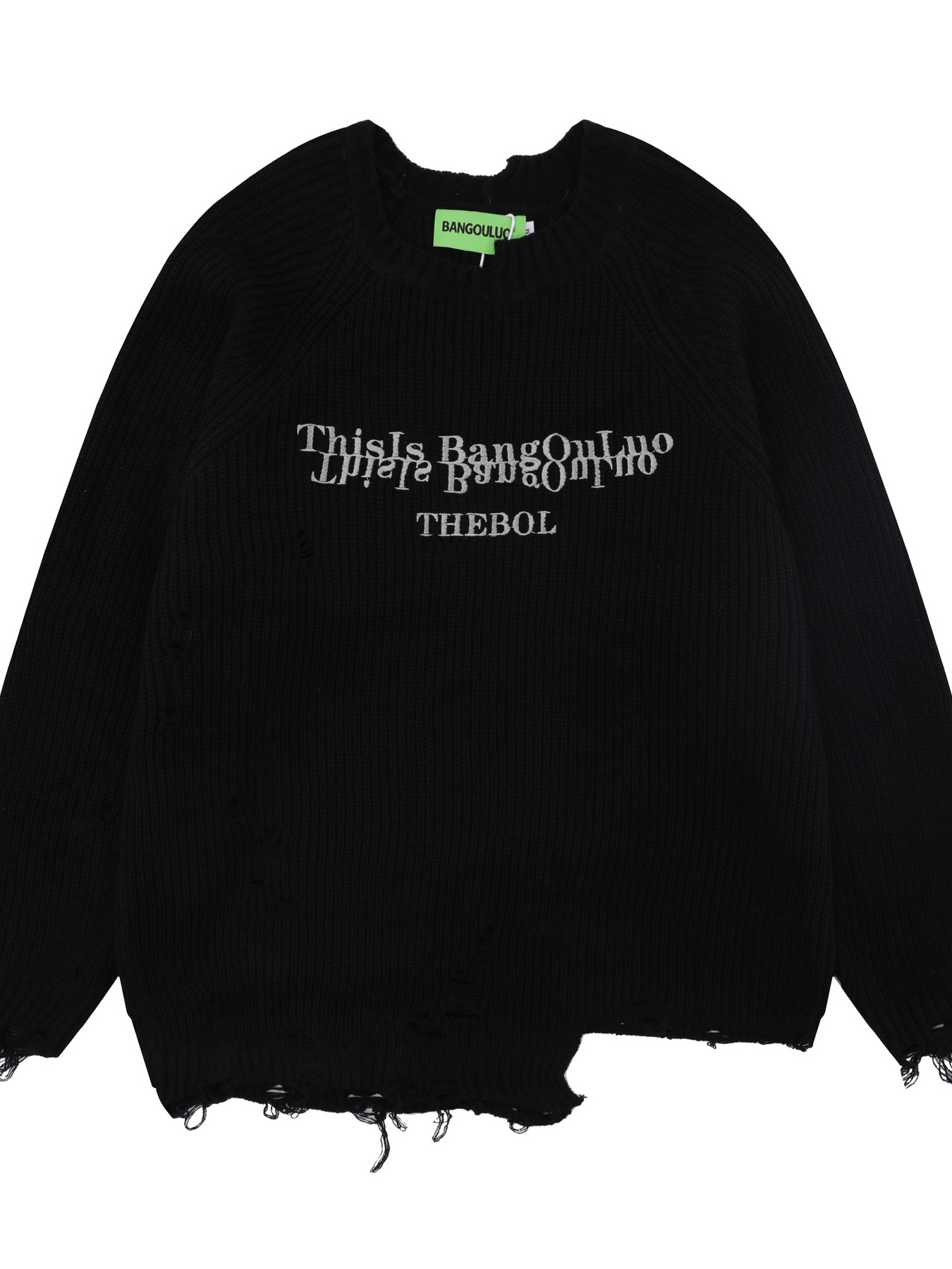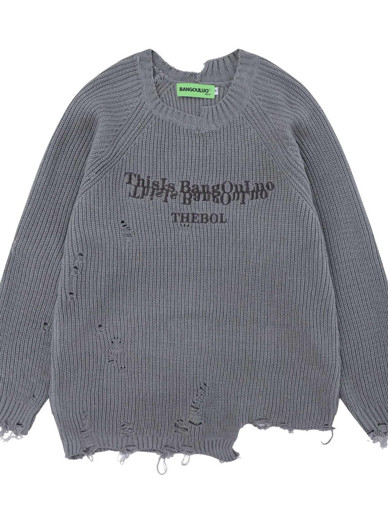 Men's Distressed Letter Round Neck Sweater