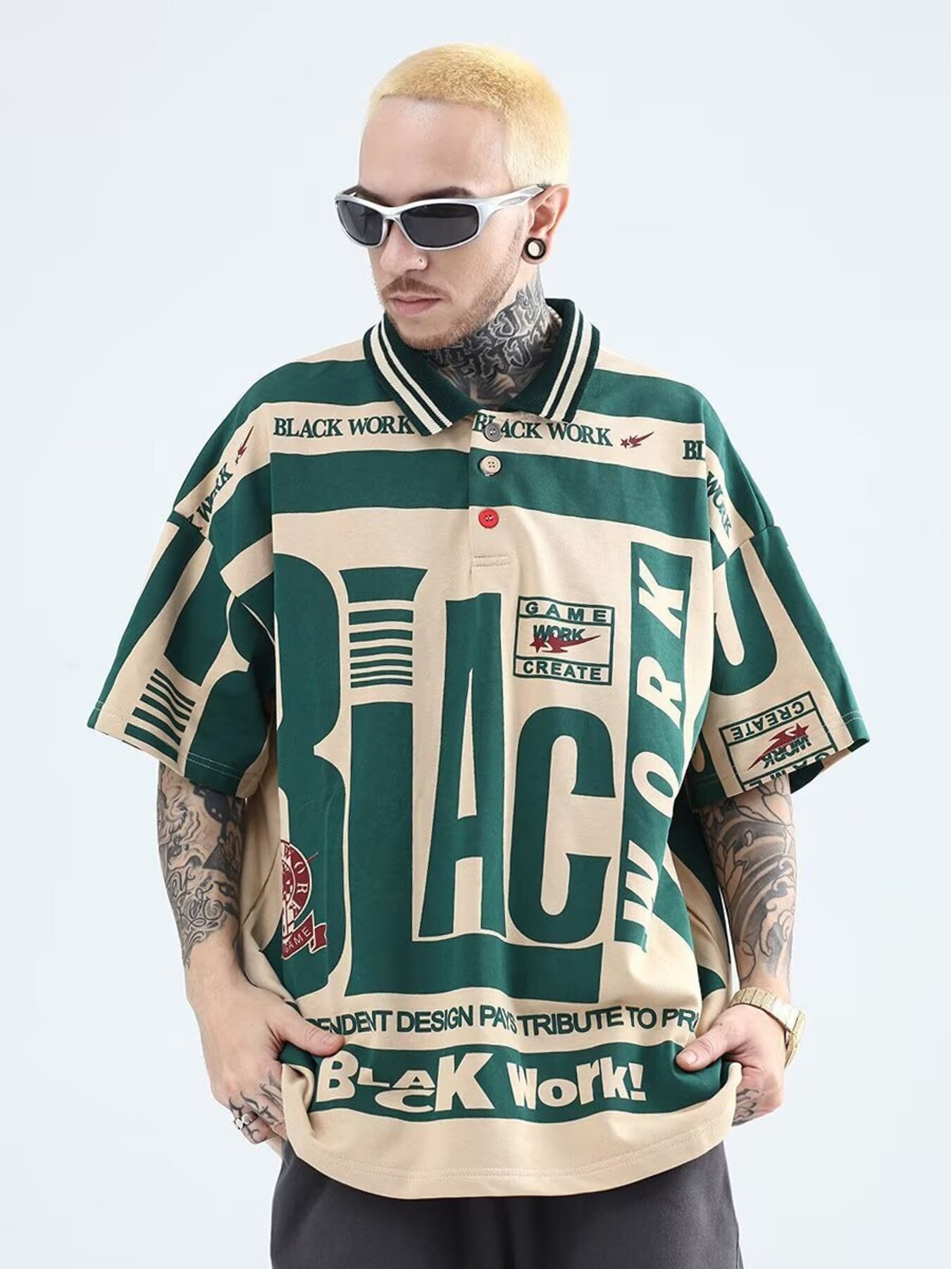 Men's Plus Size Letter Graphic Short Sleeve Polo