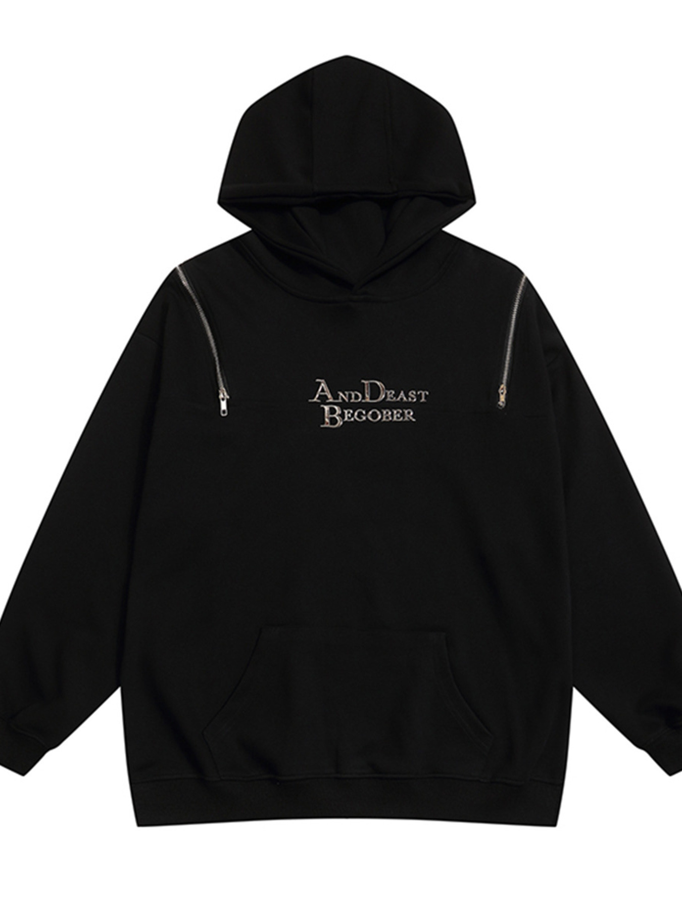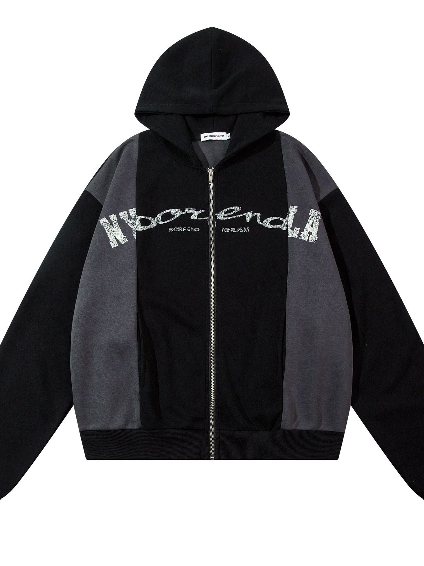 Men's Letter Long Sleeve Hoodie with Zipper Details