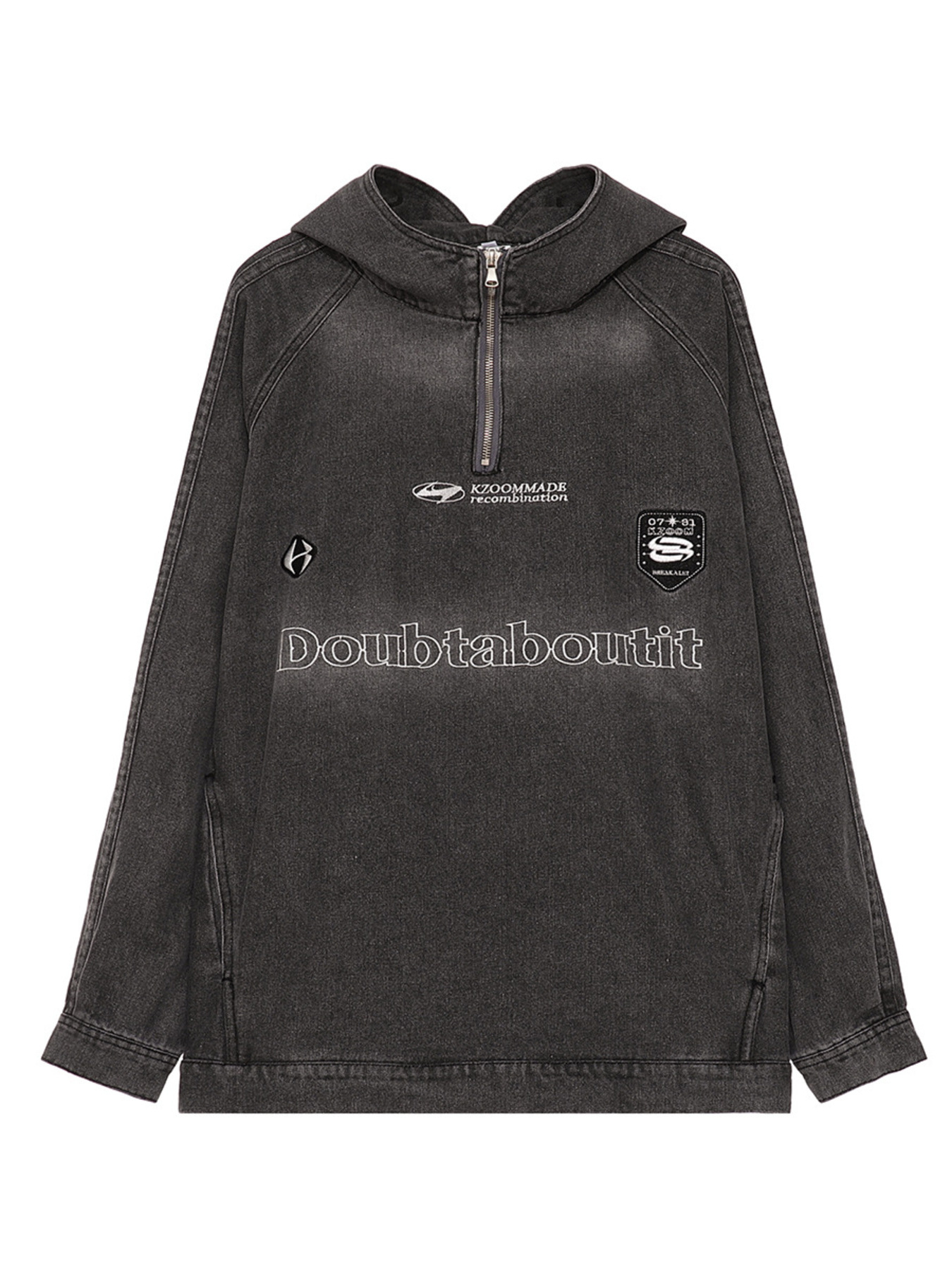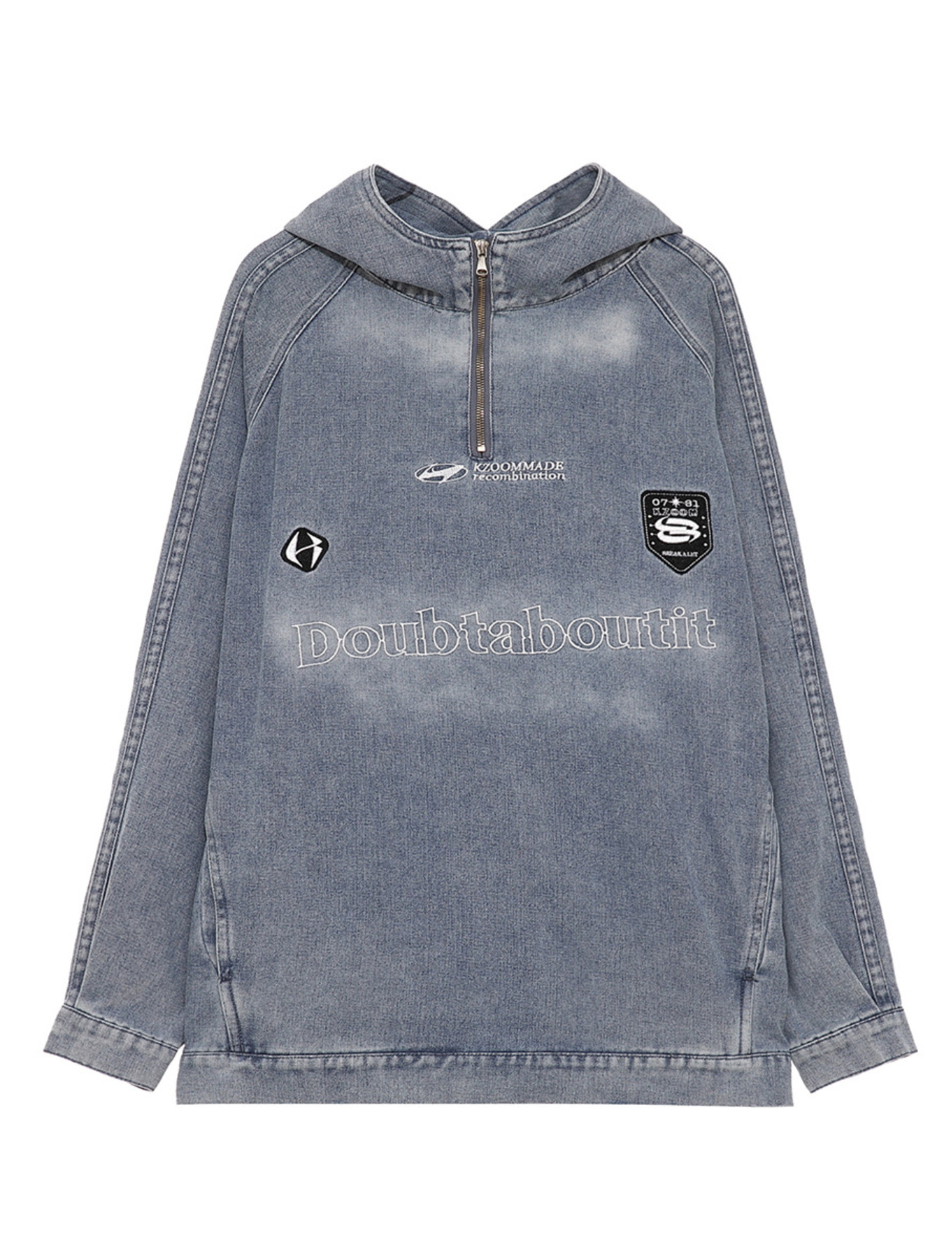 Men's Casual Quarter Zip Letter Washed Denim Hoodie