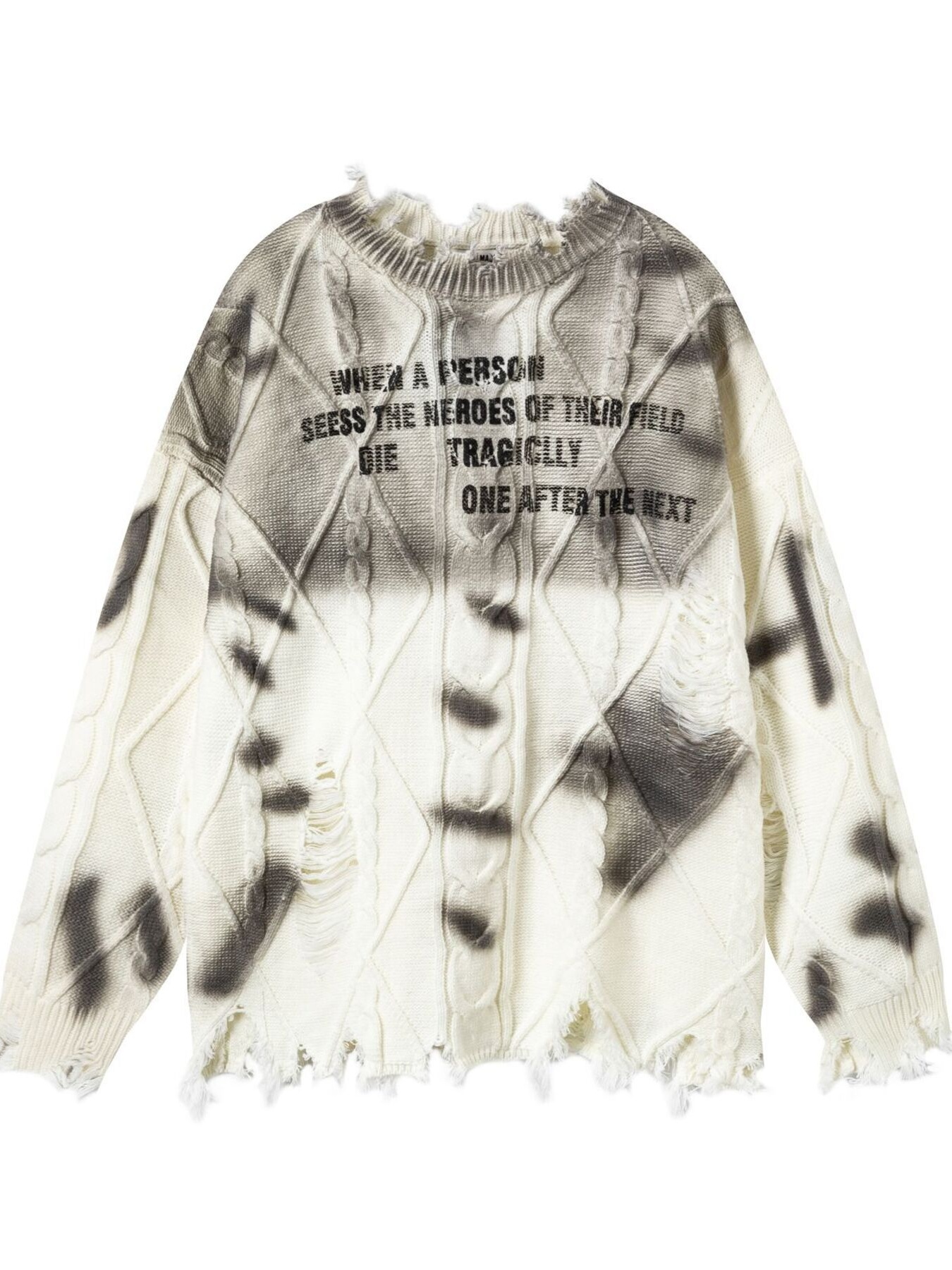 Men's Distressed Letter Ribbed Knit Sweater
