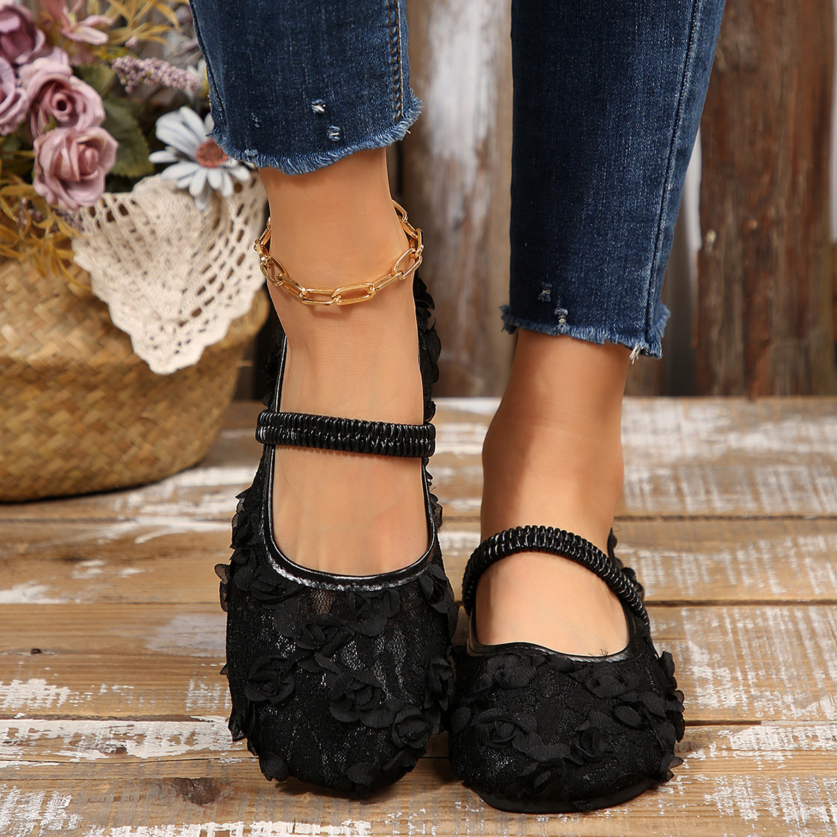Woven Mesh Mary Jane Sandals with Buckle Strap