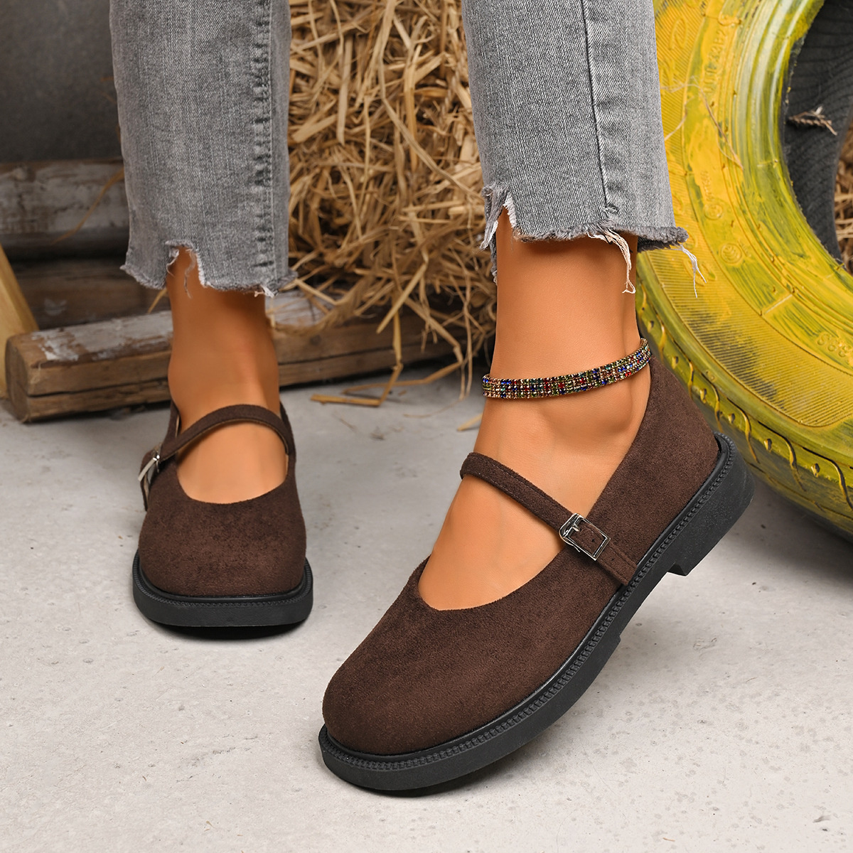 Buckle Decor Round Toe Slip-Ons