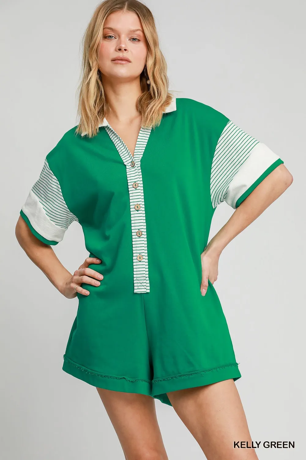 Fitted Open Back Game Day Romper with Lace Up Deta
