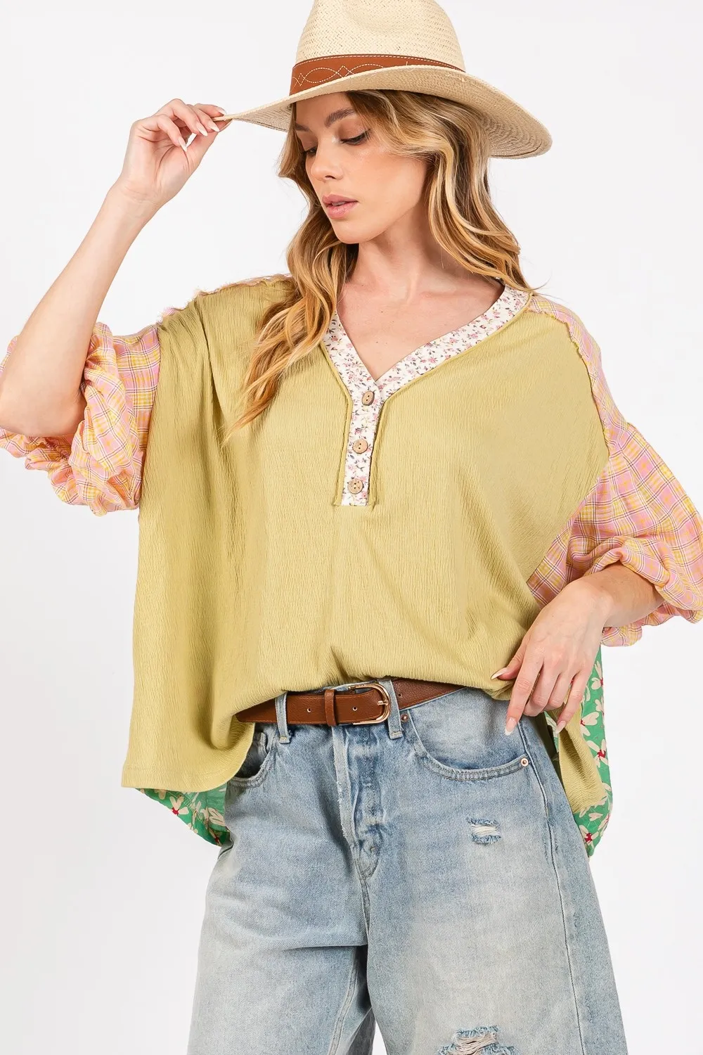 Full Size Color Block Bubble Sleeve Top Plus Size