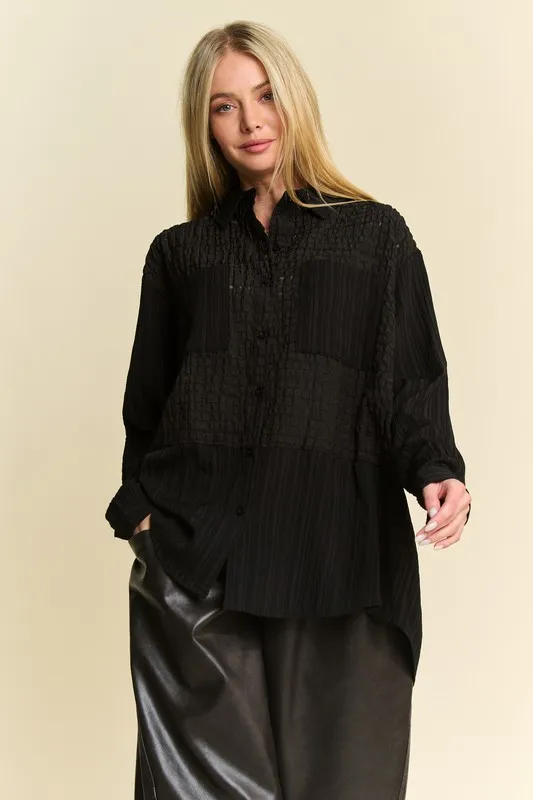 Umgee Scalloped Trim Blouse with Puff Sleeves