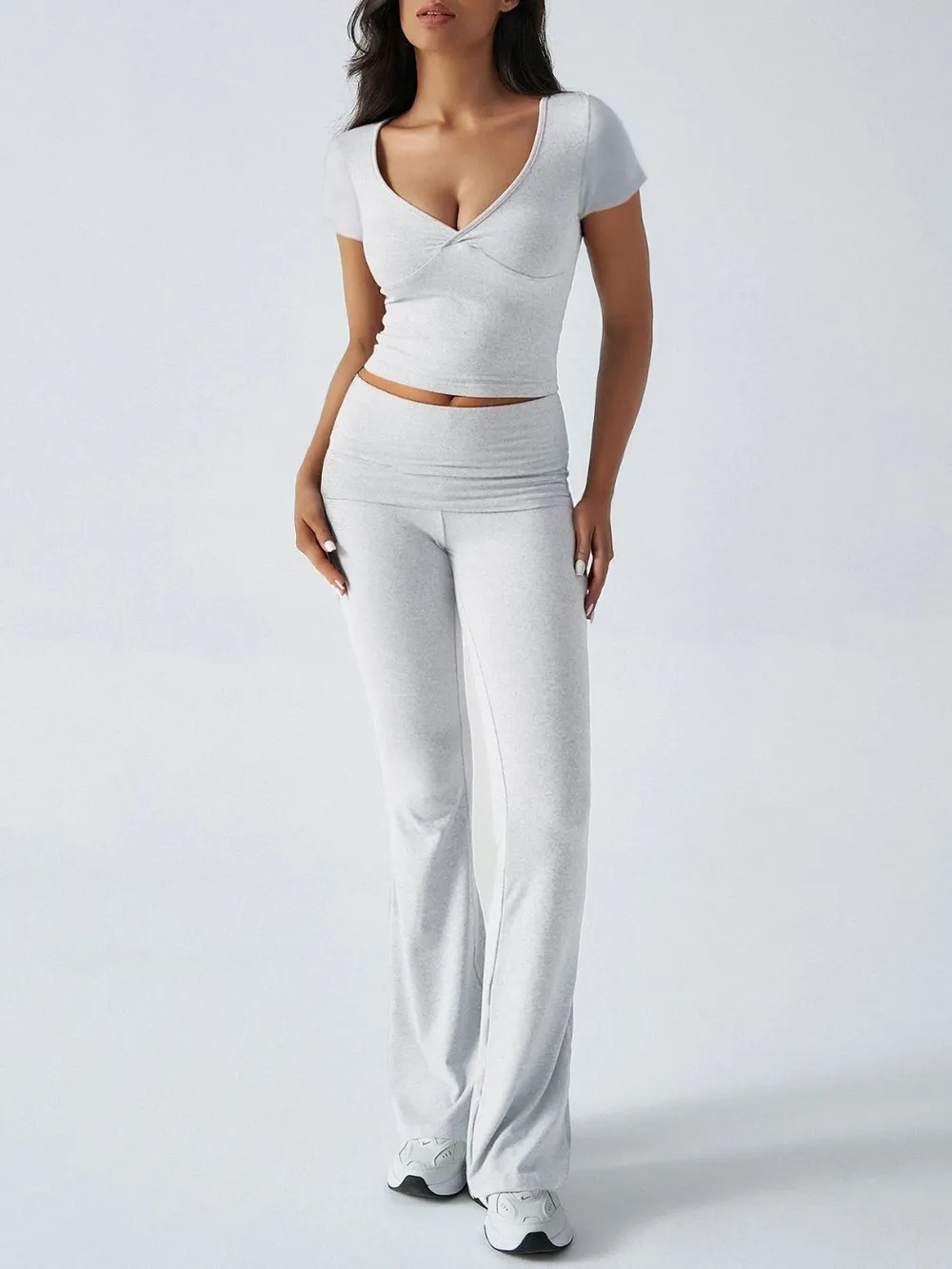 V-Neck Top and Bootcut Leggings Set