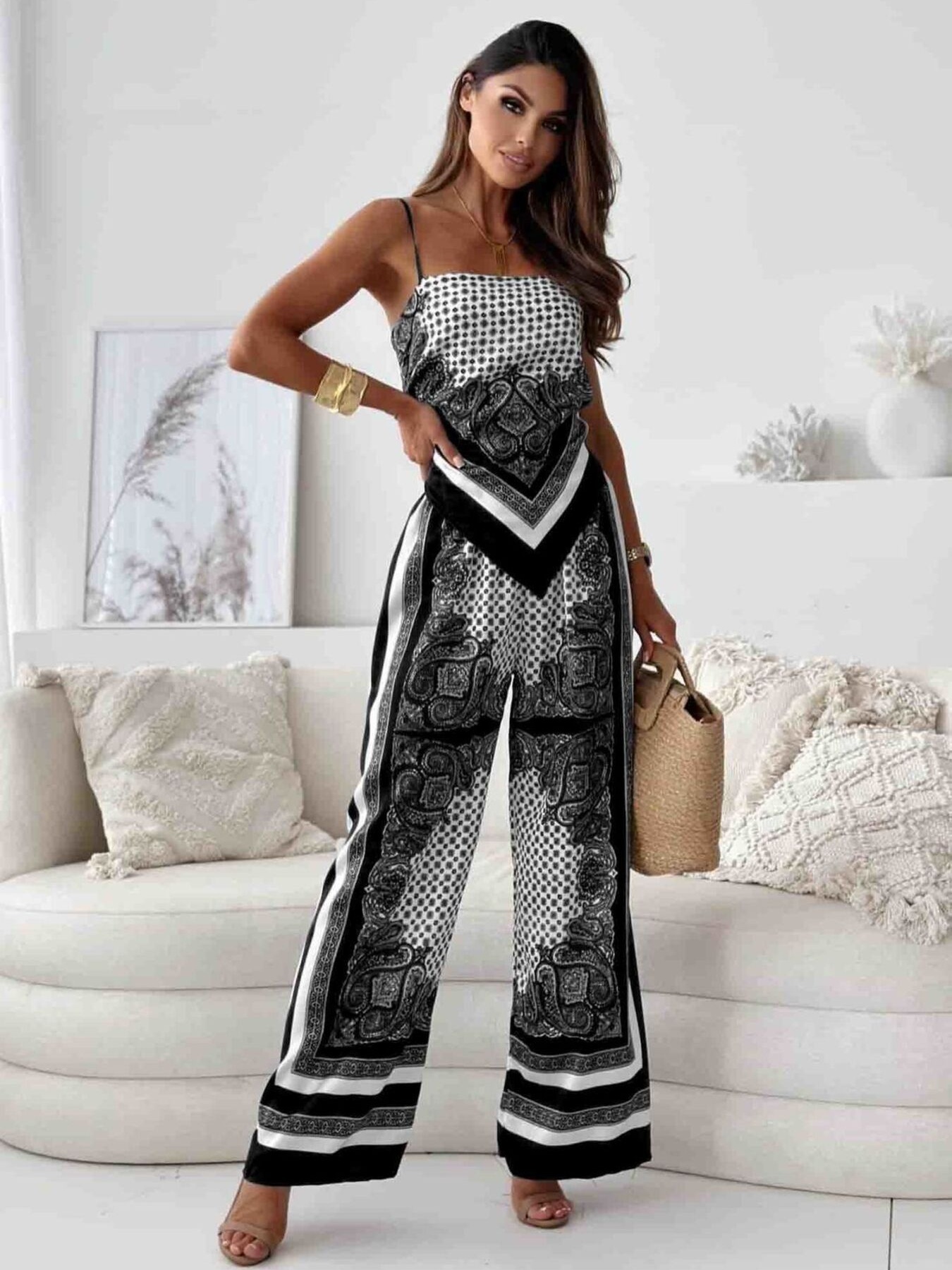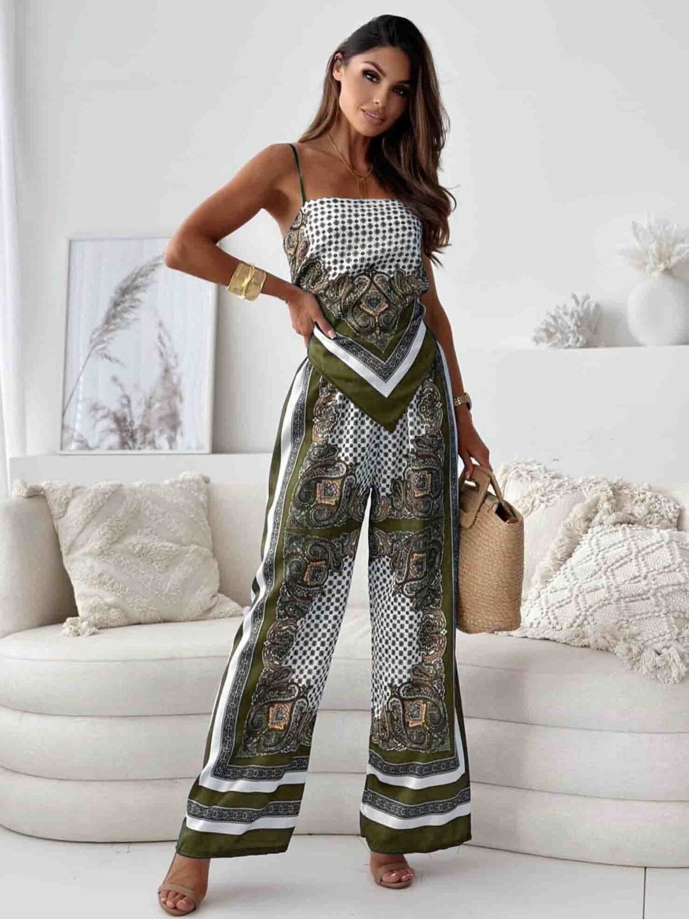 Full Size Boat Neck Top and Wide Leg Pants Set Plus Size