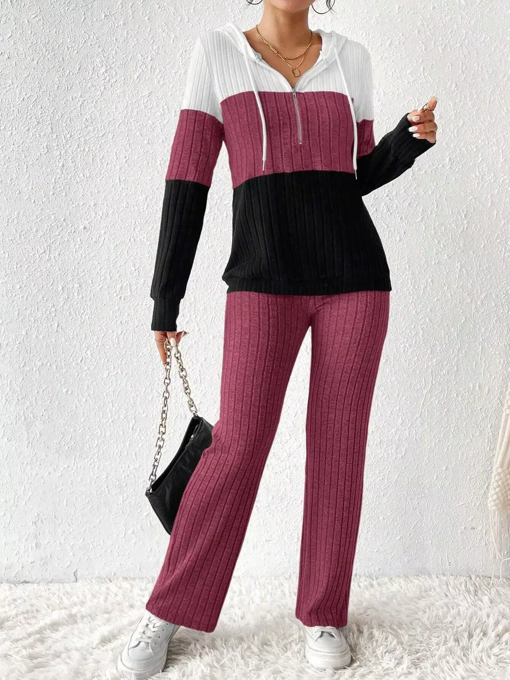 Color Block Half Zip Hooded Top and Pants Set