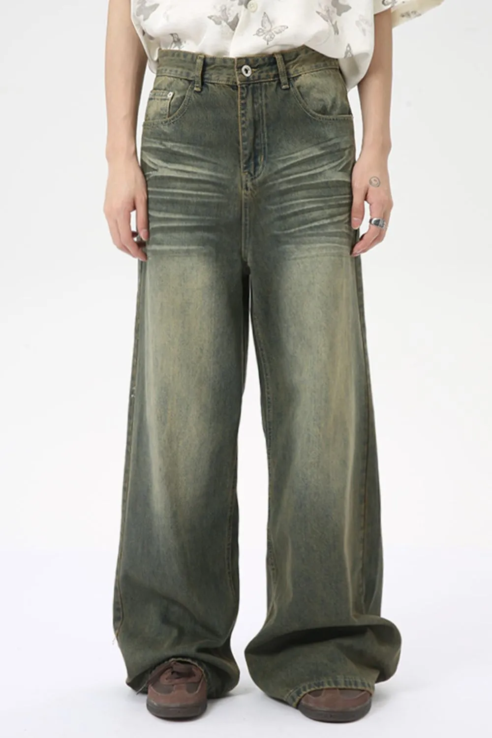 Washed Cat Whiskered Wide Leg Jeans