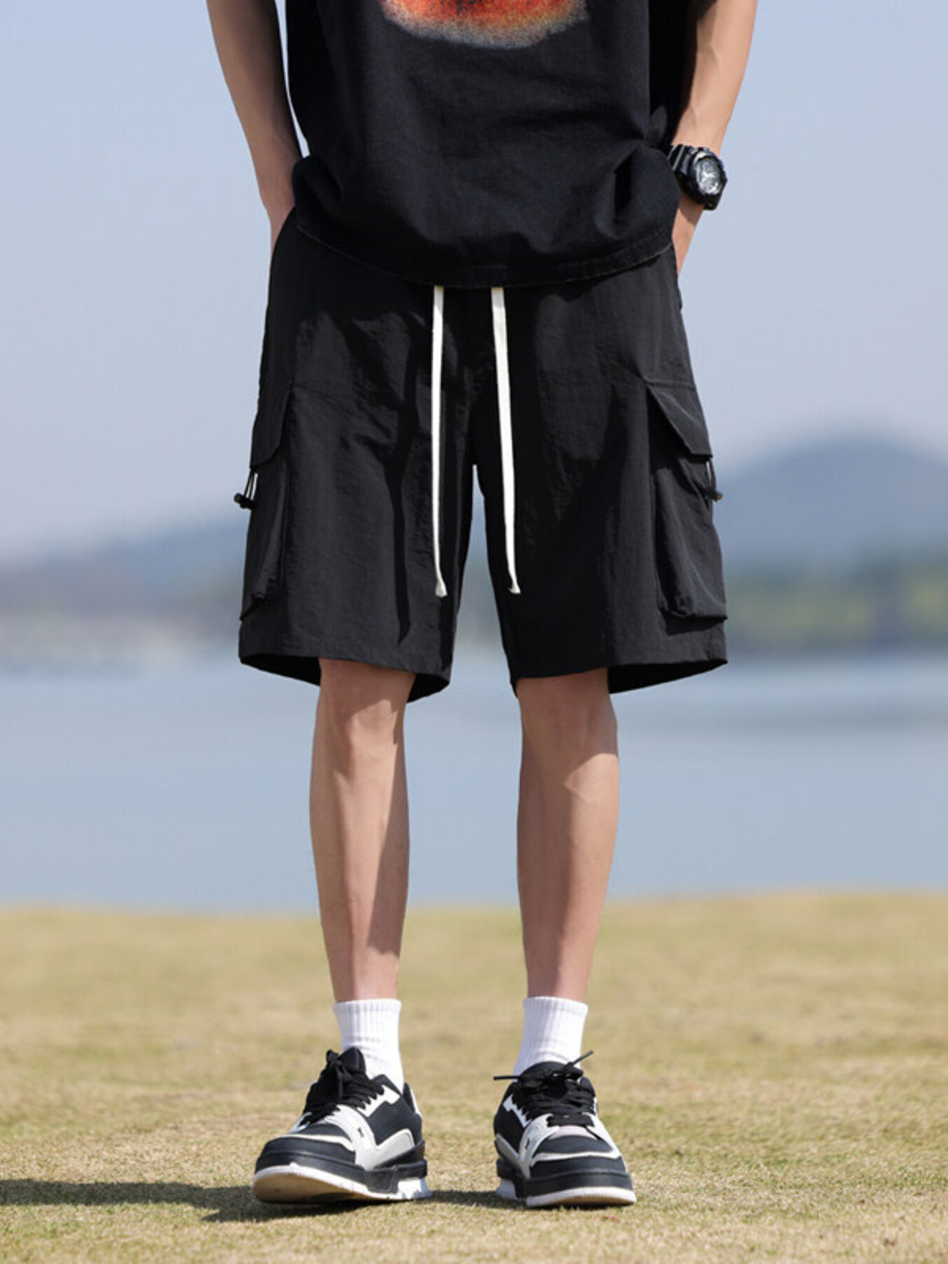 Men's Plus Size Drawstring Cargo Shorts
