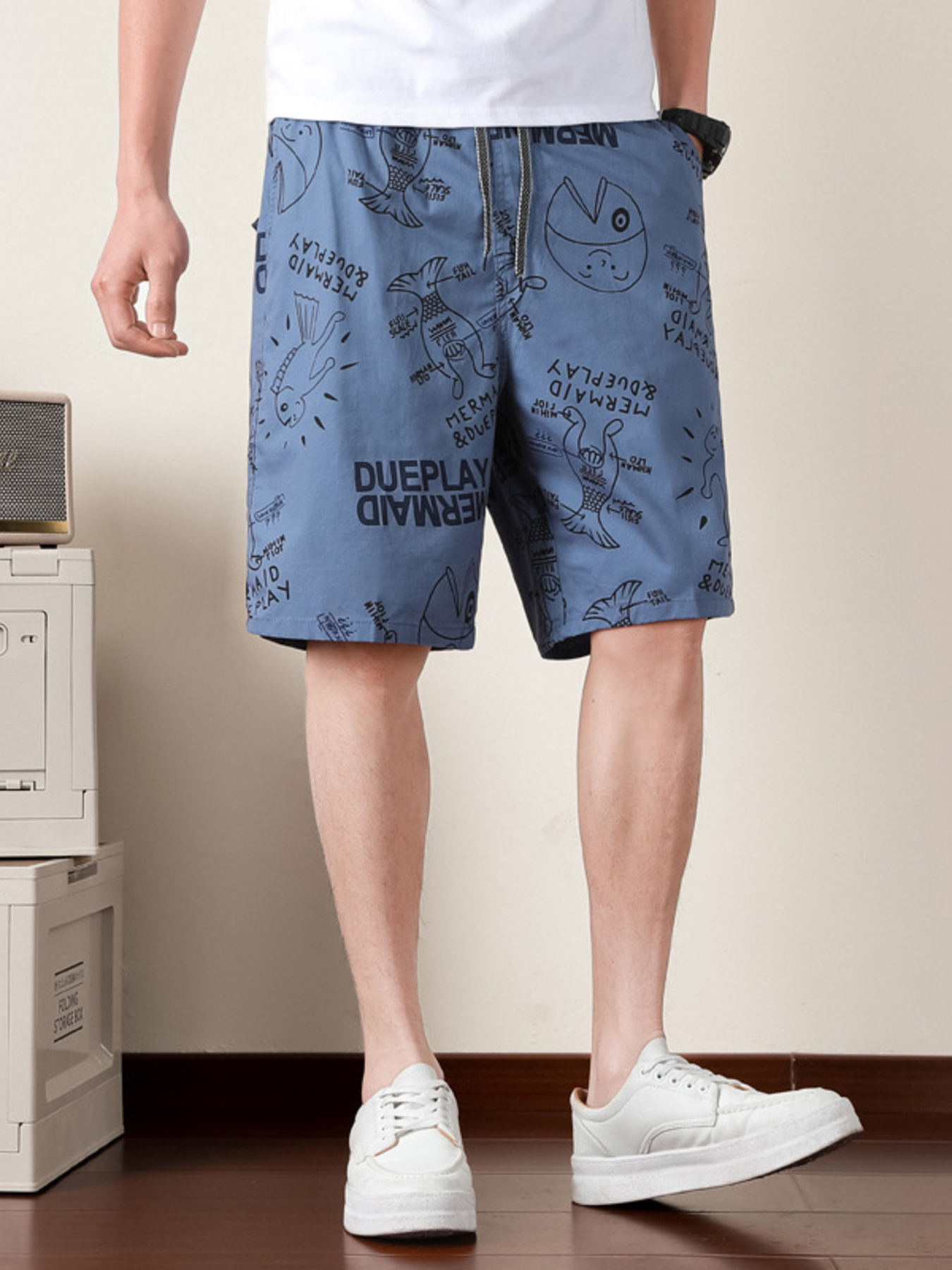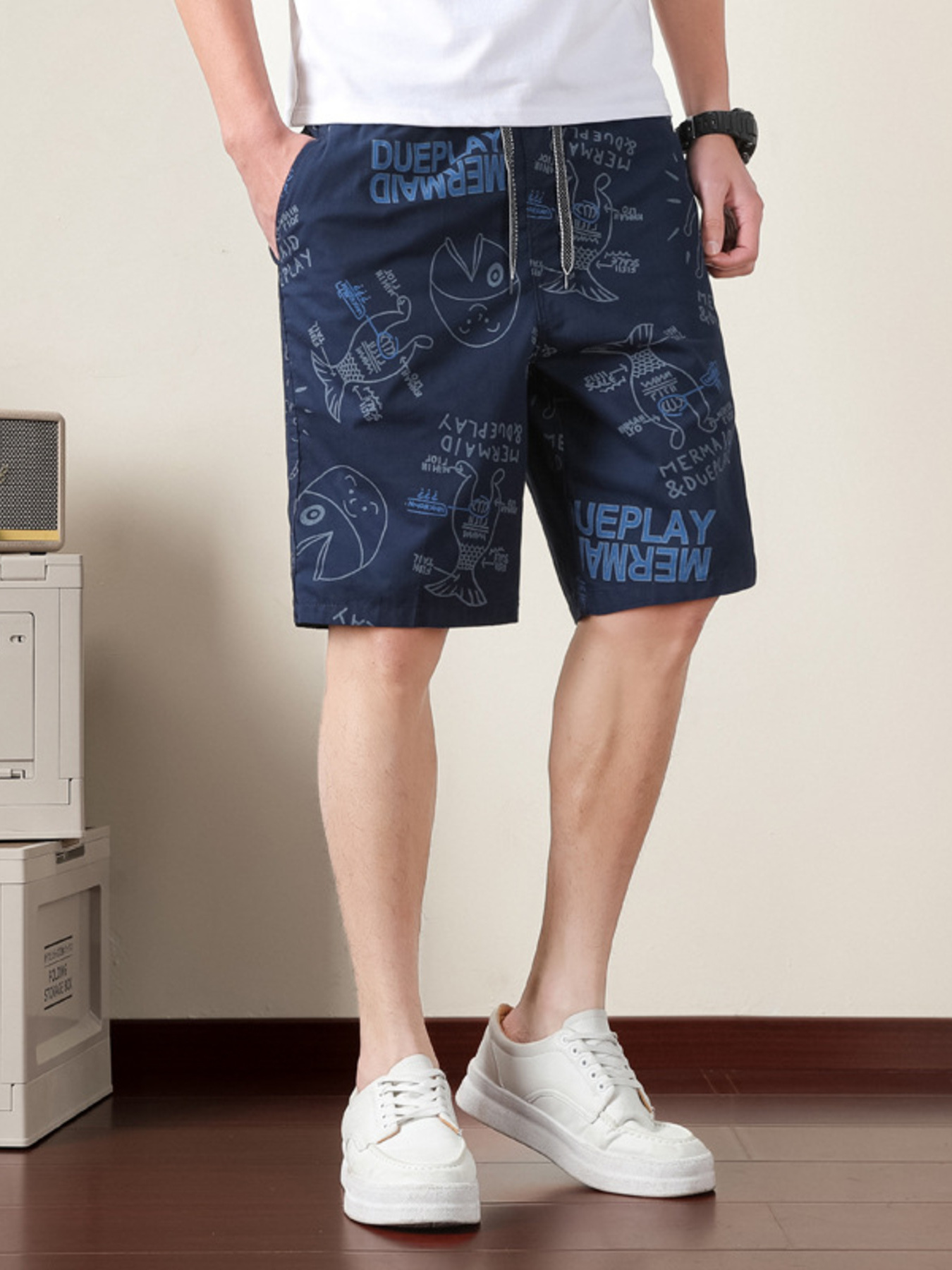 Men's Plus Size Printed Drawstring Shorts
