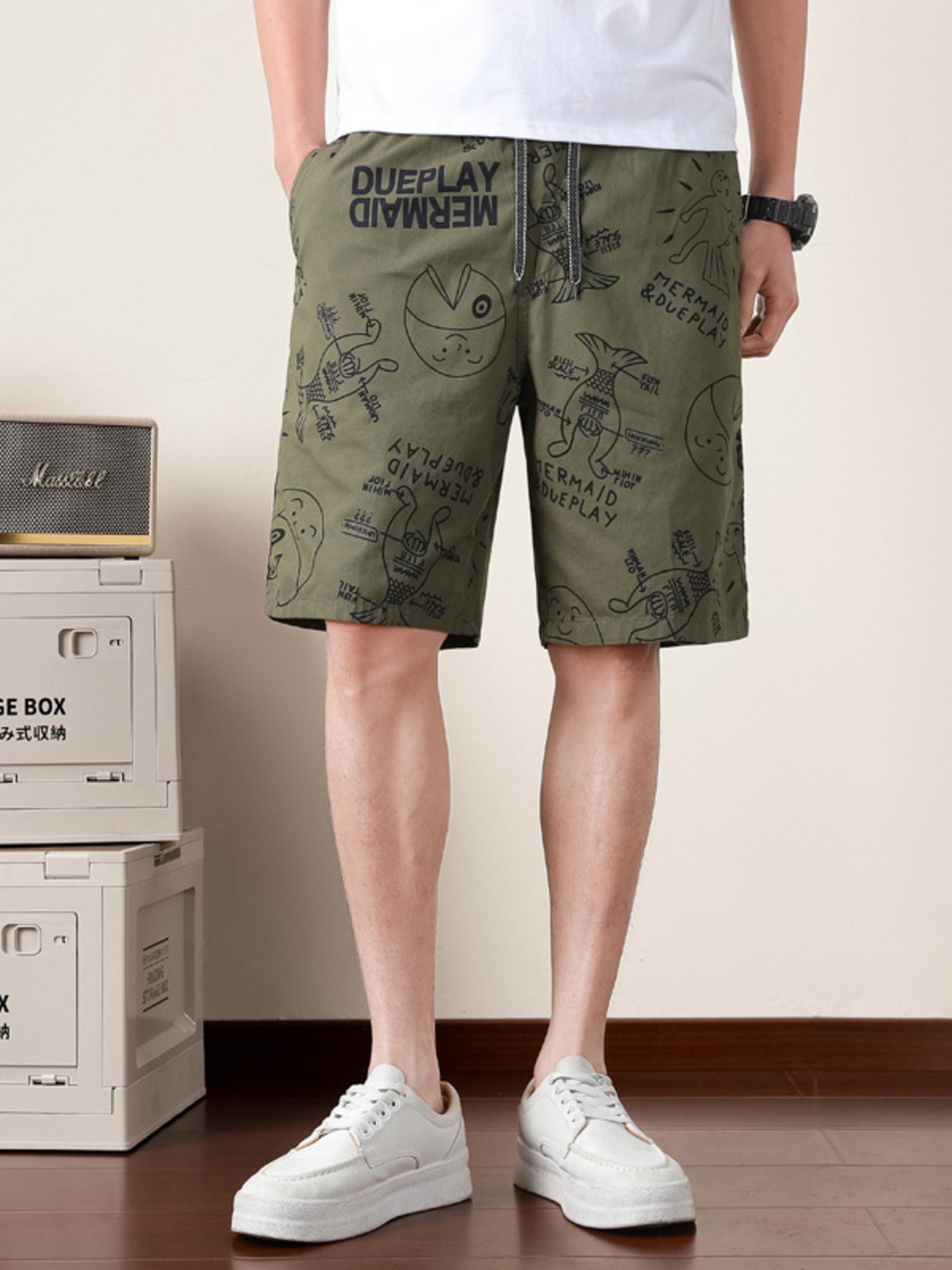 Men's Drawstring Pearl Detail Shorts