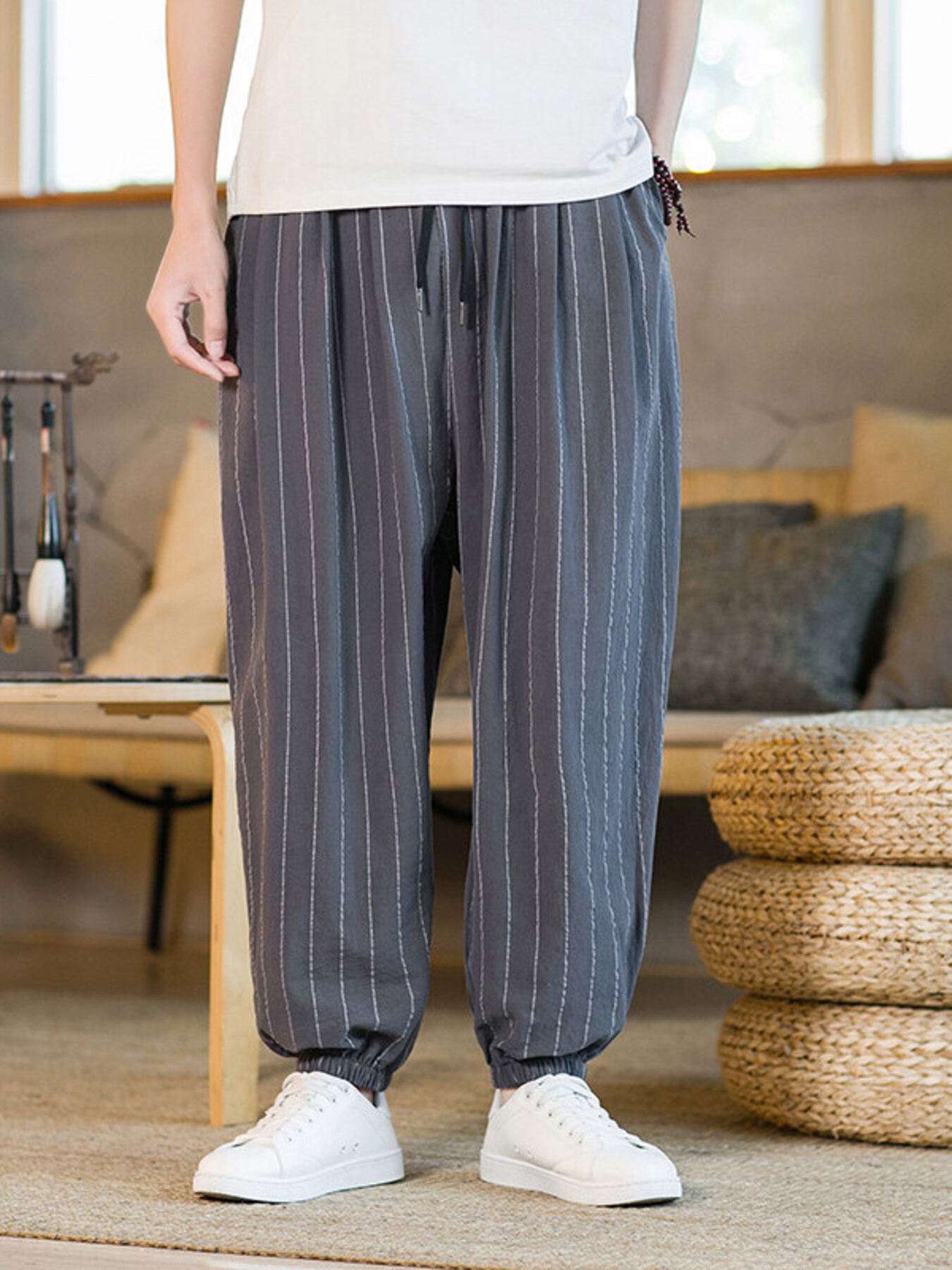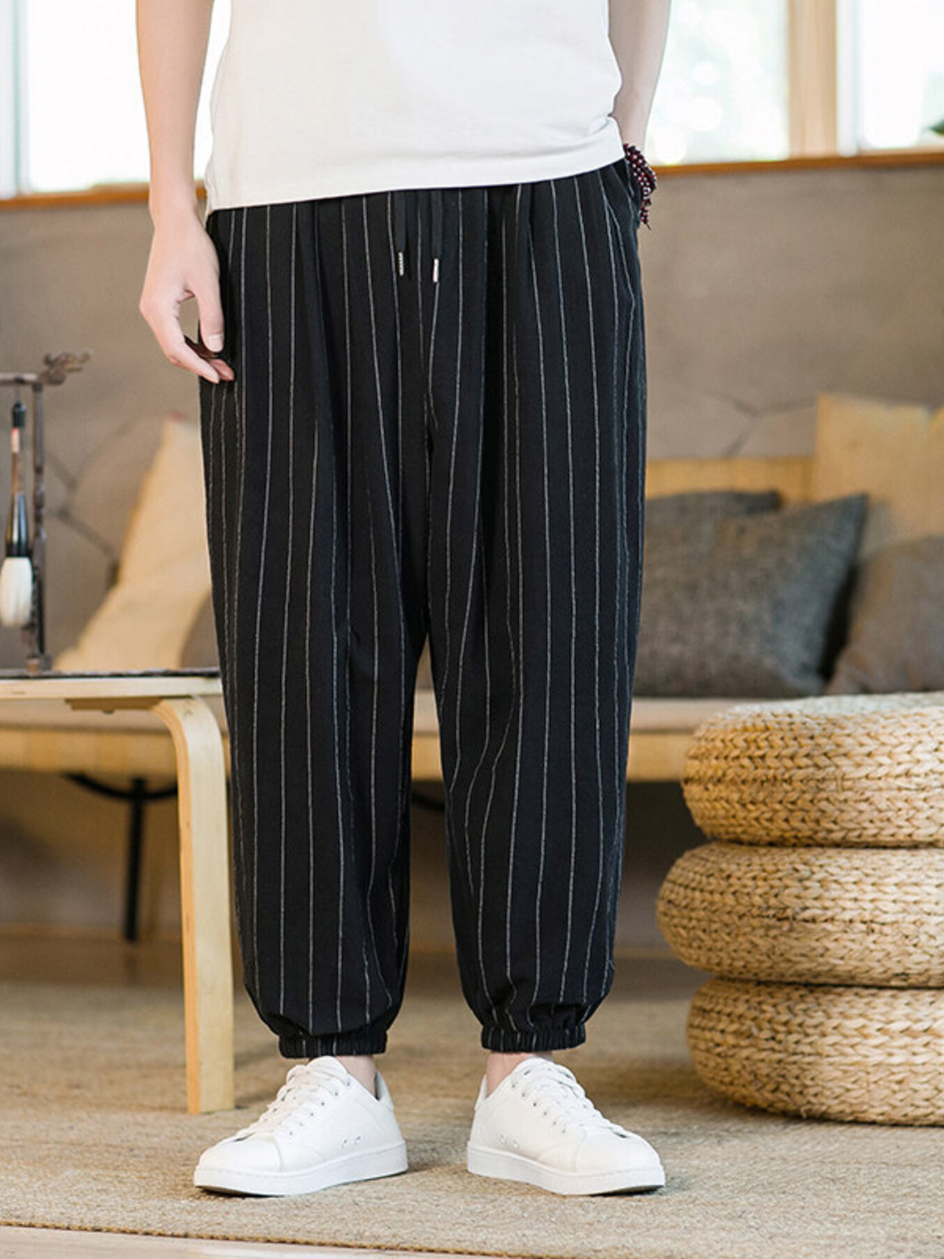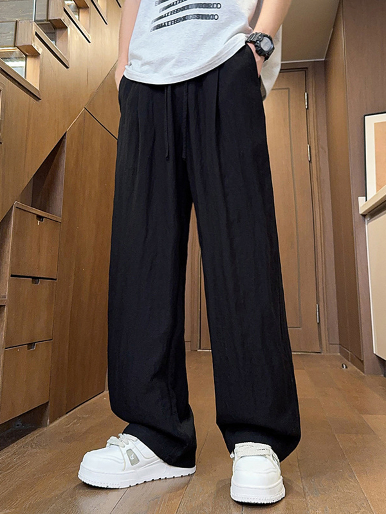 Men's Drawstring Wide Leg Pants