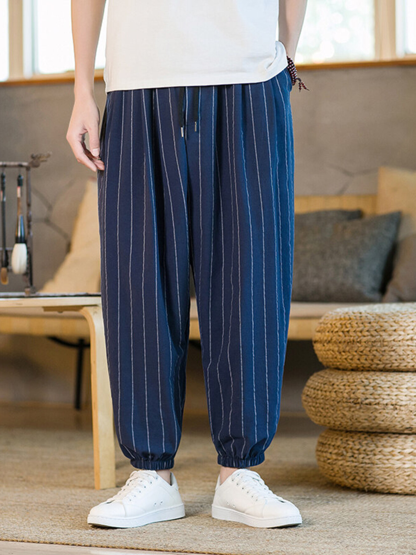 Men's Plus Size Striped Wide Leg Joggers