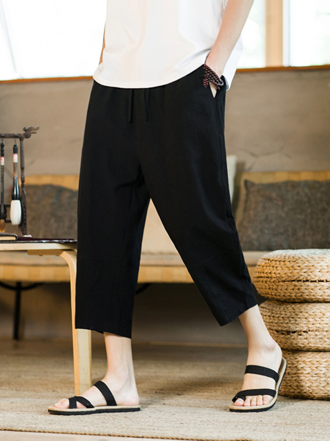 Men's Plus Size Casual Loose Fit Cropped Pants