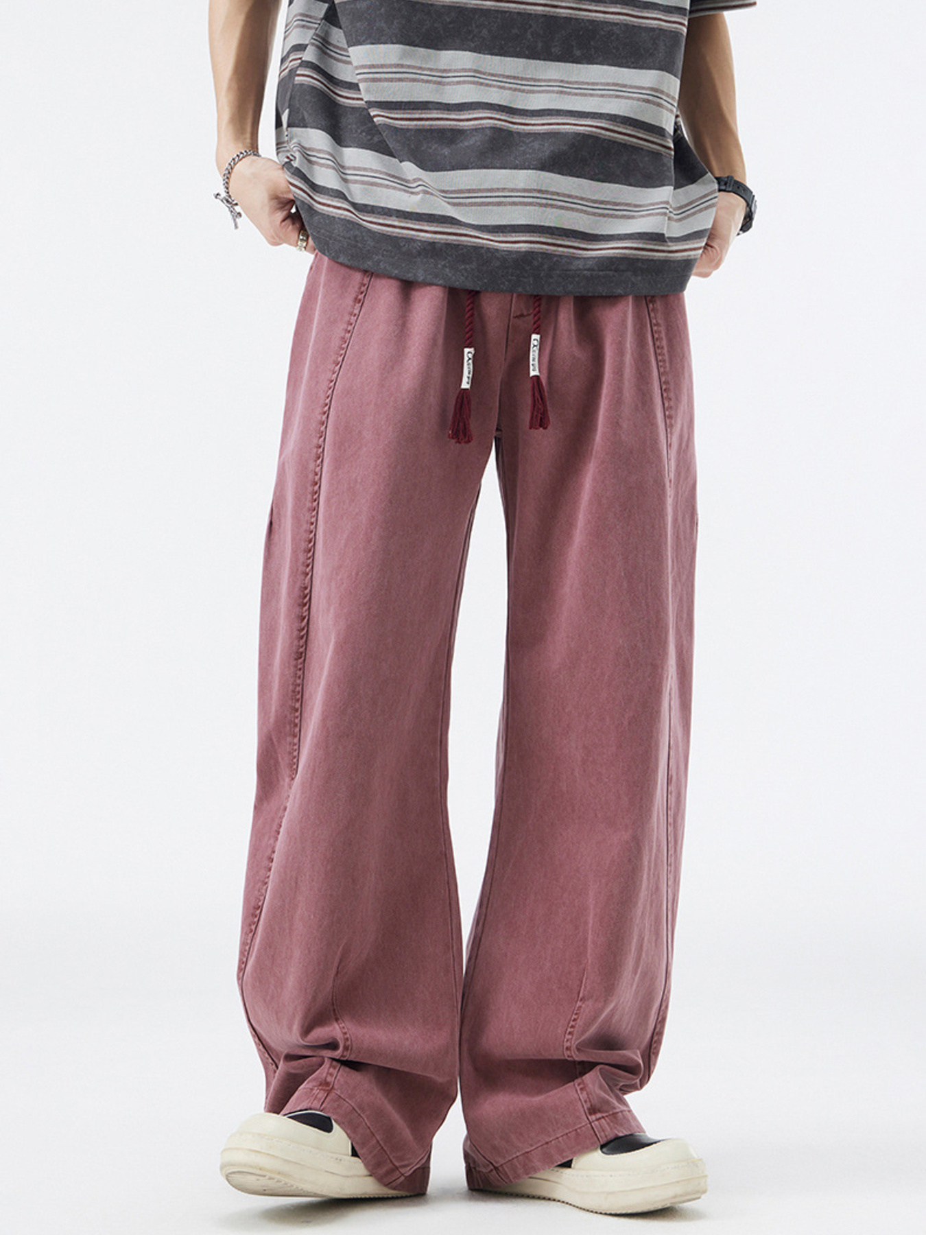 Men's Full Size Loose Fit Drawstring Wide Leg Pants Plus Size