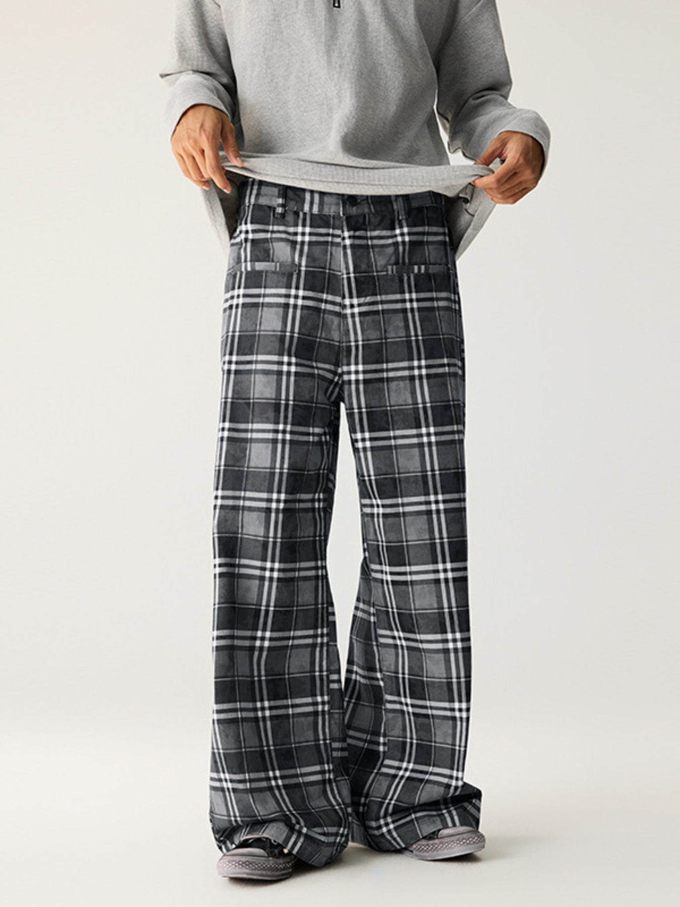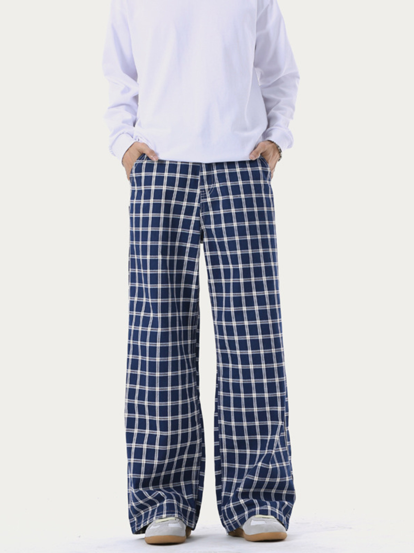 Men's Relaxed Fit Plaid Wide Leg Pants