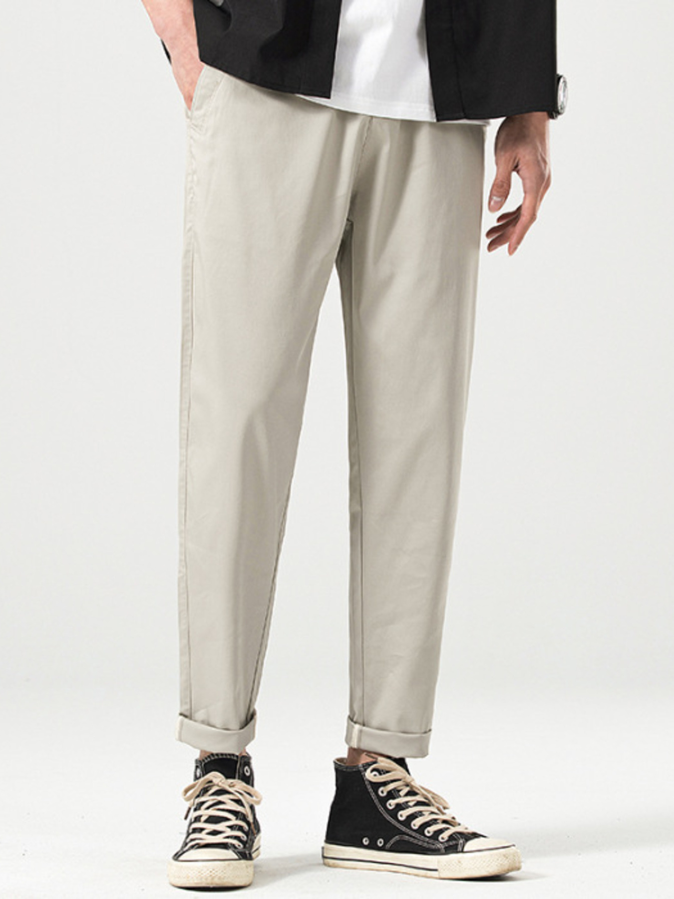 Men's Casual Straight-Leg Cropped Pants