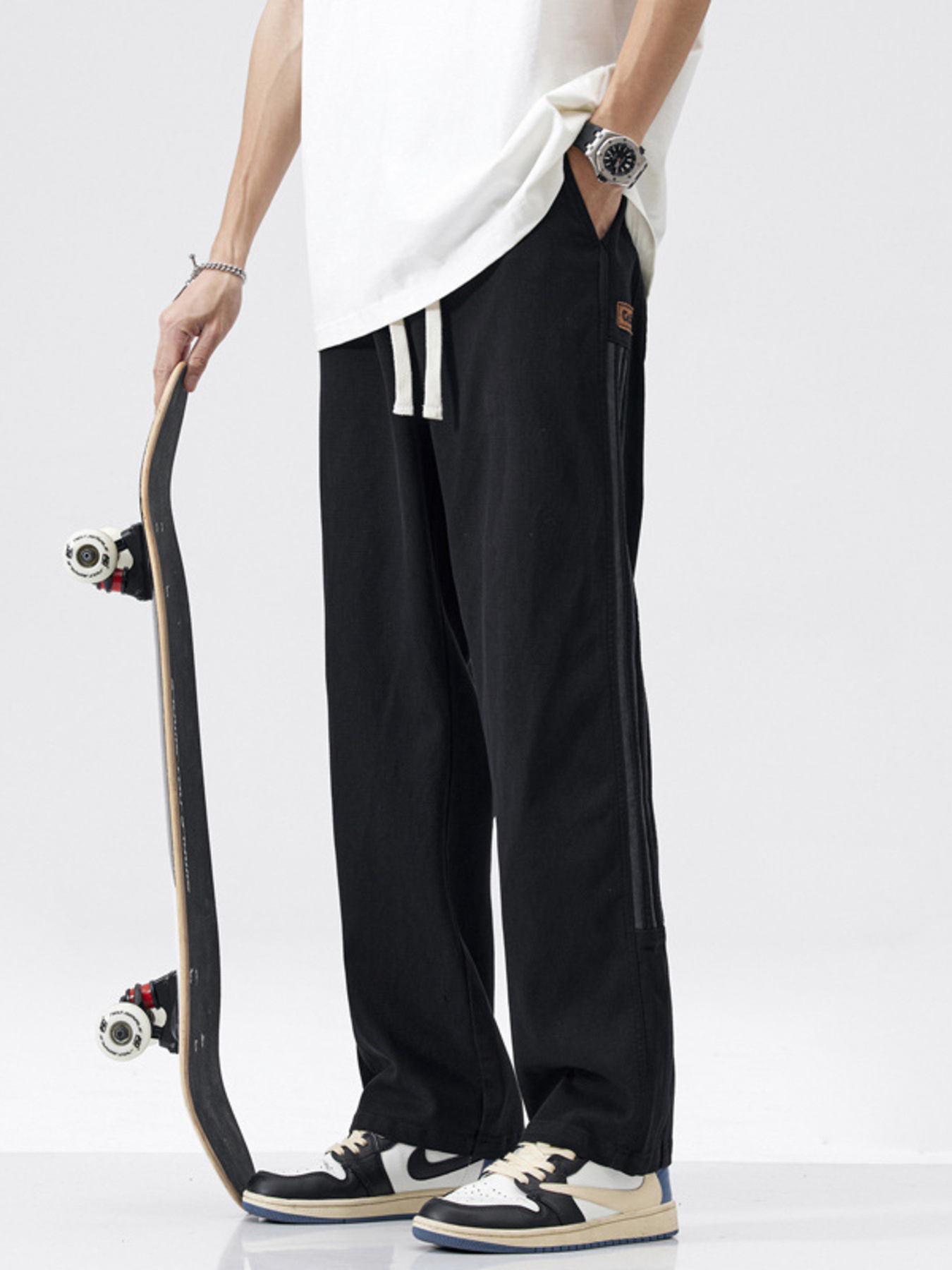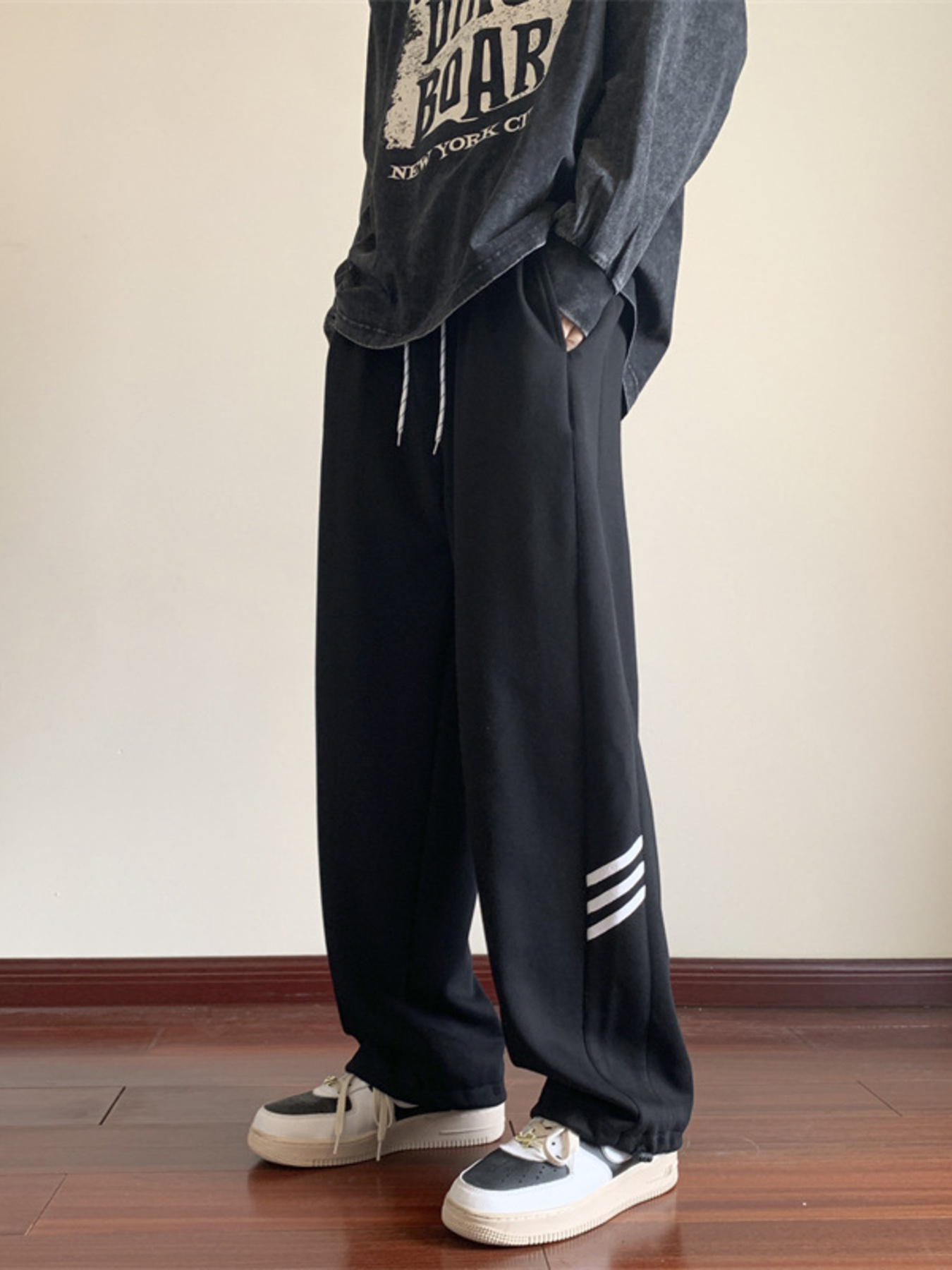 Men's Wide Leg Side Striped Pants