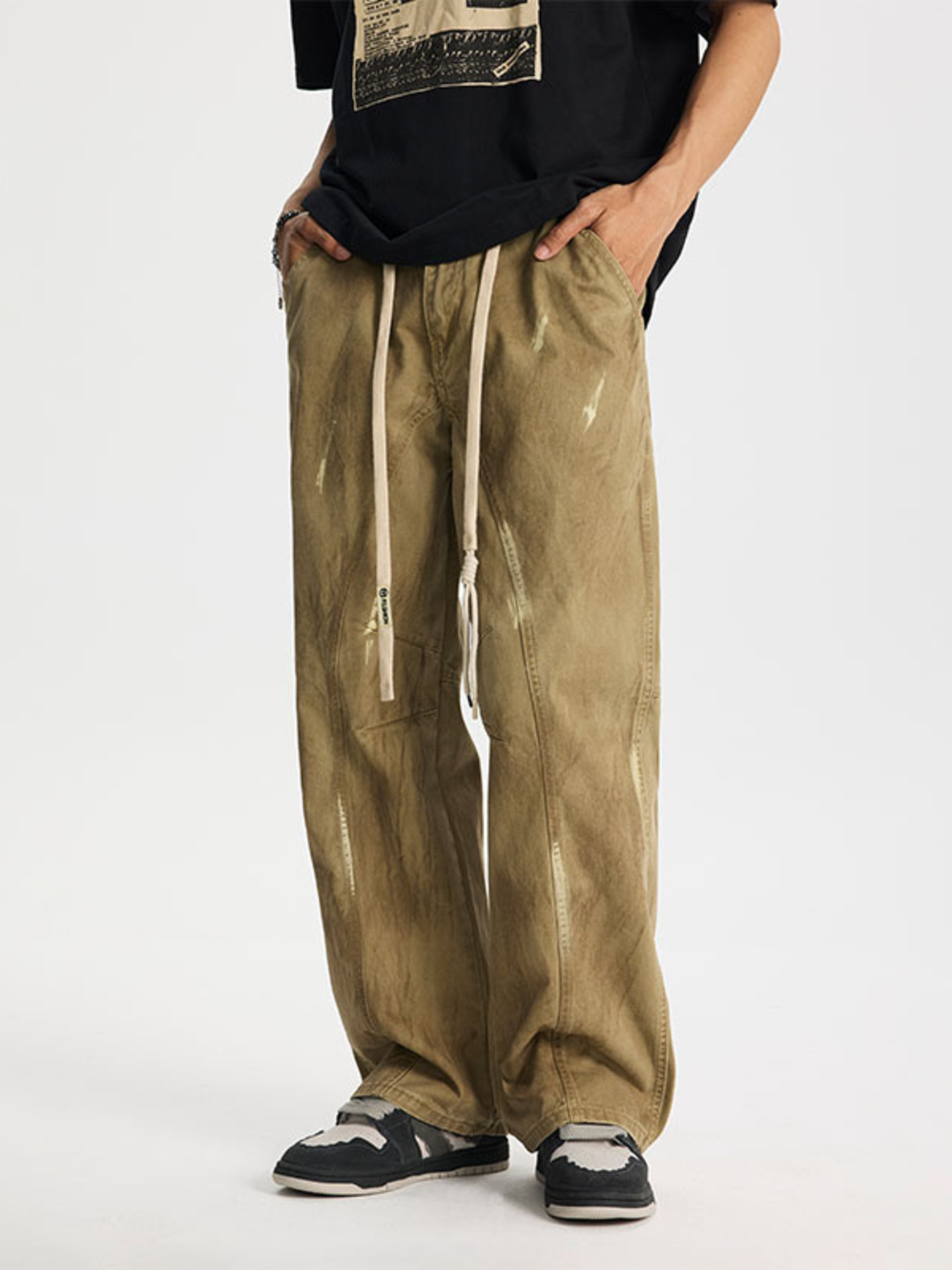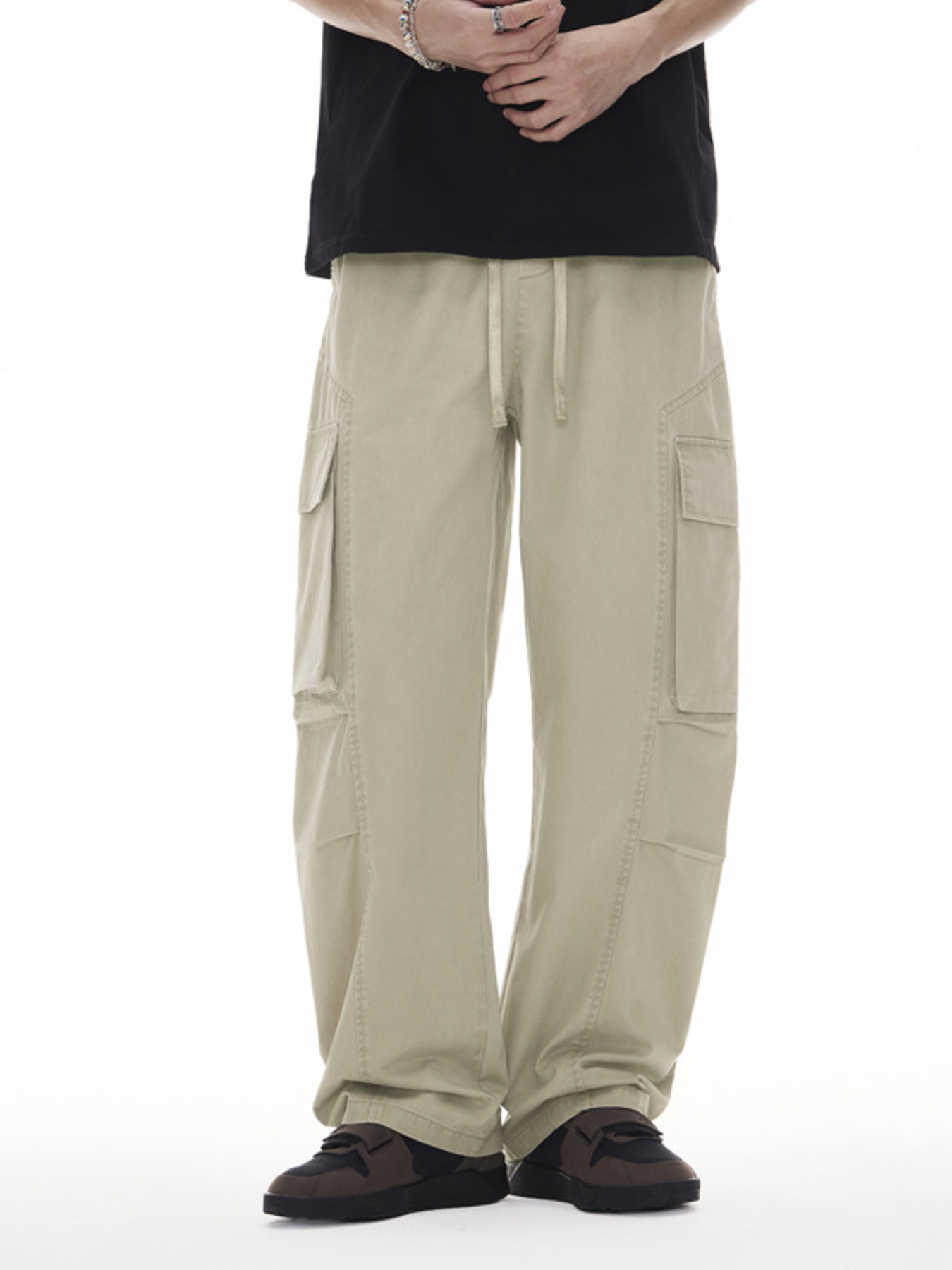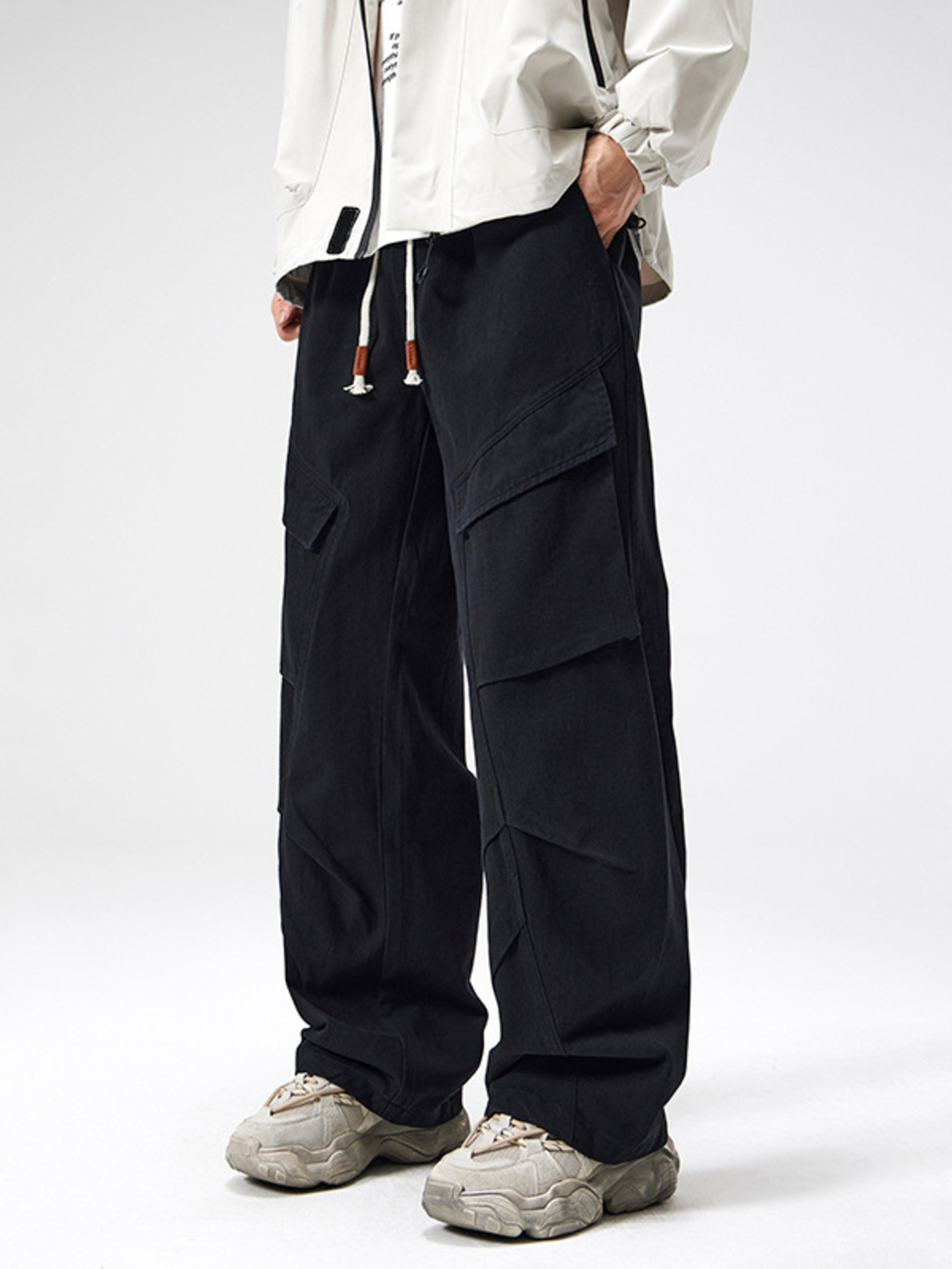 Men's Plus Size Wide Leg Cargo Drawstring Pants