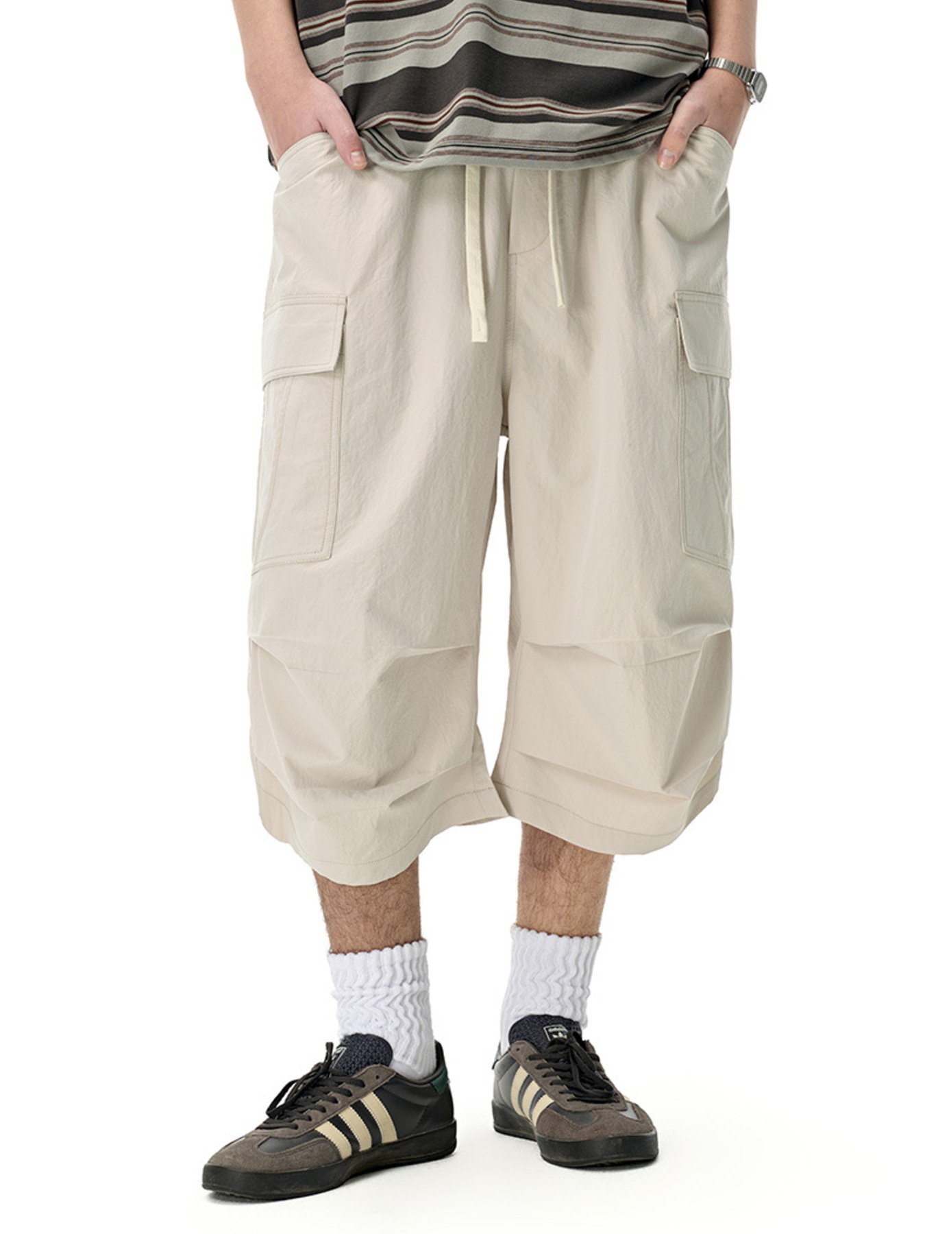 Men's Stripe Wide Leg Cargo Pants