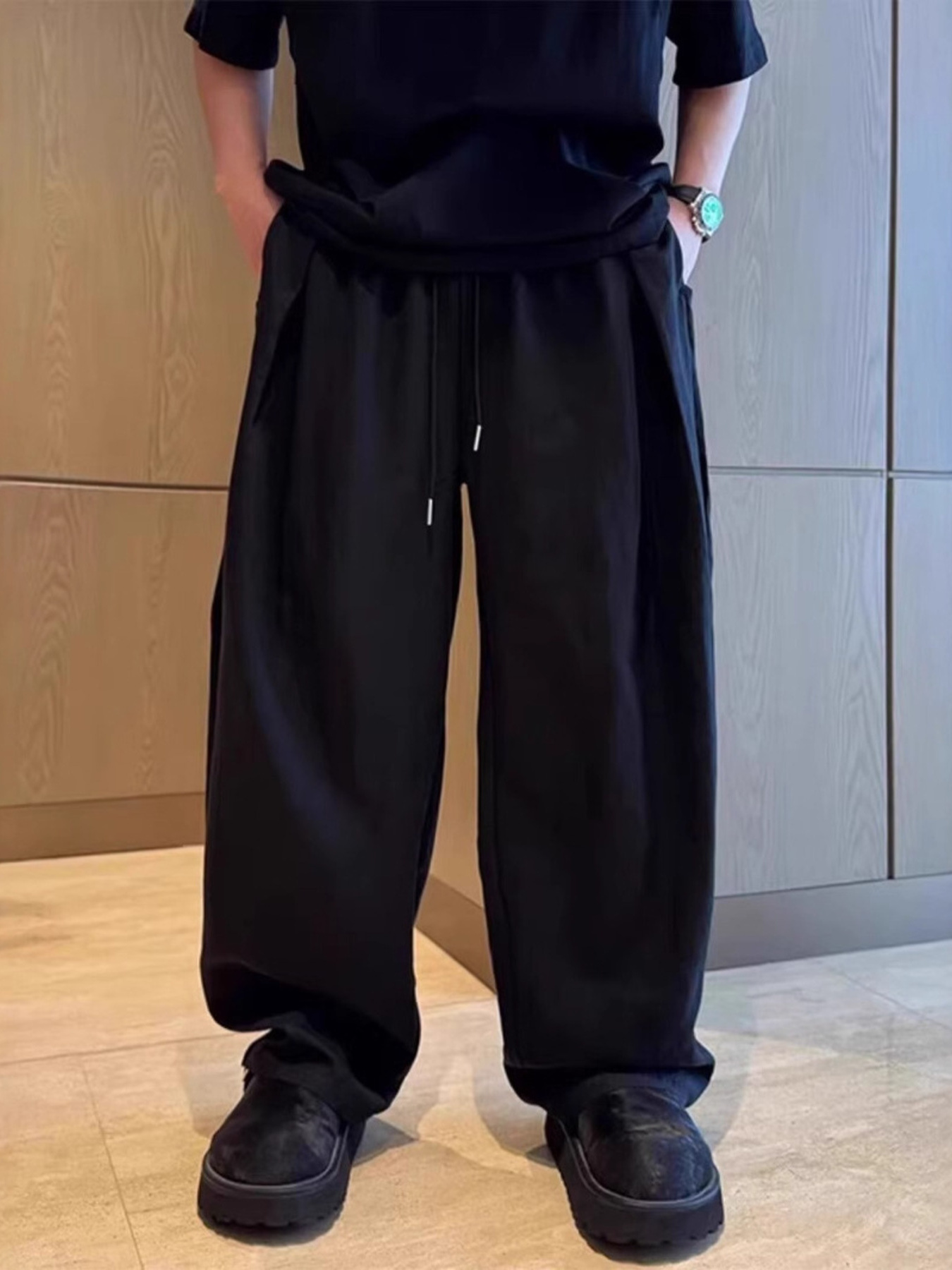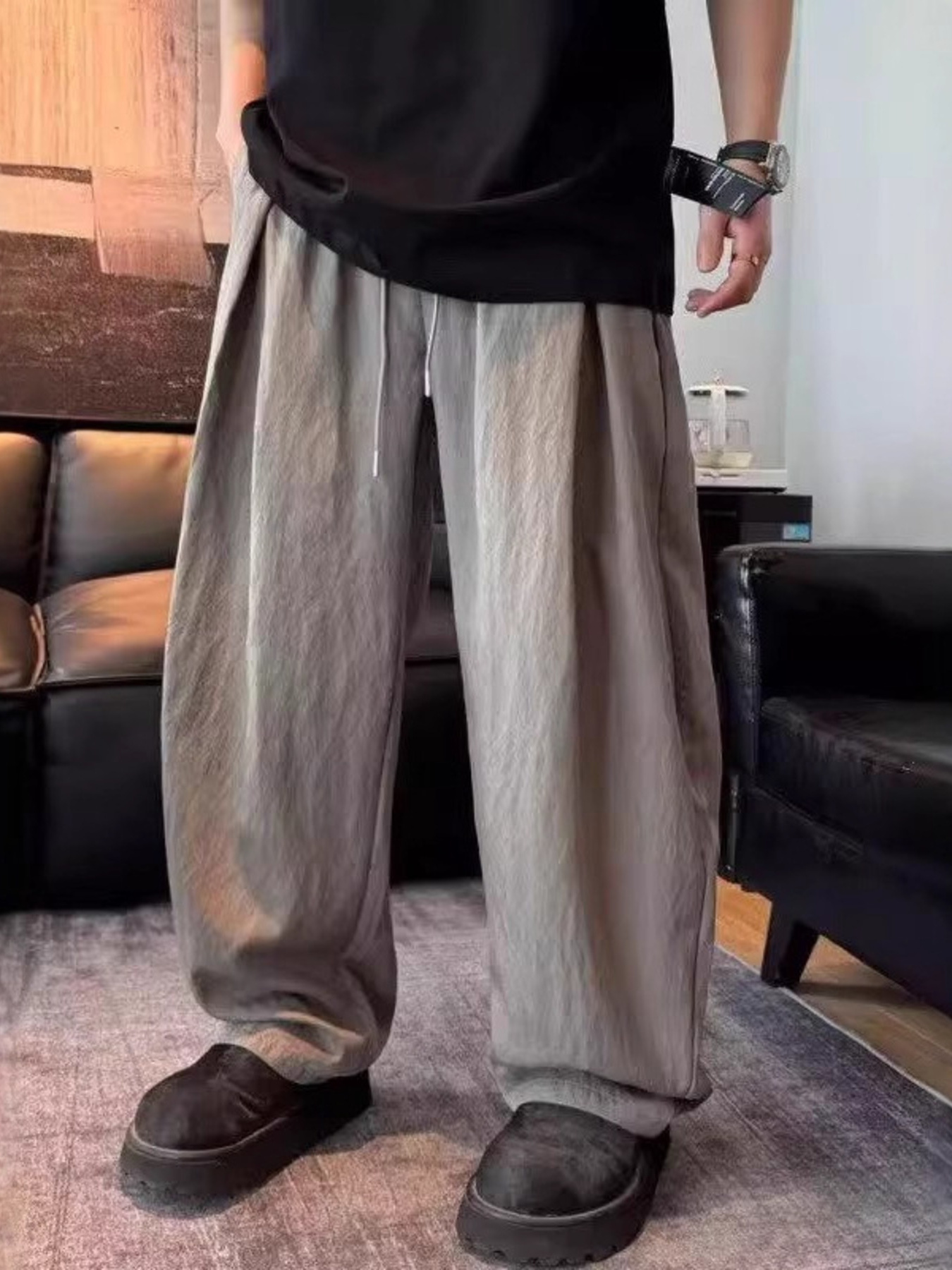 Men's Drawstring Wide Leg Pants