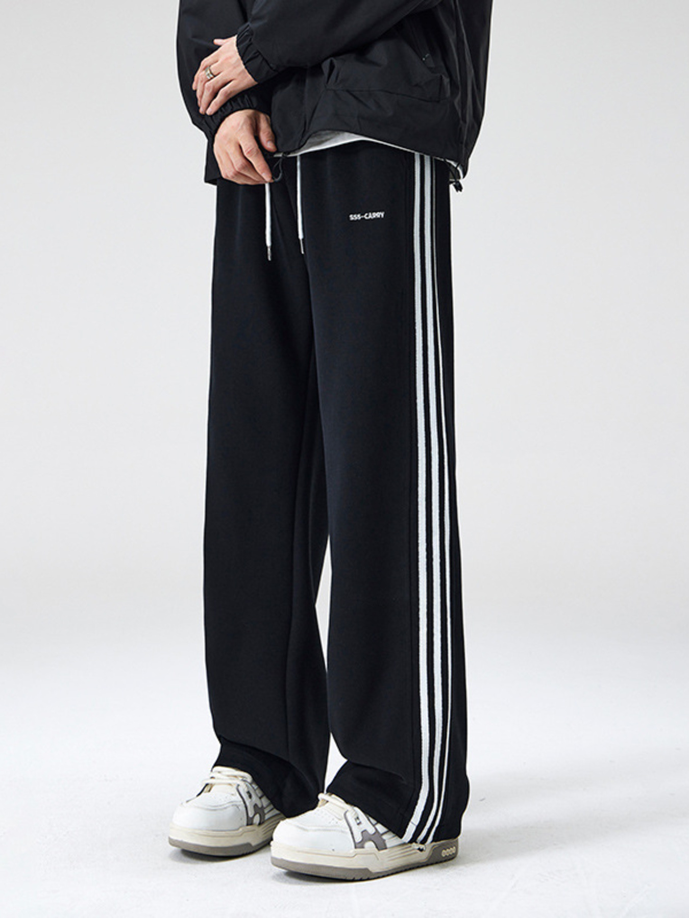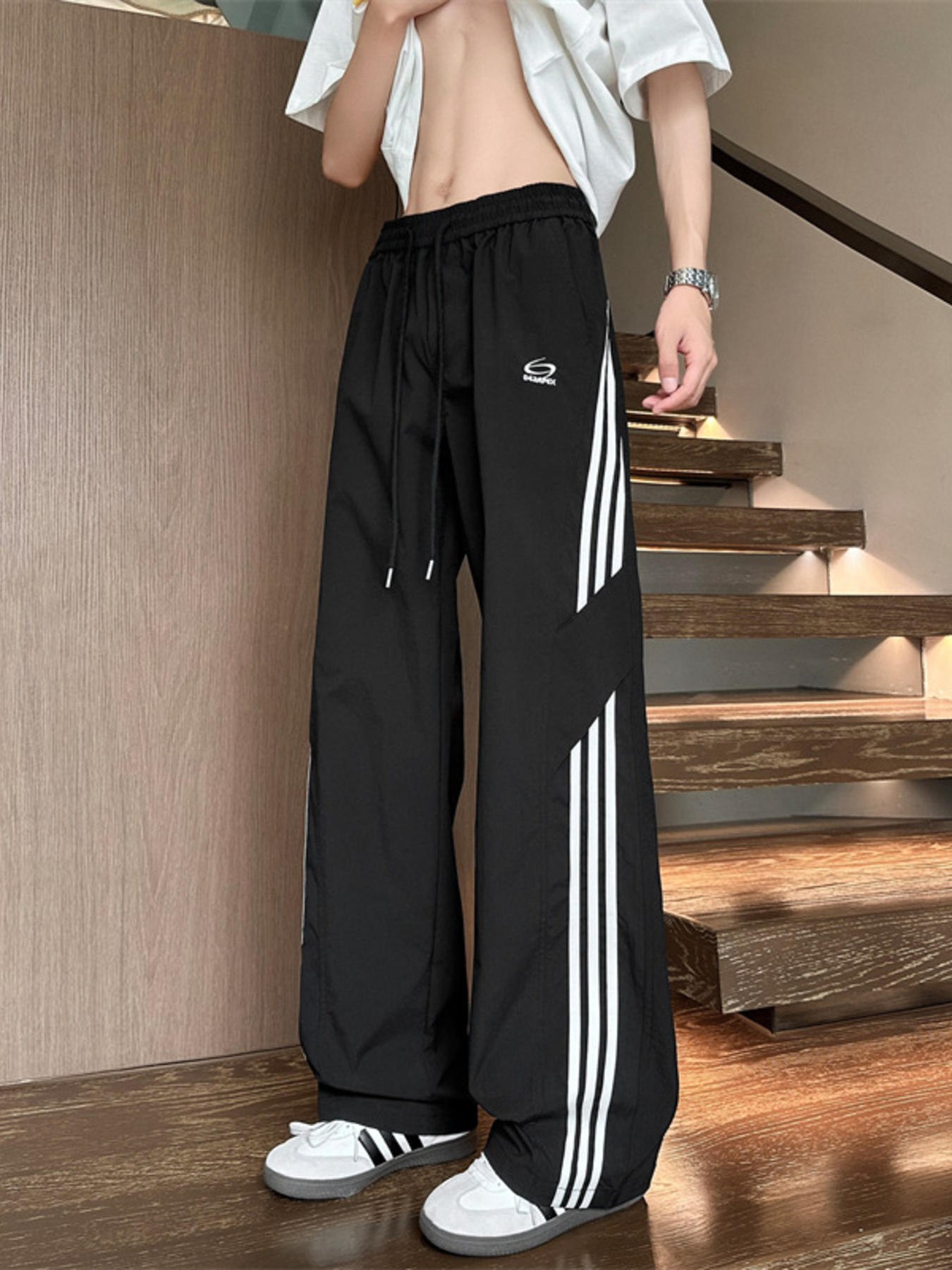 Men's Plus Size Drawstring Striped Wide Leg Pants