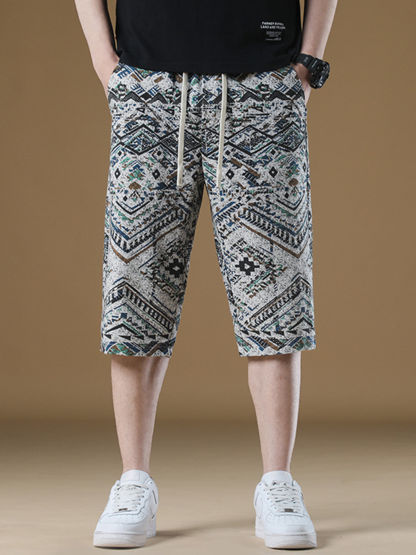Men's Plus Size Geometric Pattern Drawstring Casual Shorts
