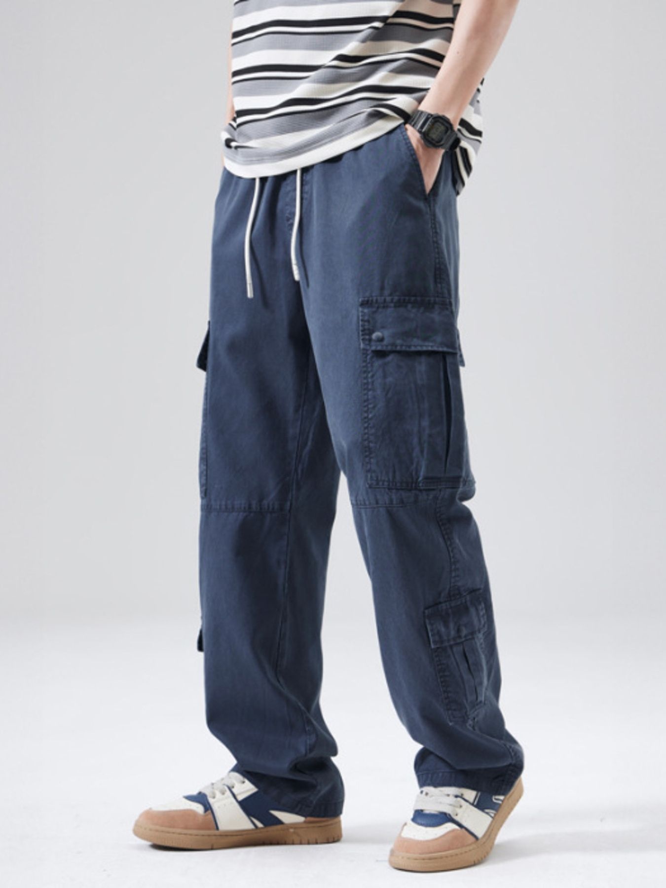 Men's Full Size Drawstring Wide Leg Cargo Pants Plus Size