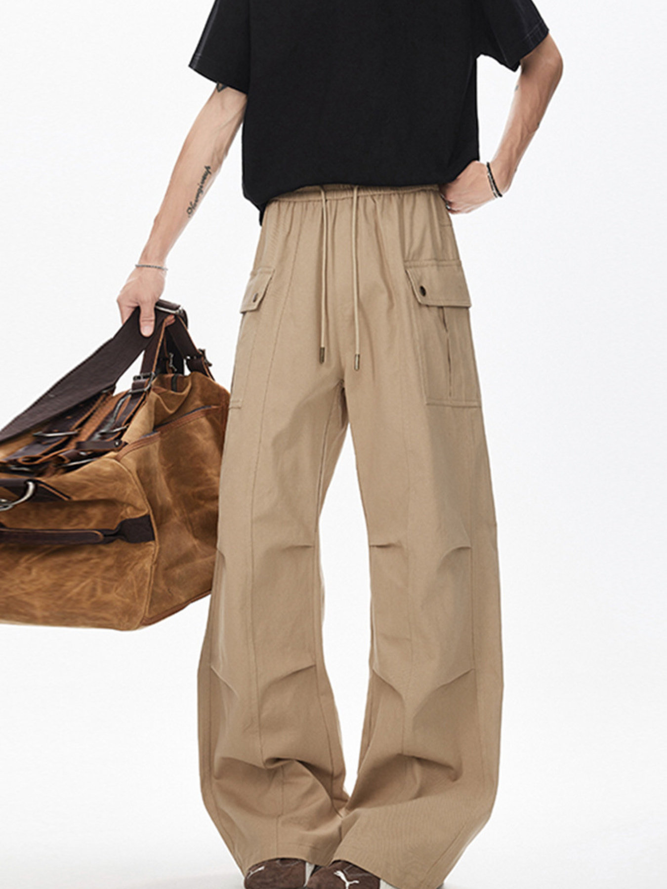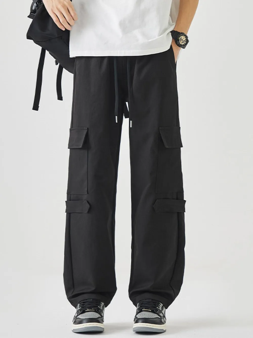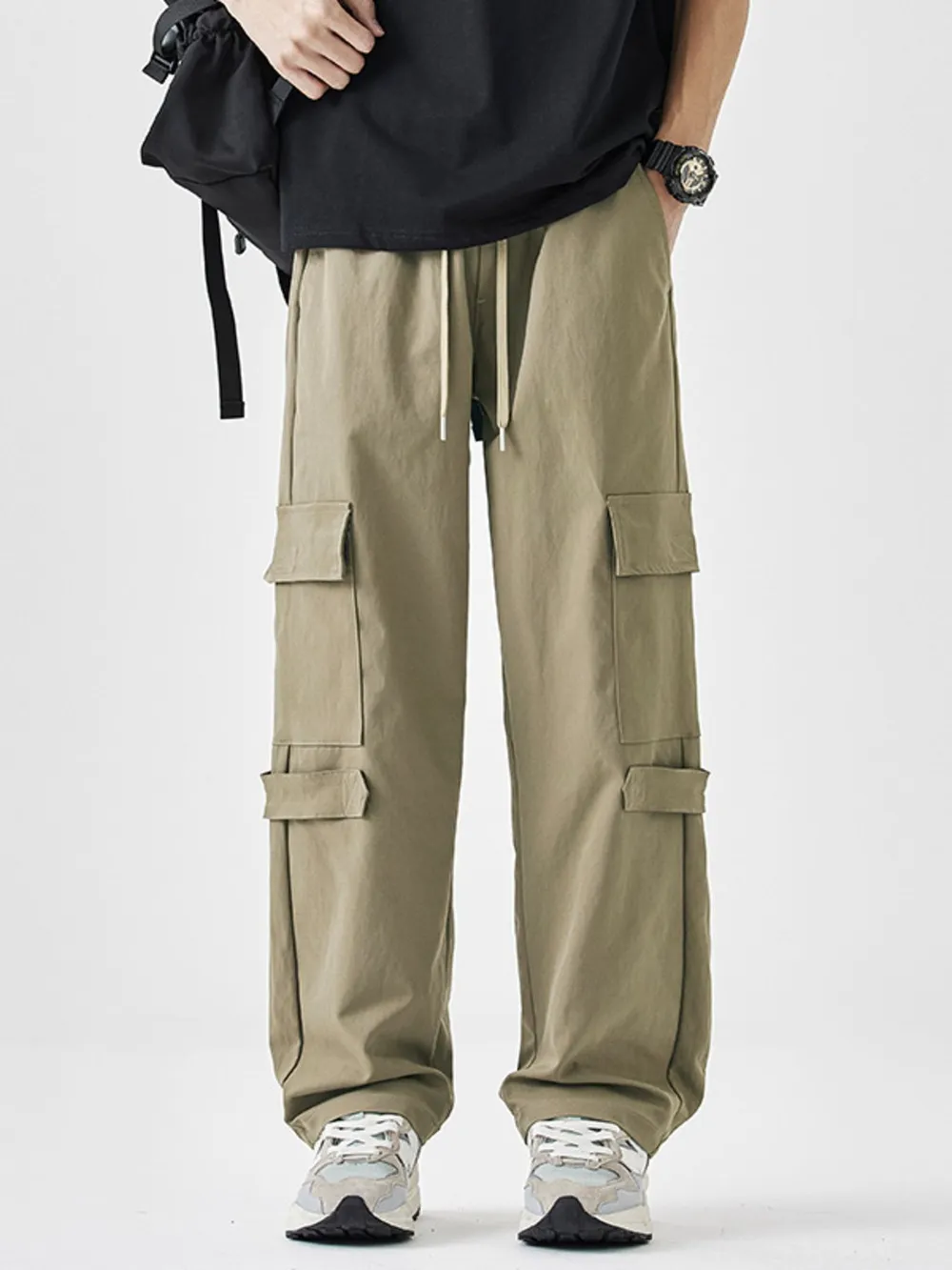 Men's Multi-Pocket Cargo Wide Leg Pants with Drawstring Waist