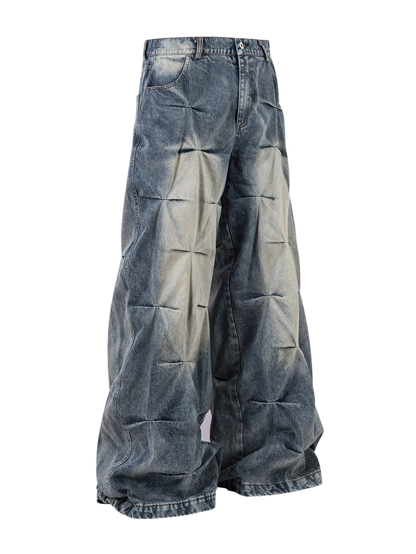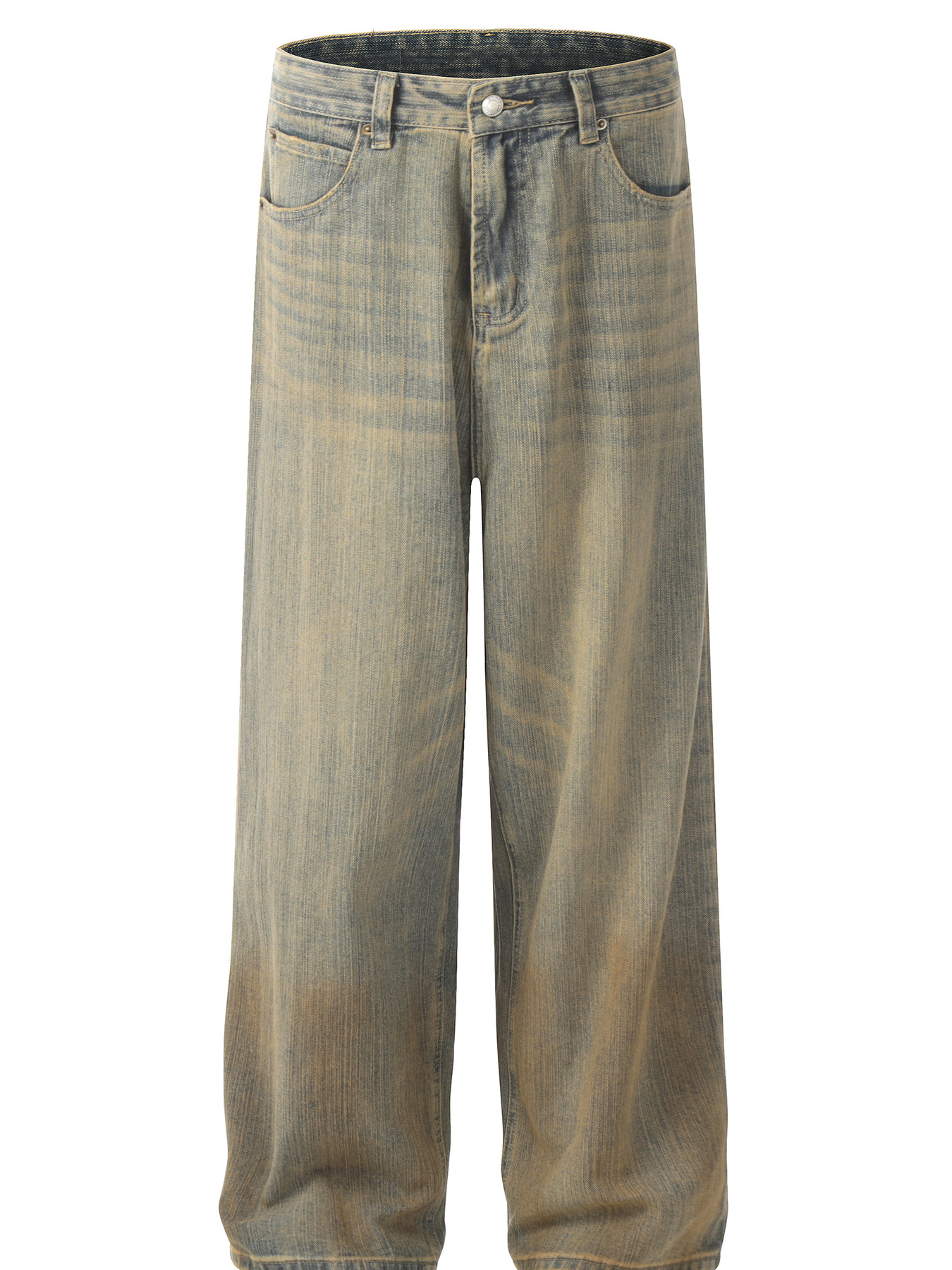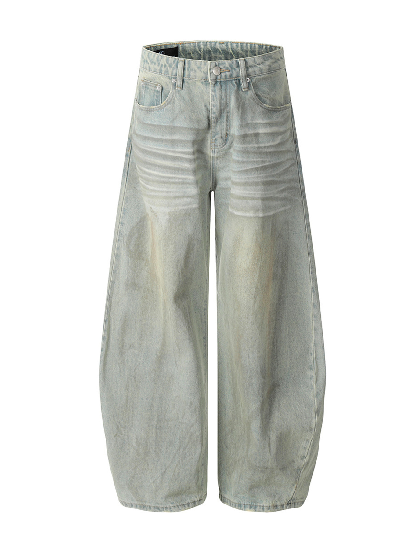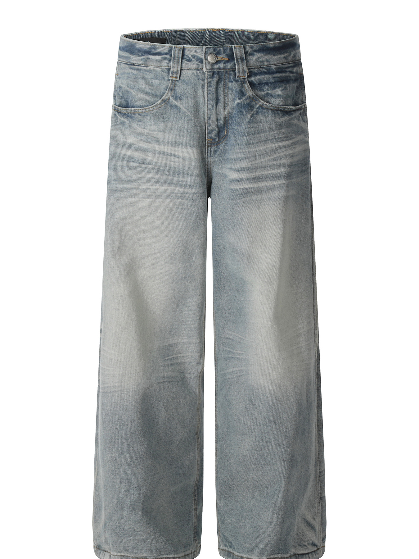 Men's Wide-Leg Vintage Wash Denim Jeans