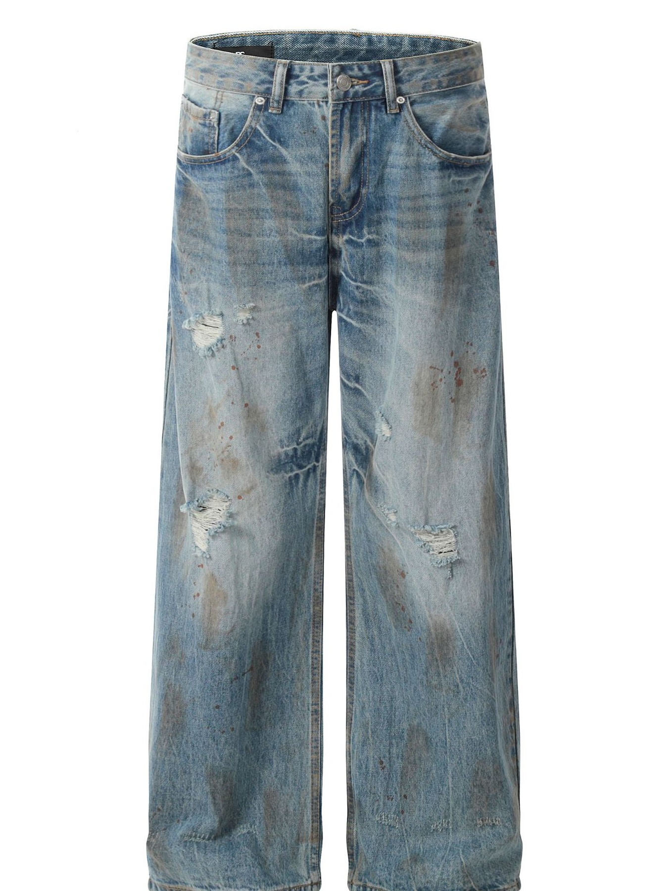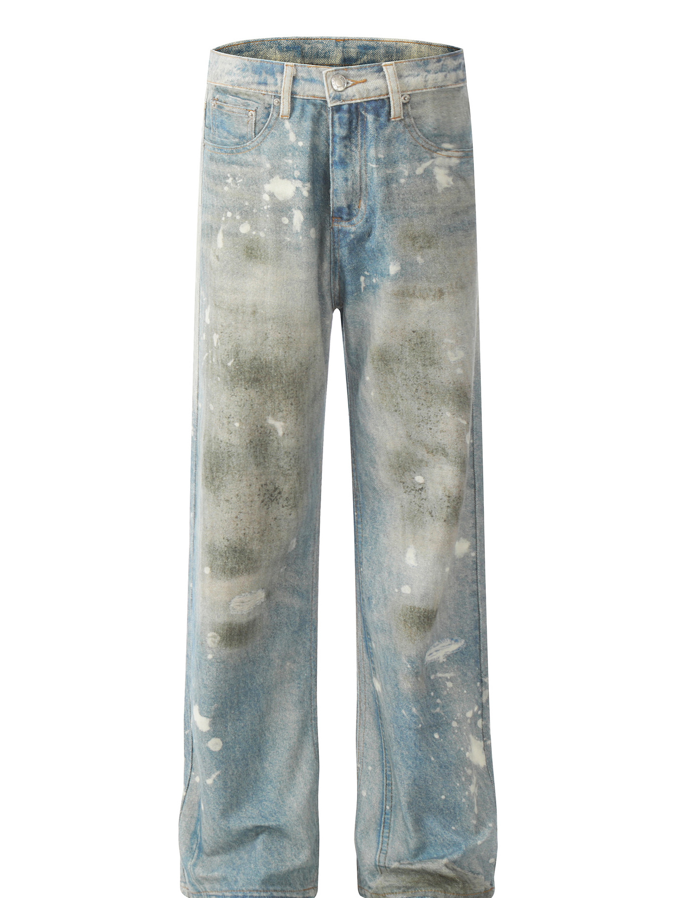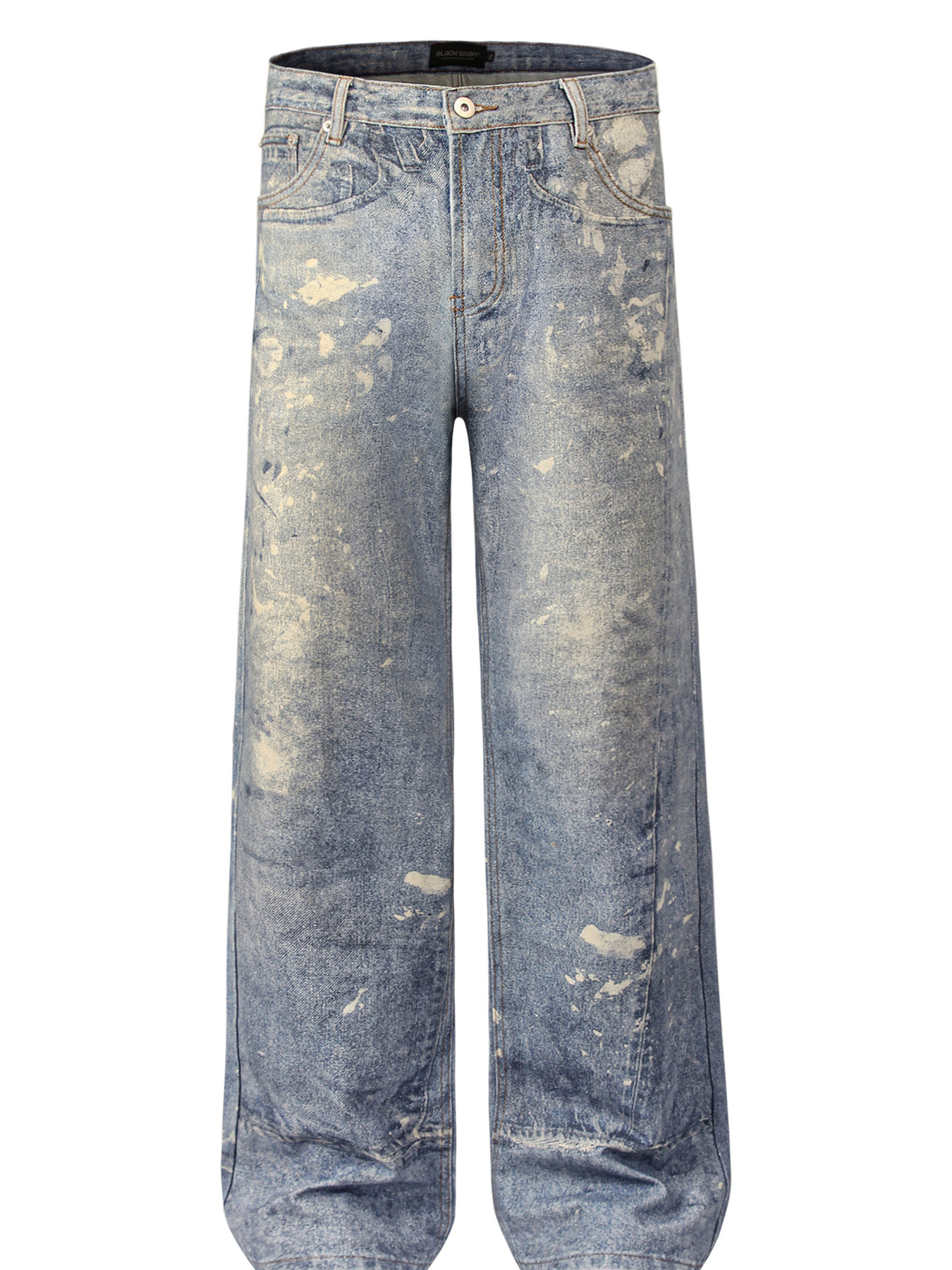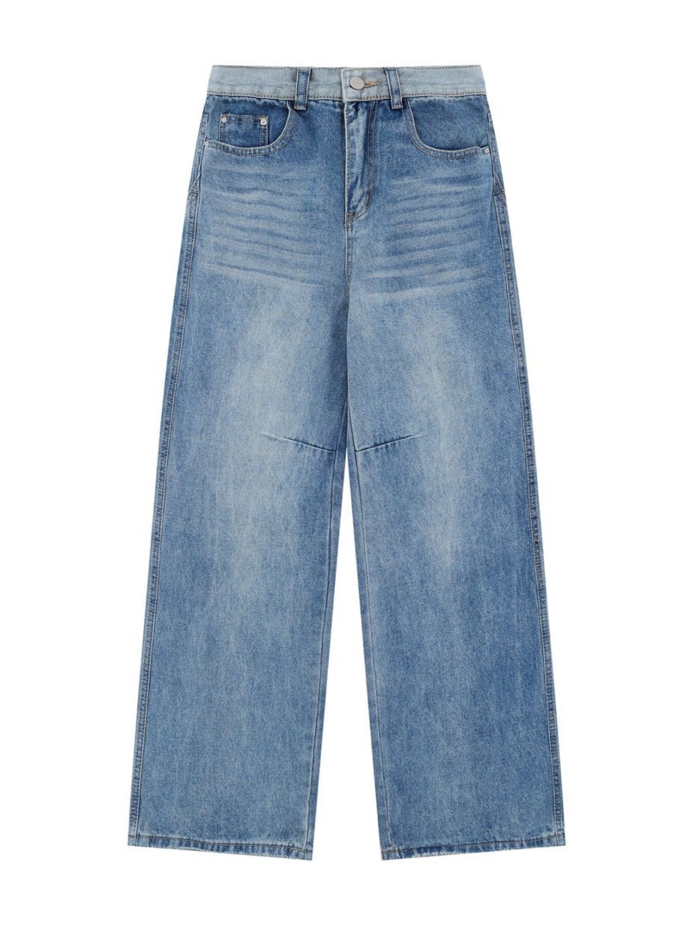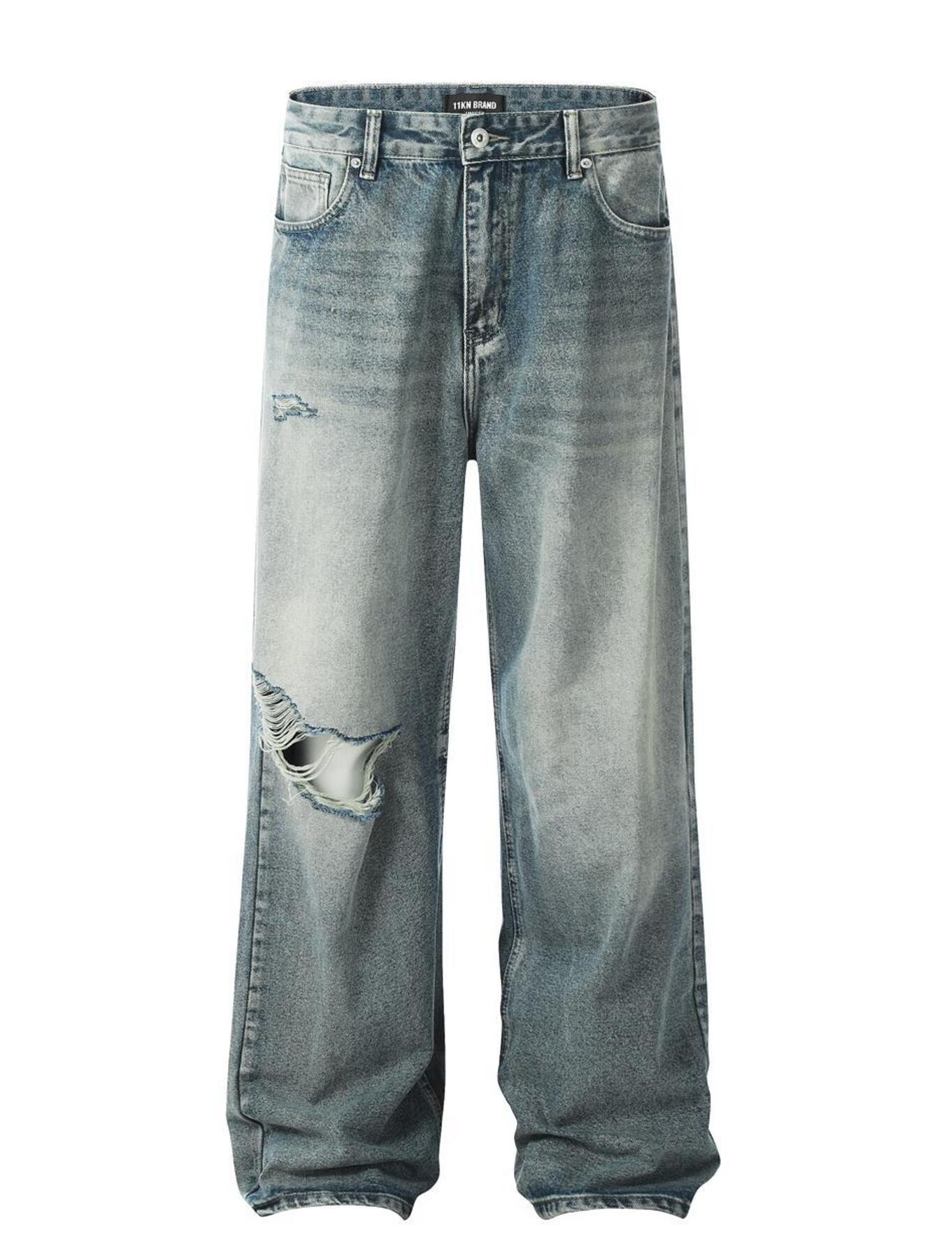 Men's Wide-Leg Vintage Wash Denim Jeans