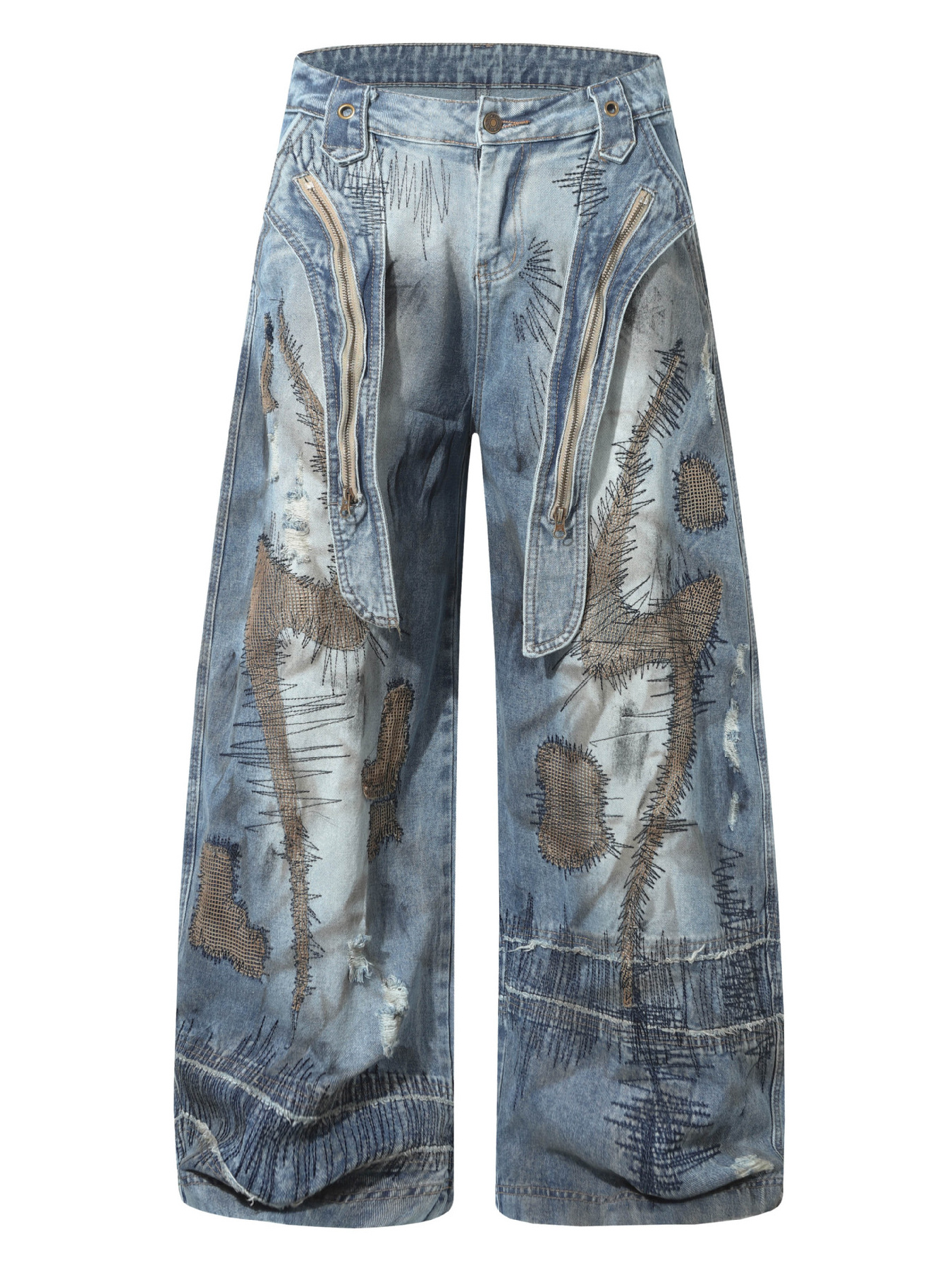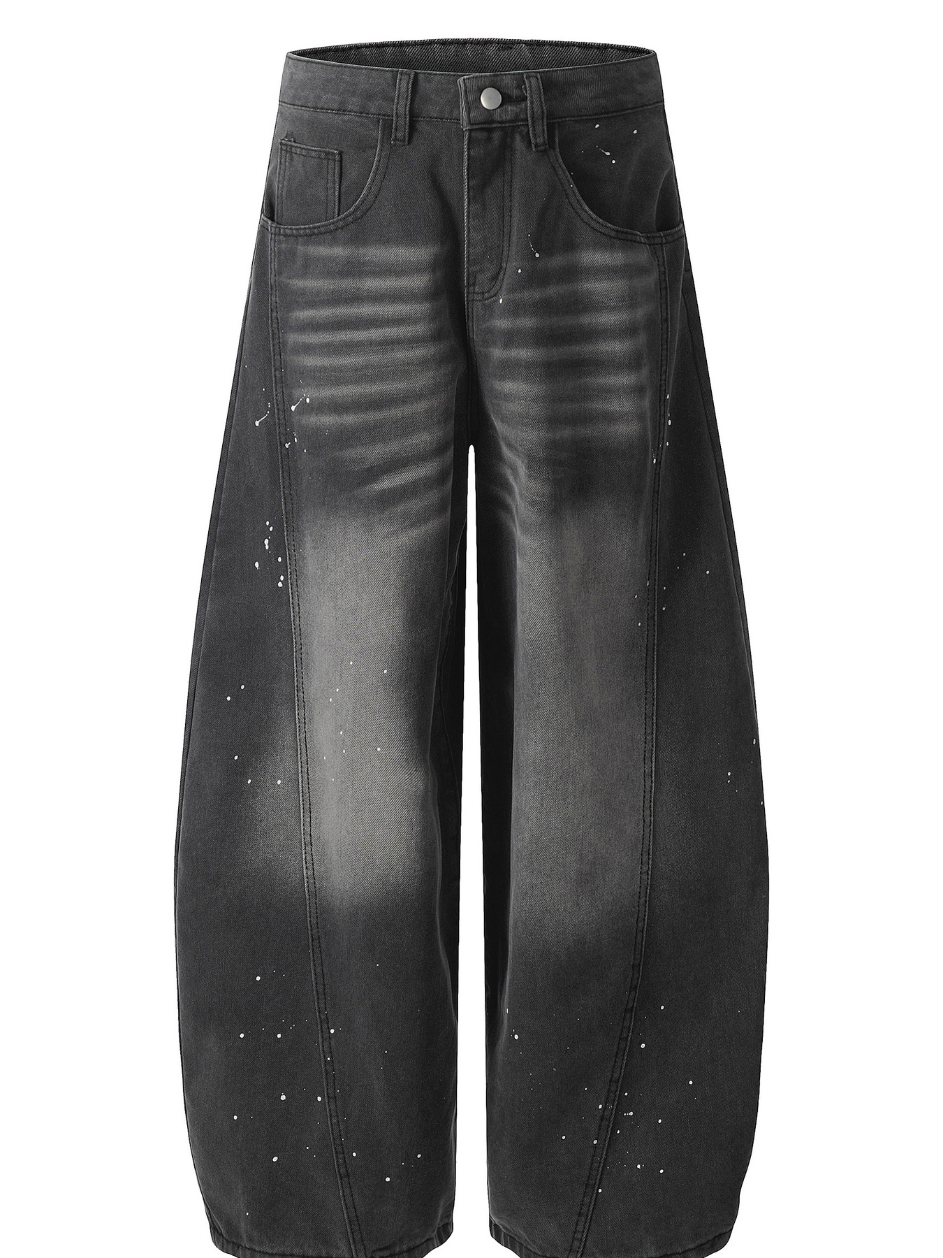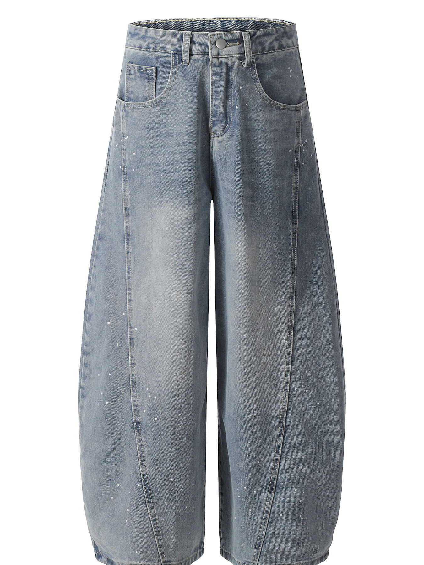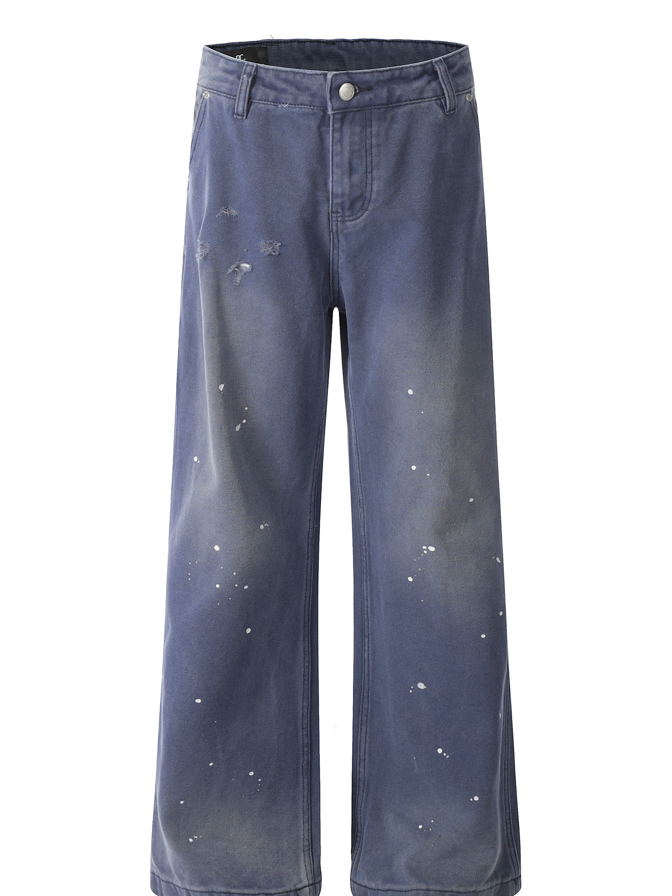 Men's Wide-Leg Vintage Wash Denim Jeans