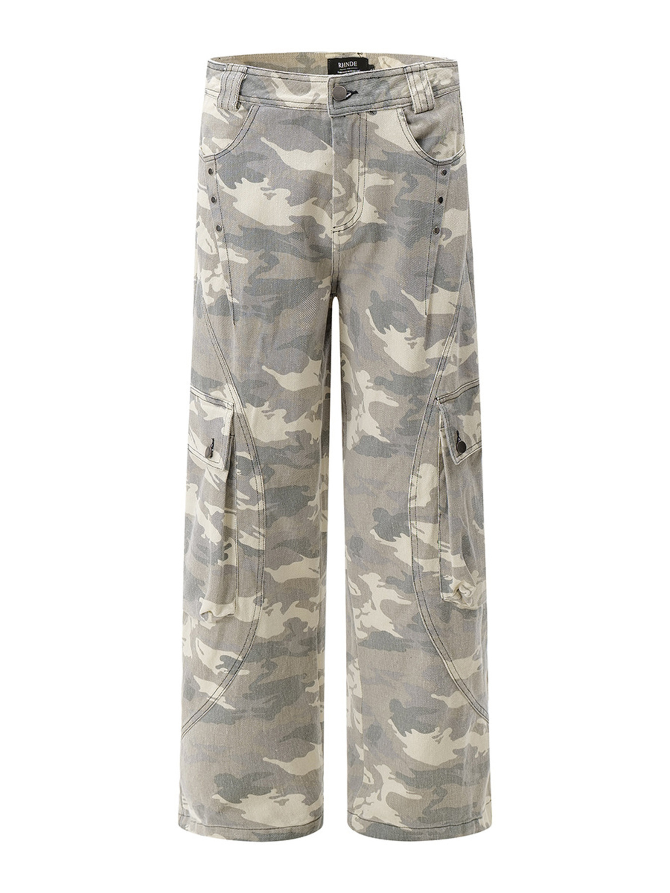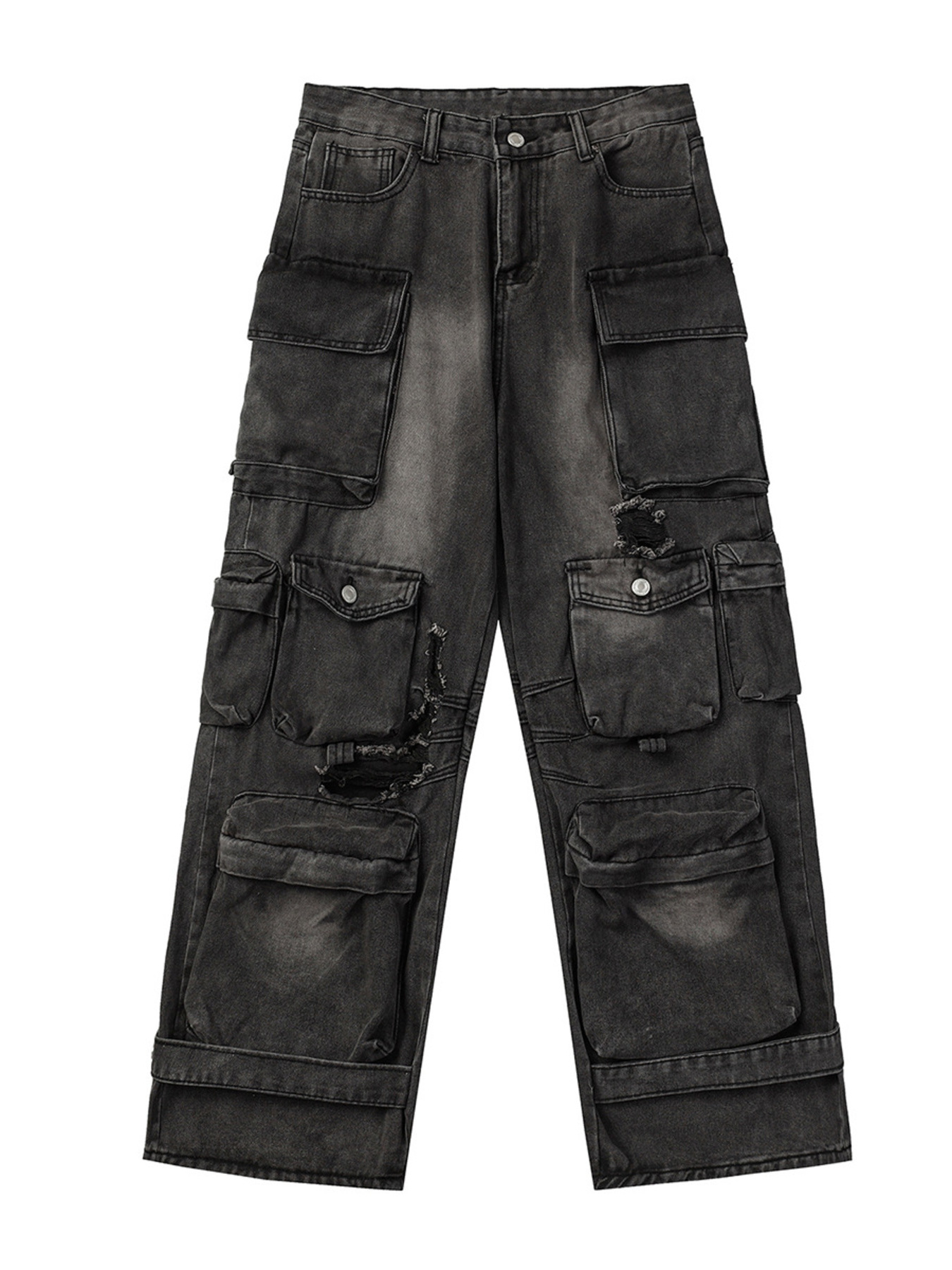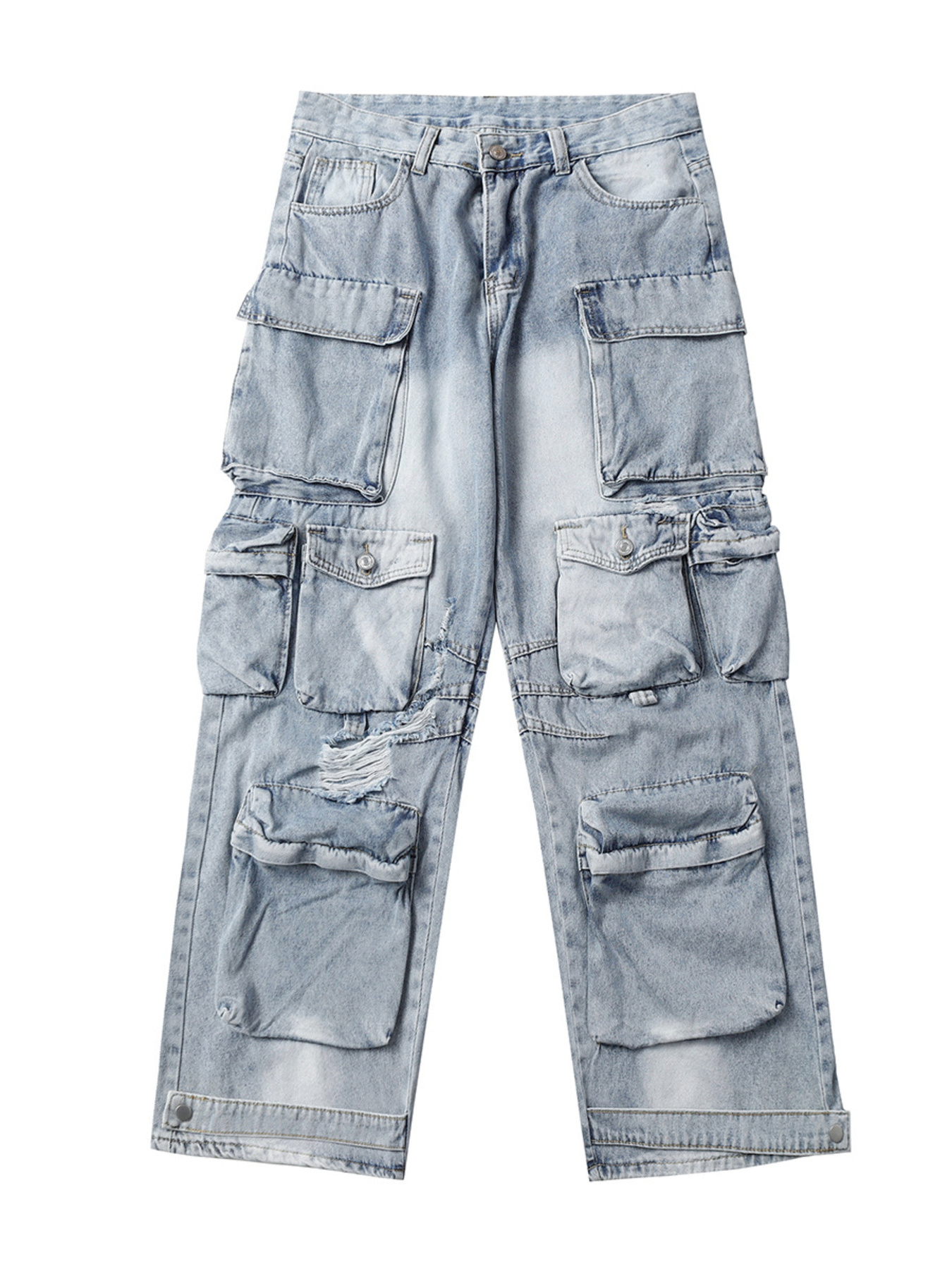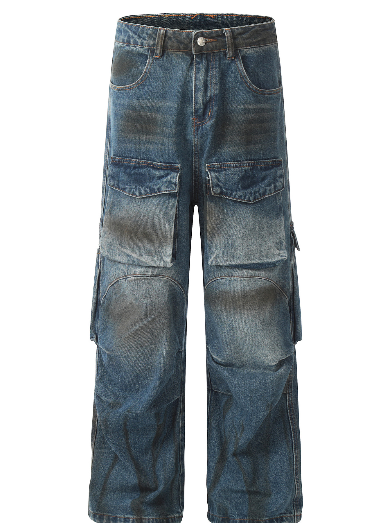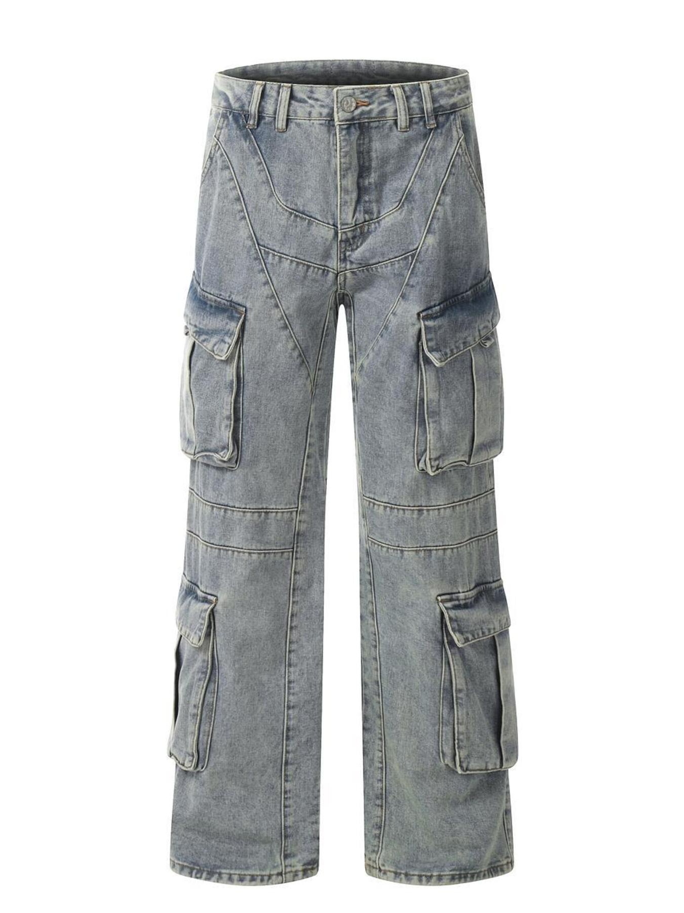 Men's Multi-Pocket Cargo Wide Leg Jeans