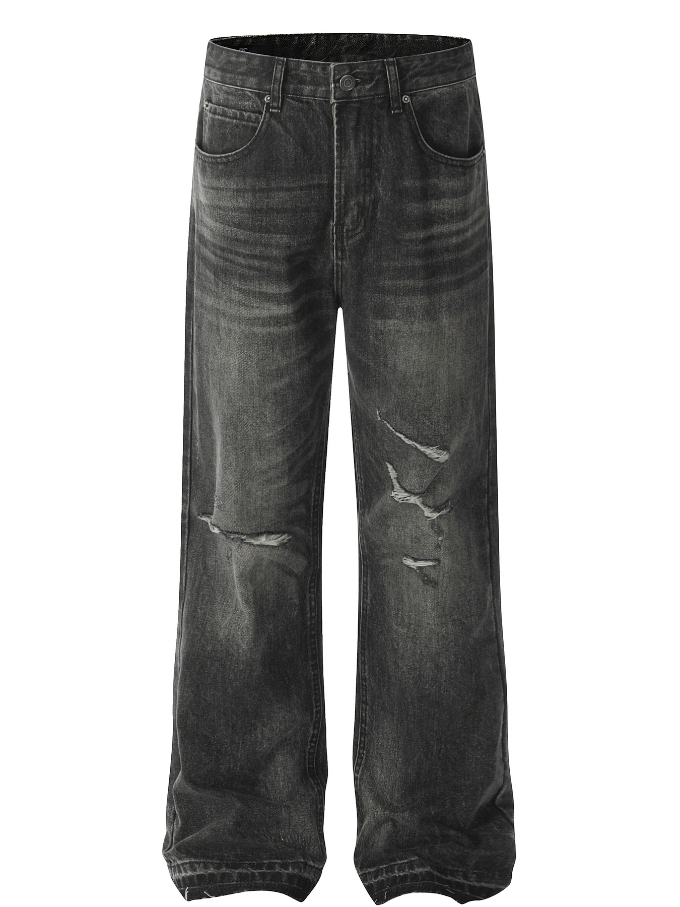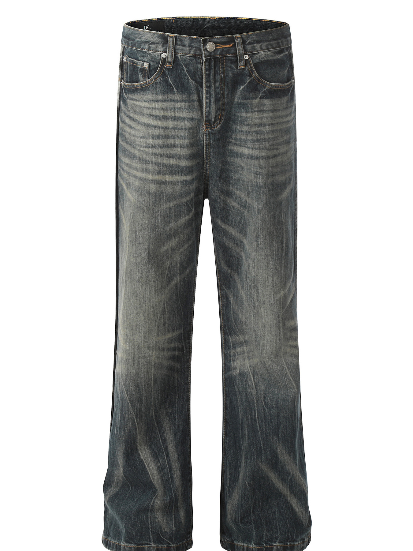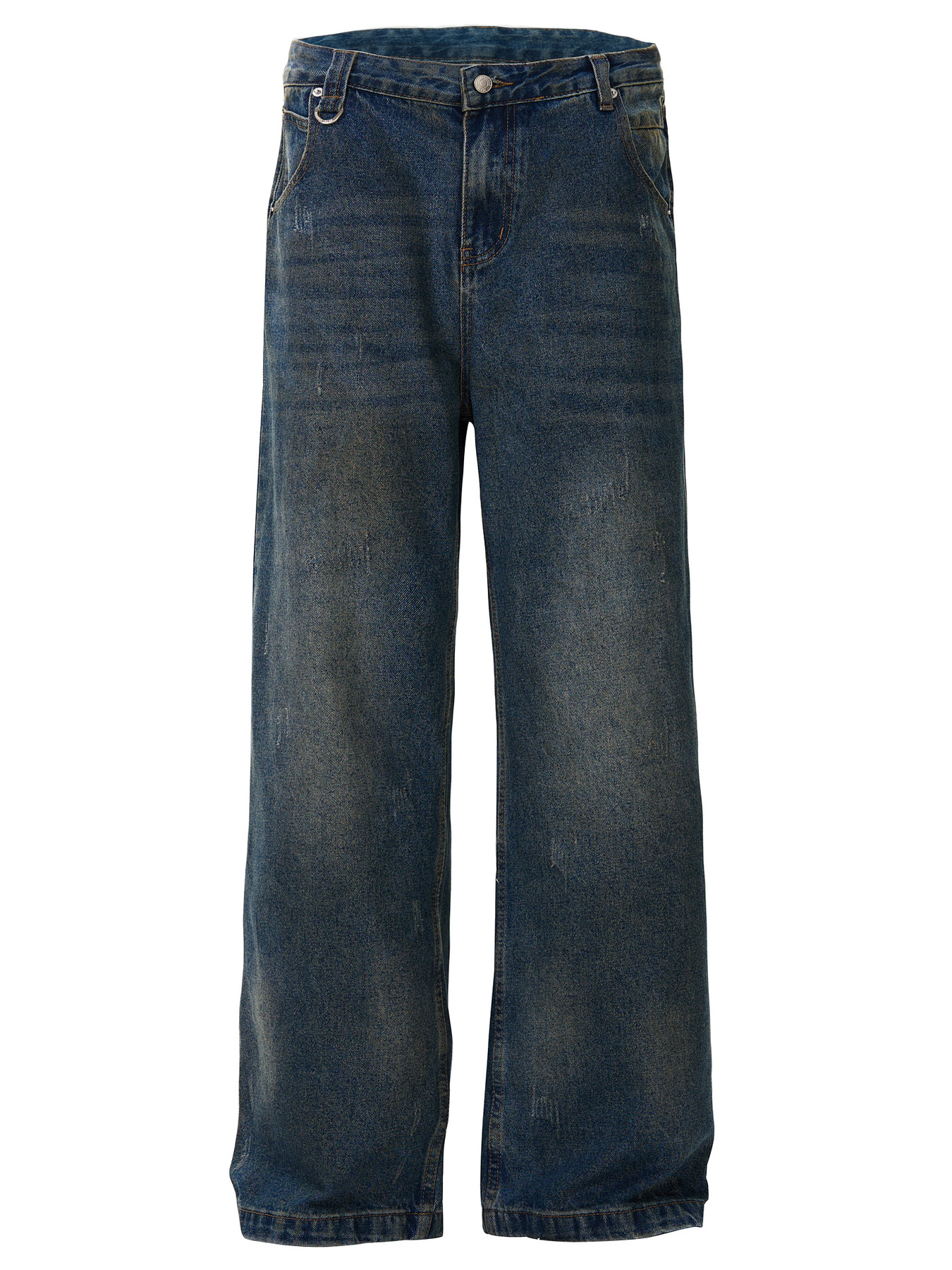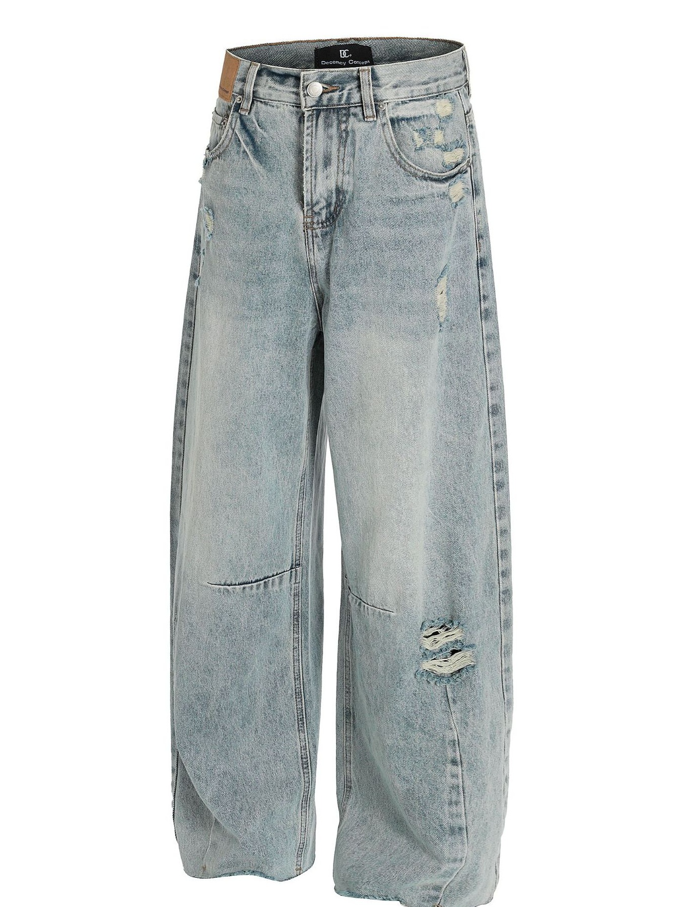 Men's Vintage Washed Distressed Wide Leg Jeans